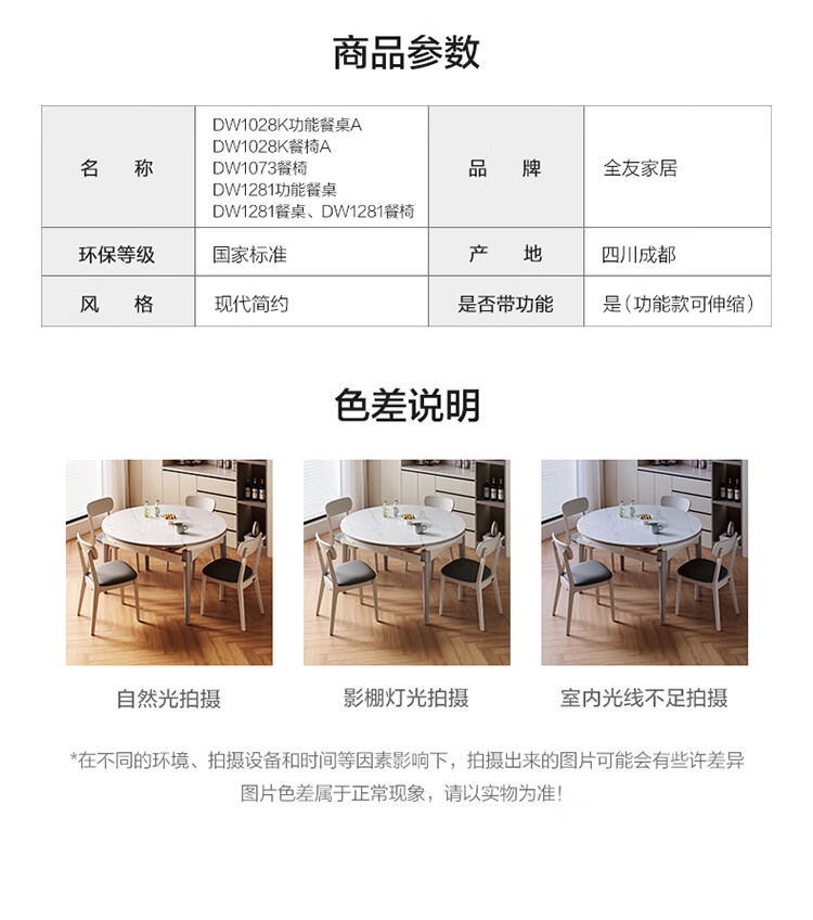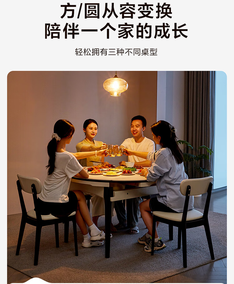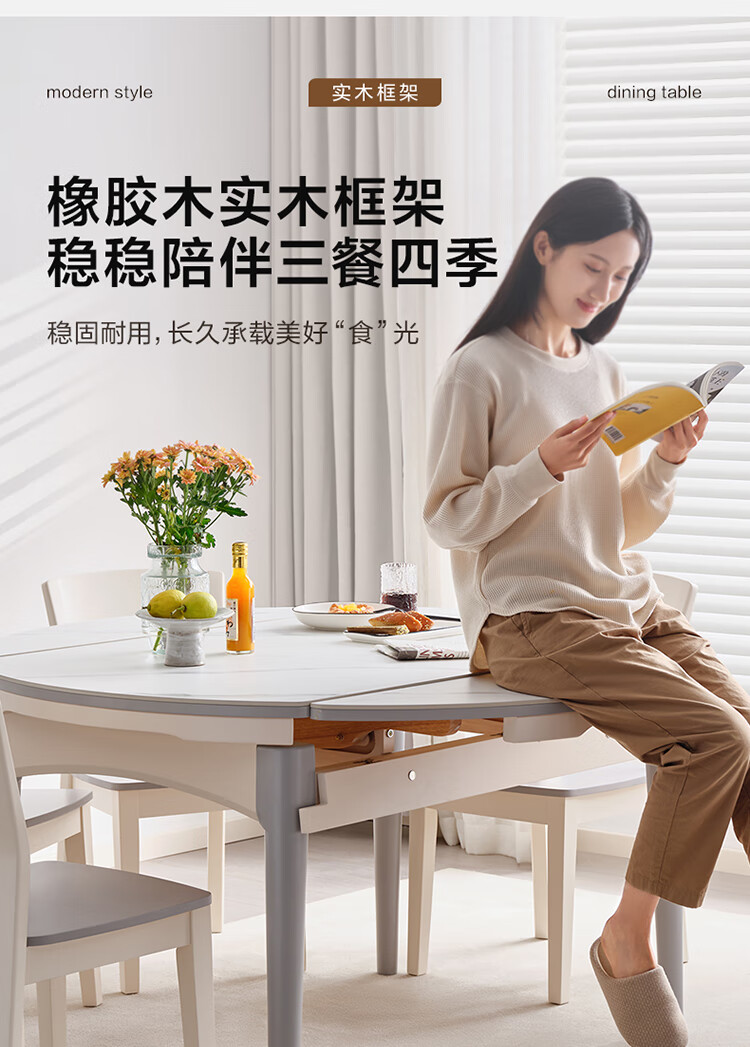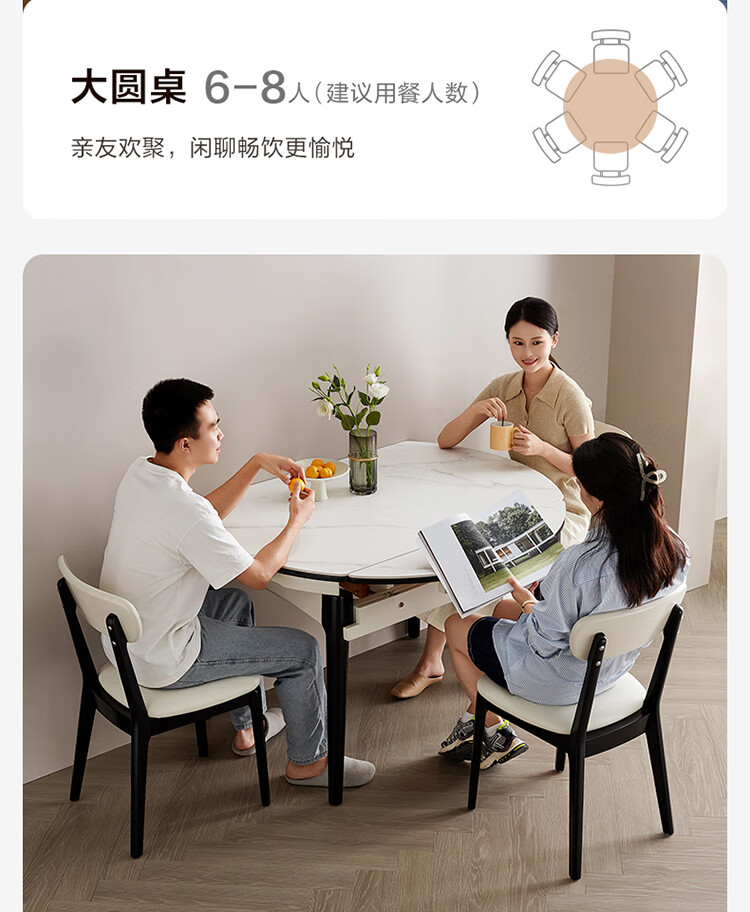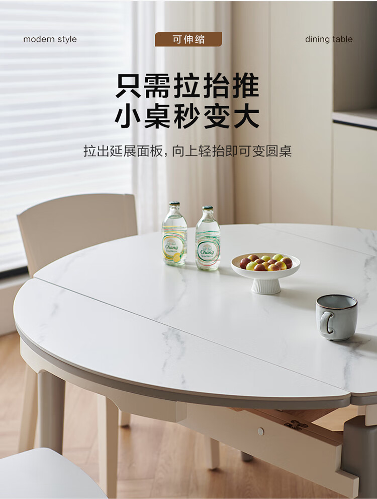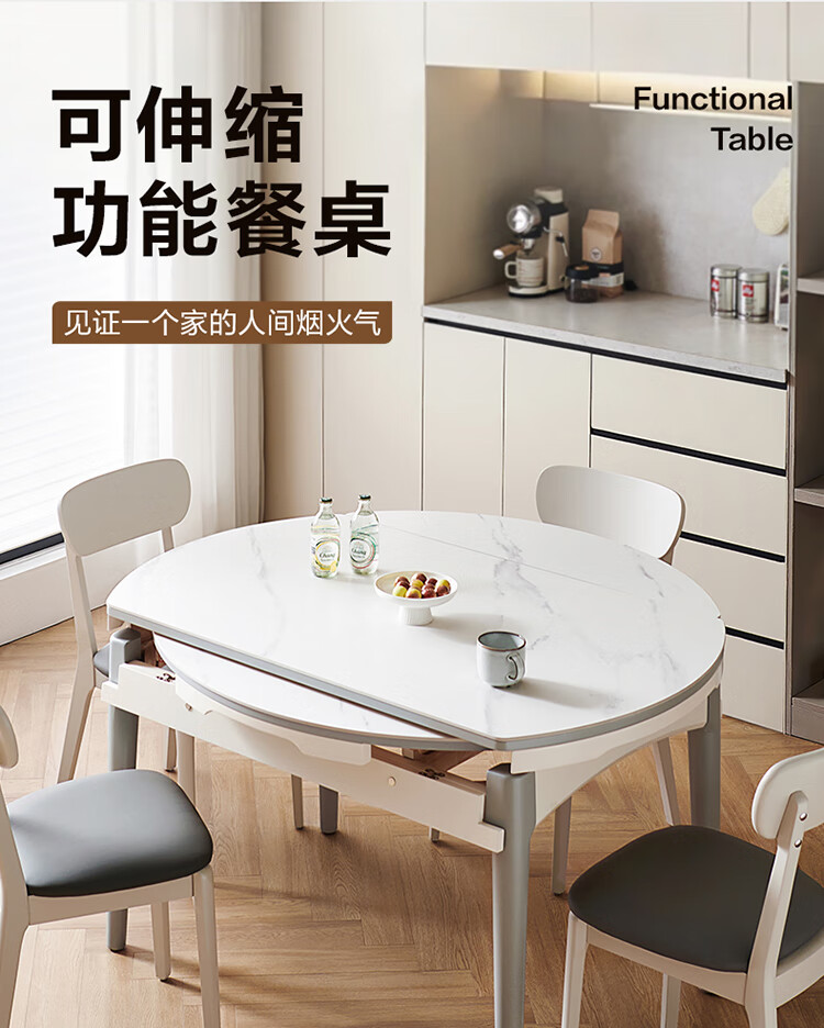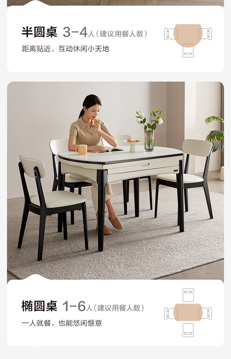 全友家居 现代简约多功能可伸缩岩板餐桌椅子组合客餐厅家用吃饭桌子