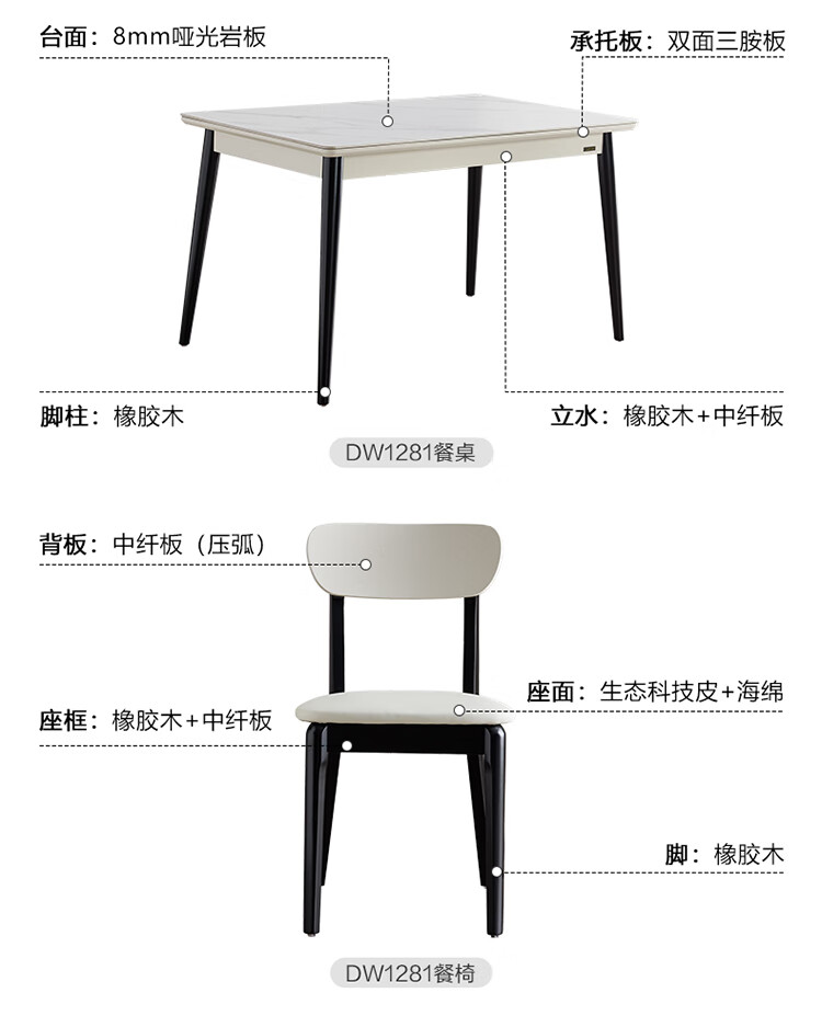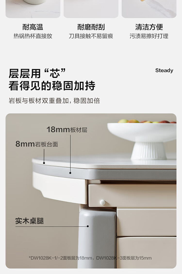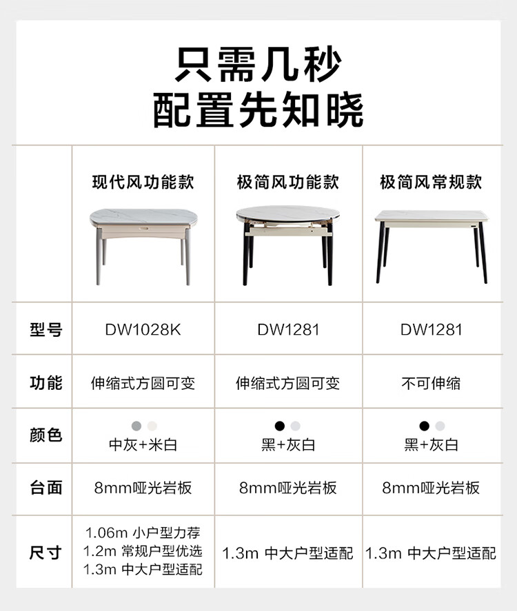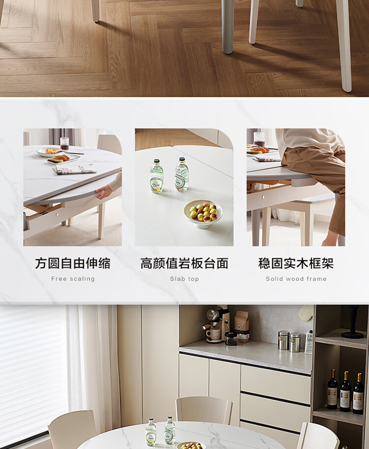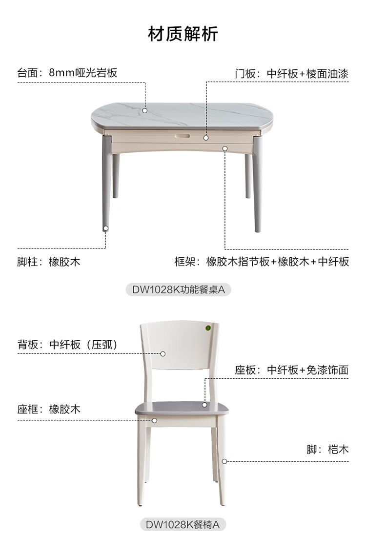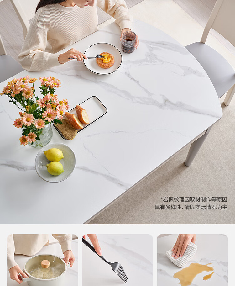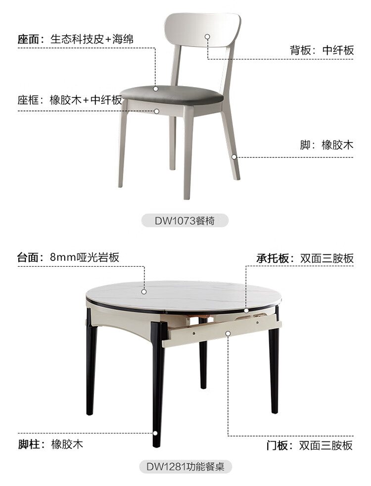全友家居 现代简约多功能可伸缩岩板餐桌椅子组合客餐厅家用吃饭桌子