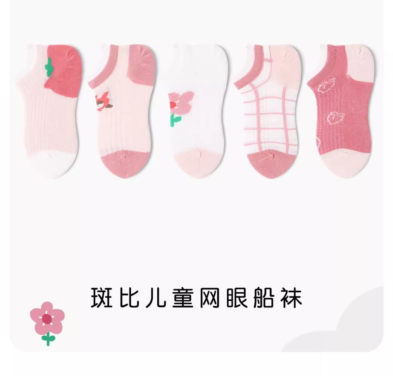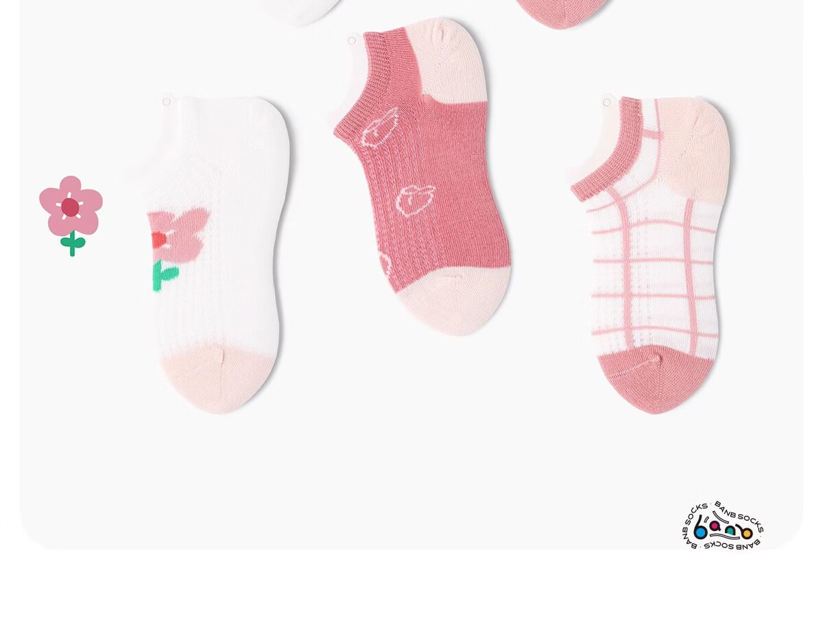 斑比女童袜子夏季薄款棉袜中大童网眼透气短袜儿童无骨船袜 BB2436 儿童夏季网眼船袜 5双 6-8岁 建议脚码27-32码【18-20】