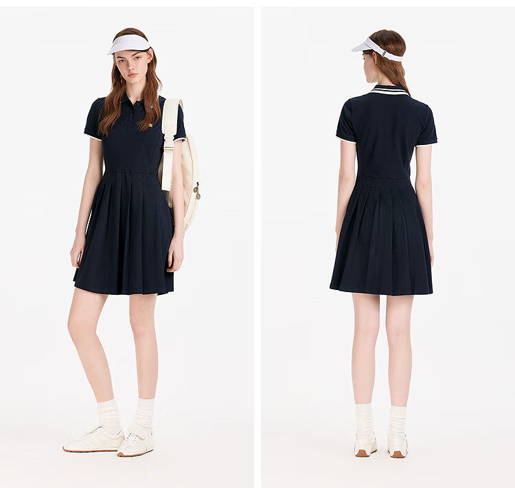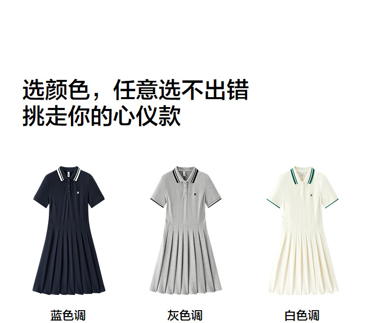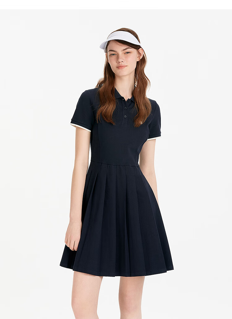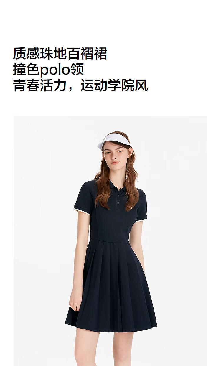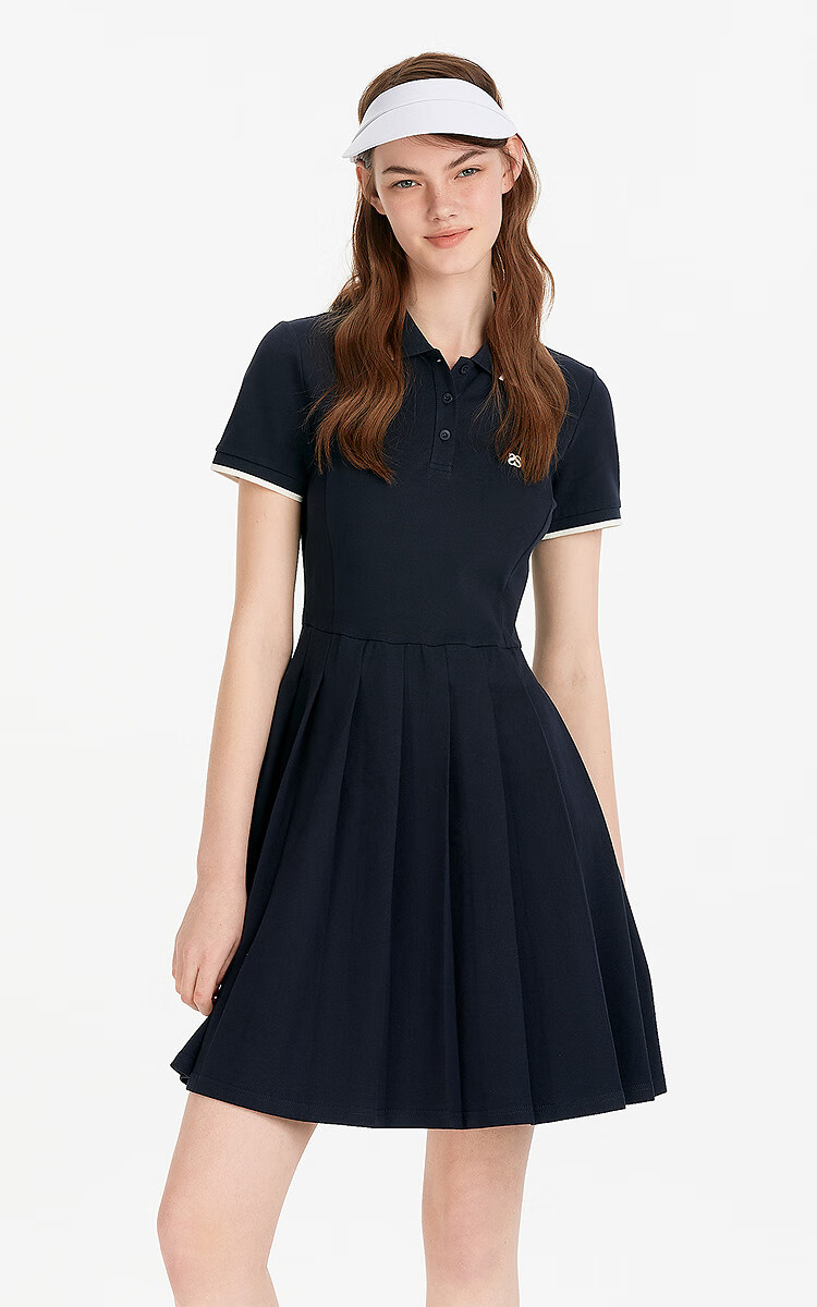 森马(Semir)连衣裙女夏季撞色polo领短裙字母运动风学院风百褶裙101325114051