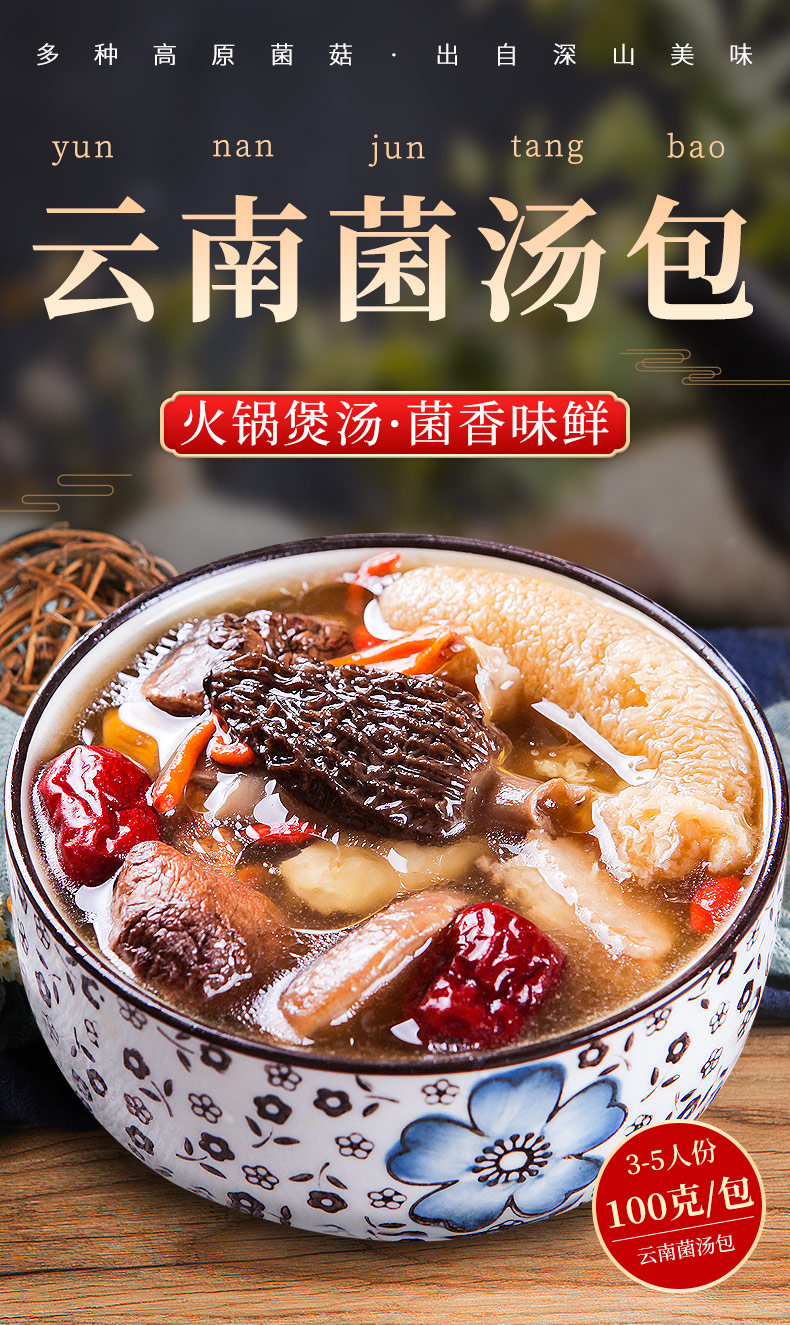 潘祥记七彩菌汤包100g云南特产羊肚菌菇汤包松茸煲汤食材料包干货