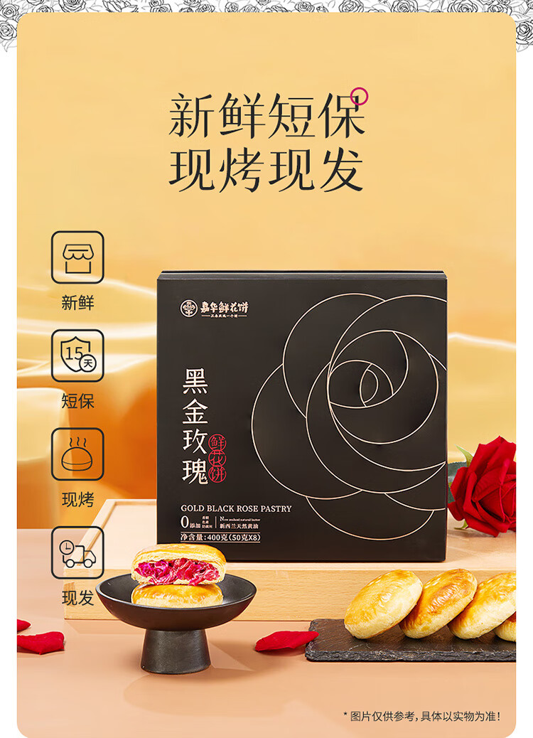 嘉华鲜花饼黑金现烤玫瑰饼400g云南特产零食早餐源头直发包邮