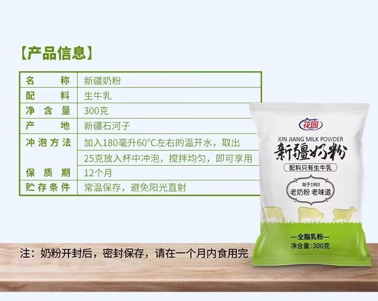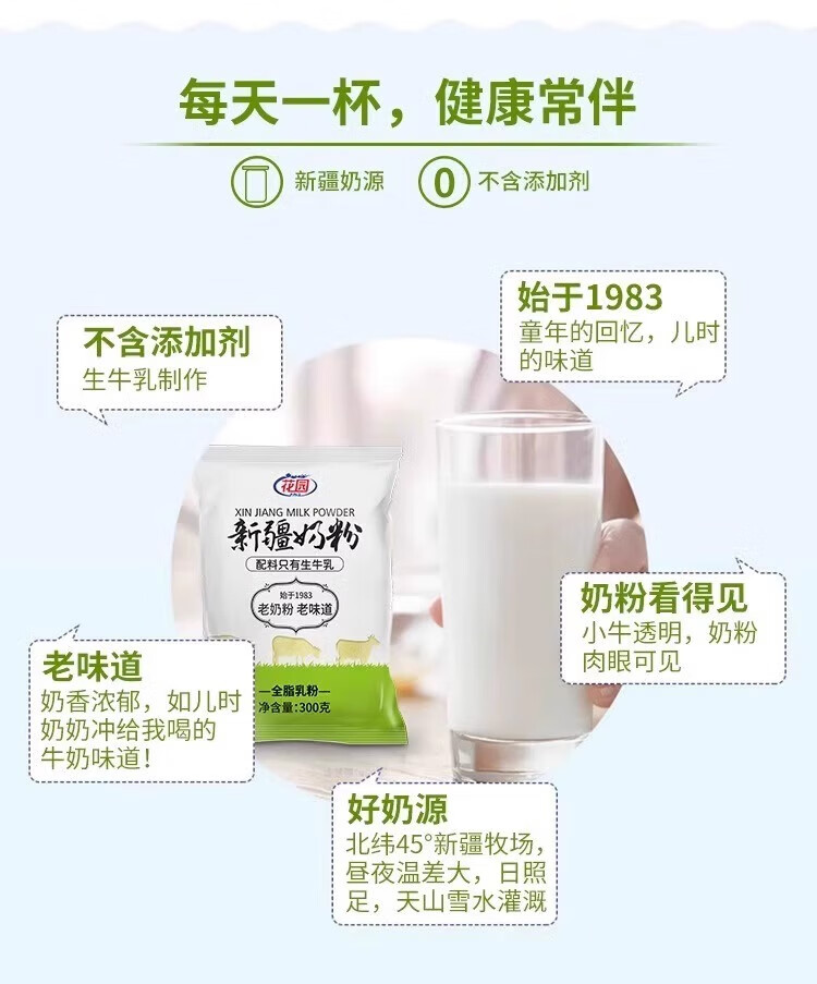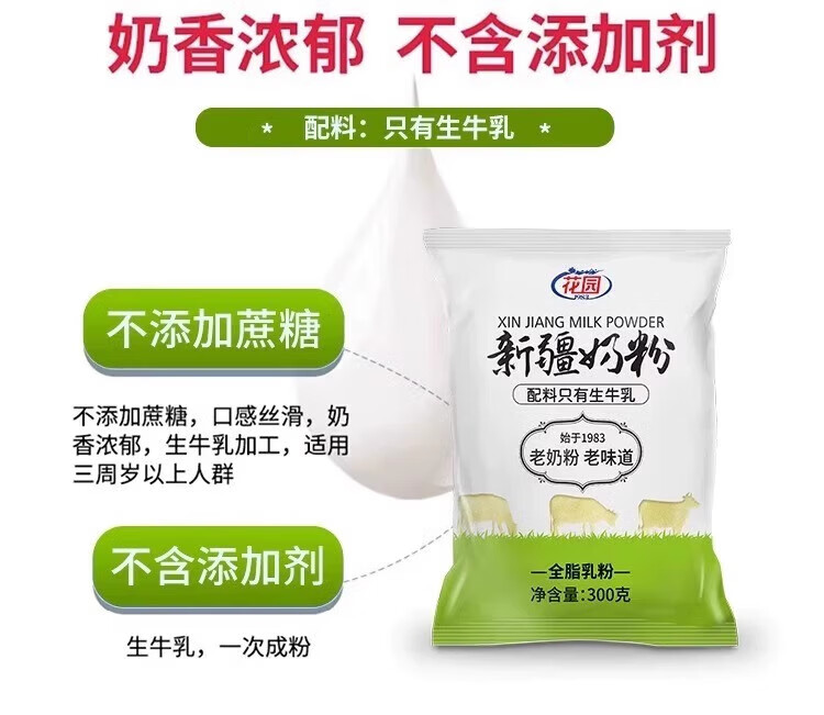 花园新疆老奶粉300g生牛乳0蔗糖全脂乳粉中老年成人学生奶粉营养品