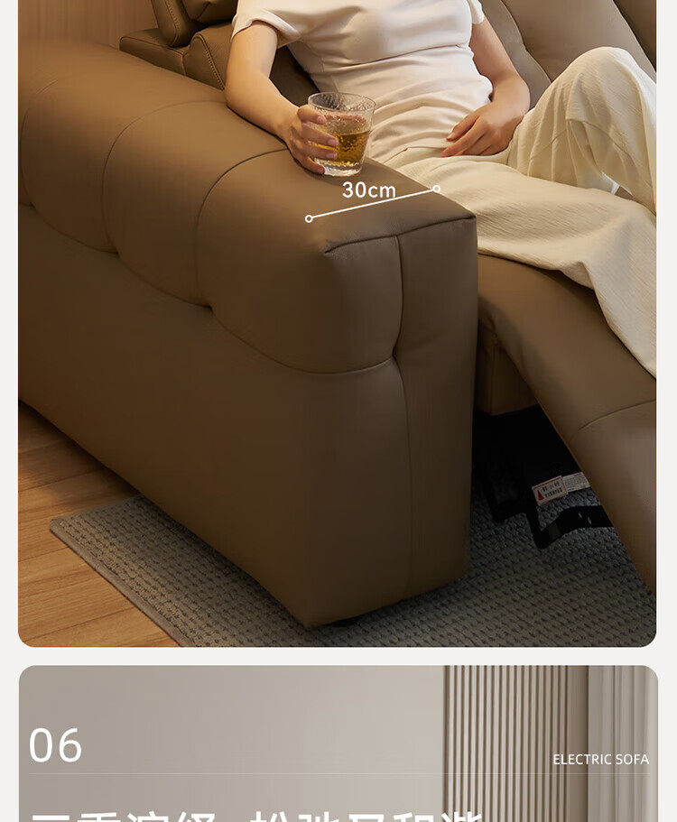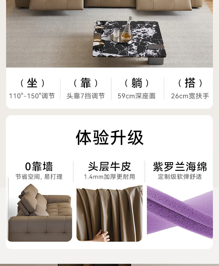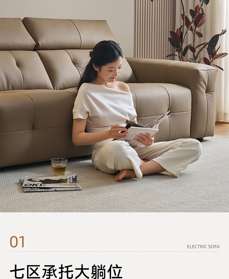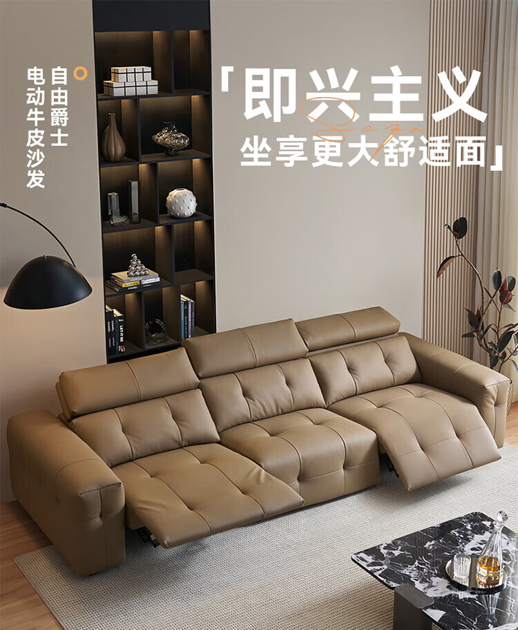 全友(QUANU)【迷瞪清仓货盘】中古风沙发客厅头层牛皮多功能沙发椅利兹沙发 【奶咖色|牛皮】3.13m单功能位