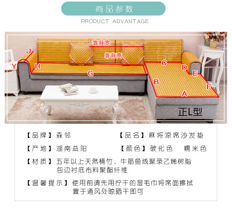 DONOYA 多罗亚中式沙发垫四季通用防滑2026年新款凉席麻将坐垫子竹垫沙发套巾罩 窄边---碳化【双筋防滑】 50cm*50cm