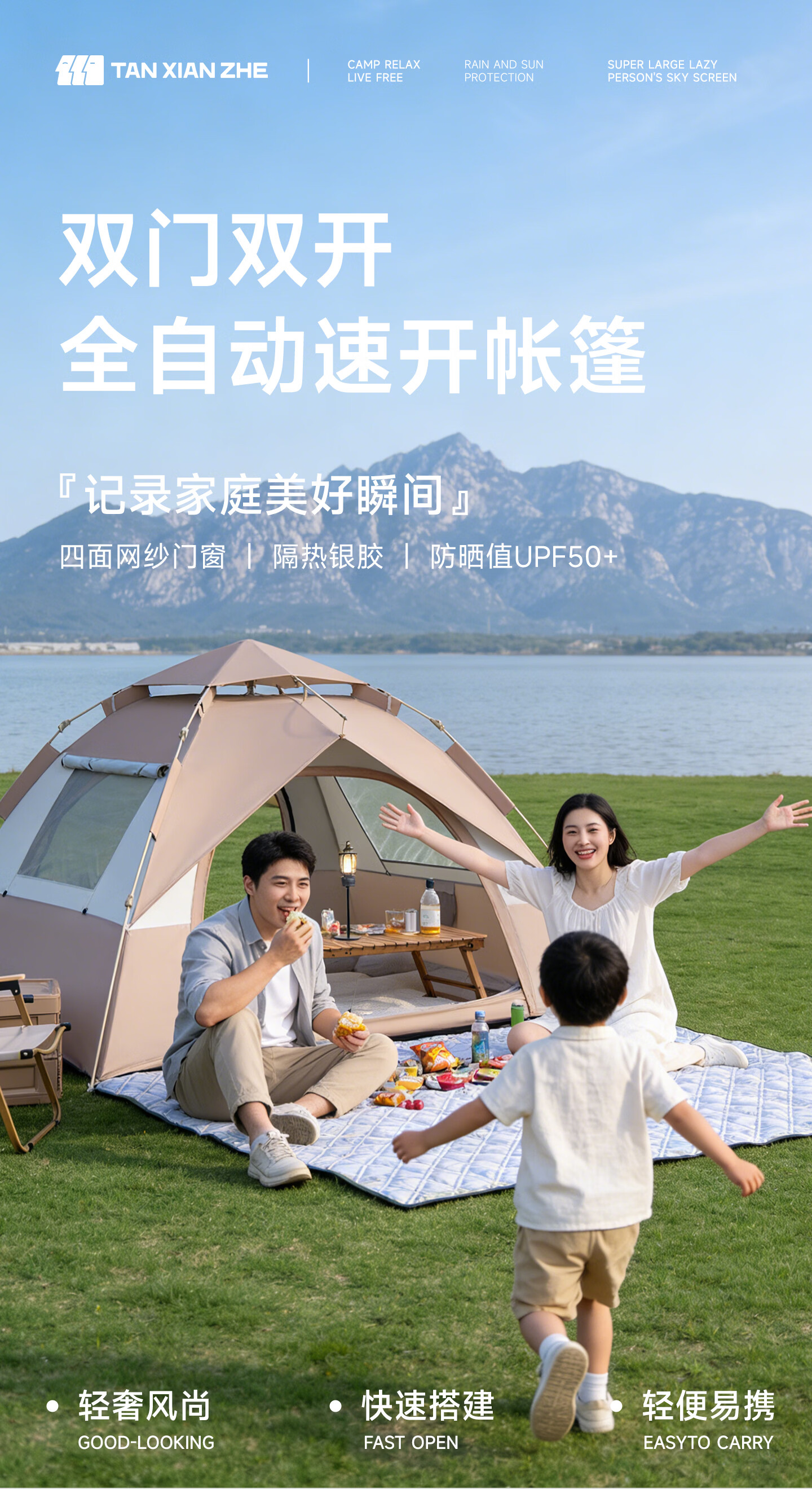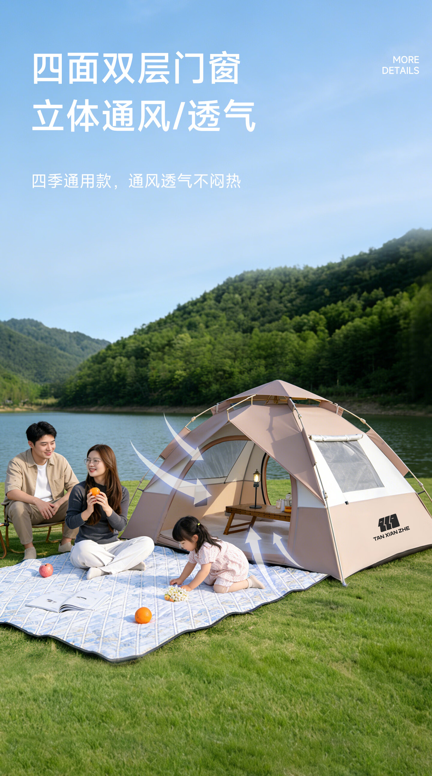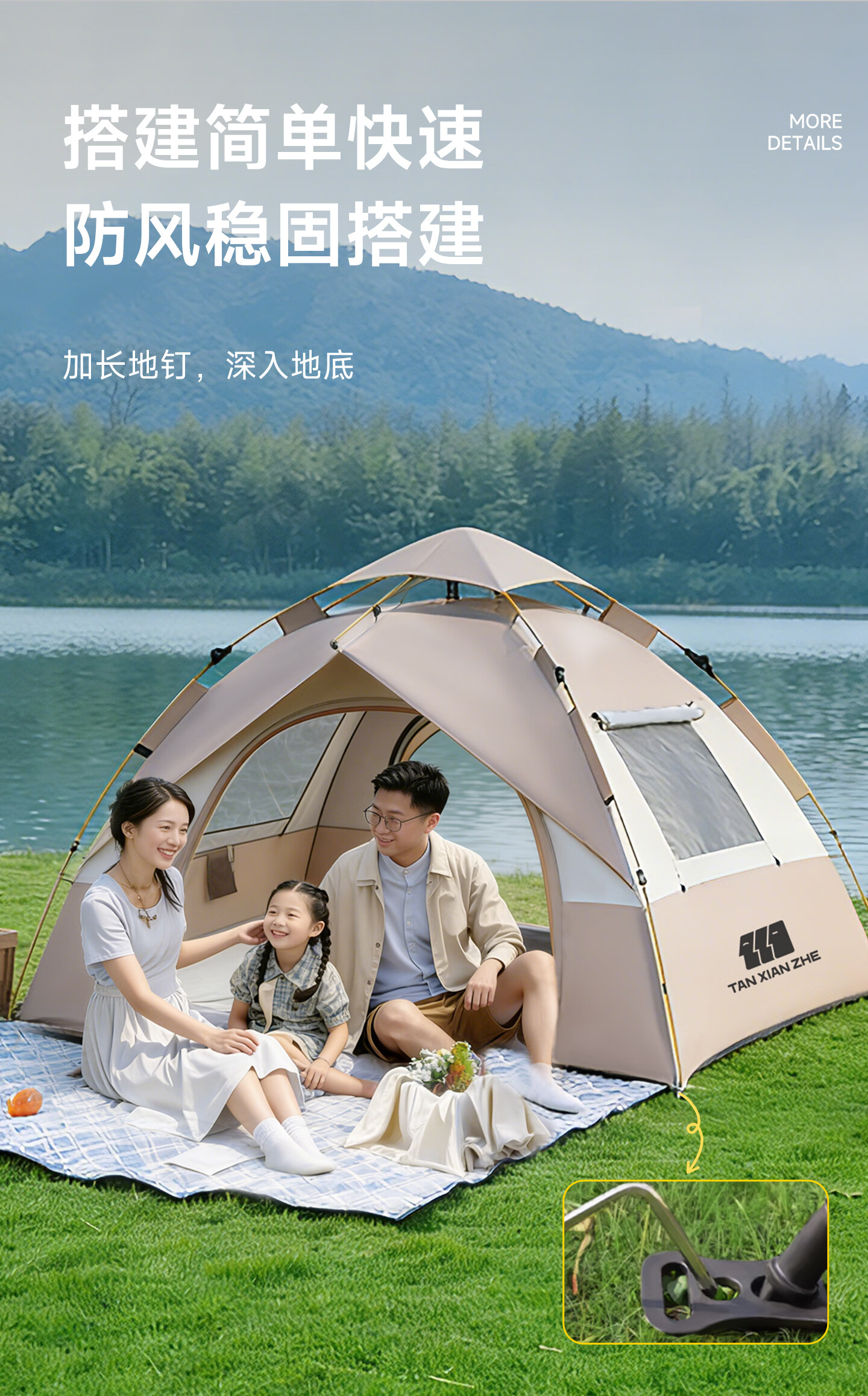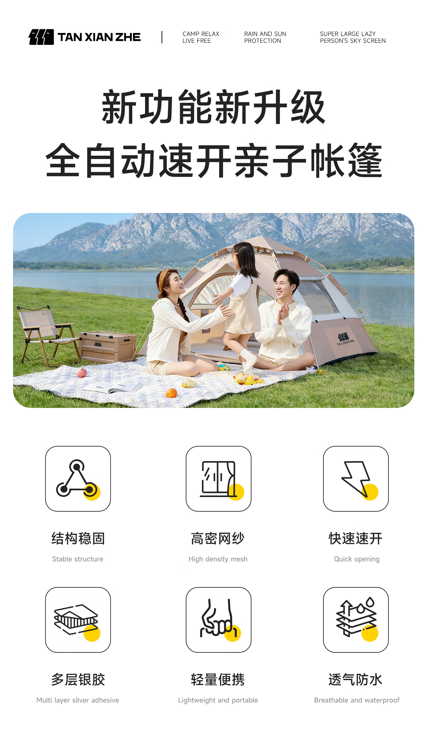 探险者帐篷户外露营帐篷全自动免搭建折叠便携速开野营帐篷装备全套 4-6人【加厚银胶/两门两窗/四面通风】+防潮垫