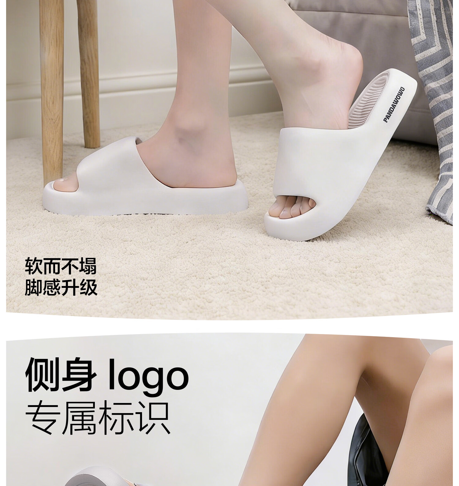海澜之家(HLA)买一送一居家拖鞋男士夏季室内家居情侣厚底防滑浴室沙滩凉拖鞋女 白色+黑色 组合装 38-39+42-43