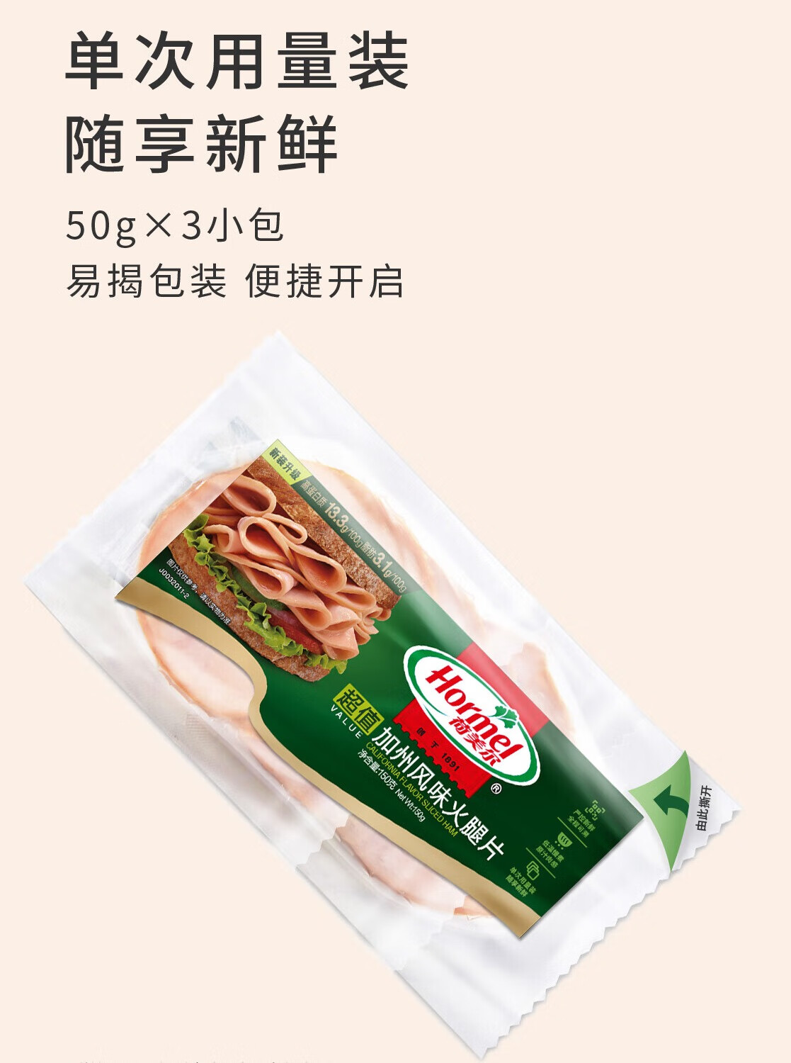 荷美尔(Hormel)火腿片150g 火腿切片 儿童早餐三明治烧烤食材 【6包共850g】美式牛肉火腿片4包+黑椒火腿片2包