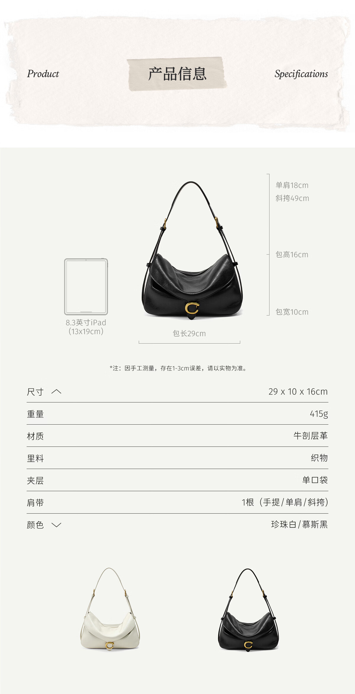 西木汀 晴风 小众托特包女包hobo包包新款单肩包通勤斜挎包 母亲节礼物 珍珠白