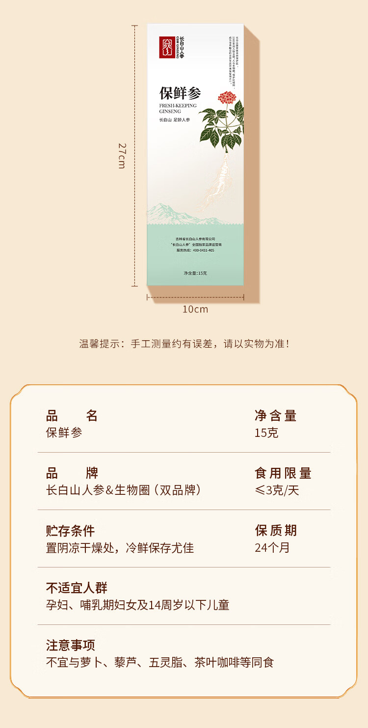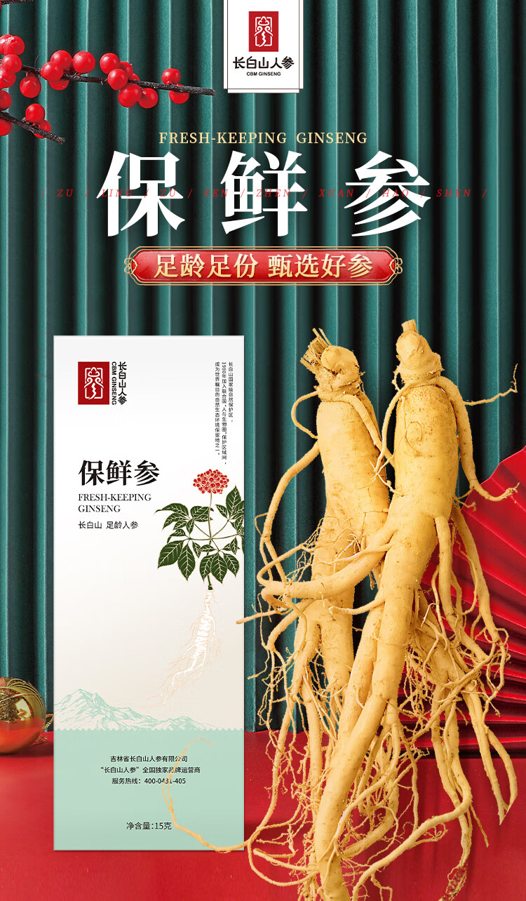 长白山人参精选鲜人参健康煲汤泡酒材料酒浸保鲜人参礼品富含人参皂苷 保鲜参 15g*2盒 1个礼袋