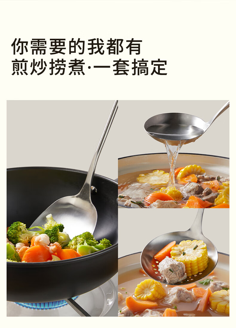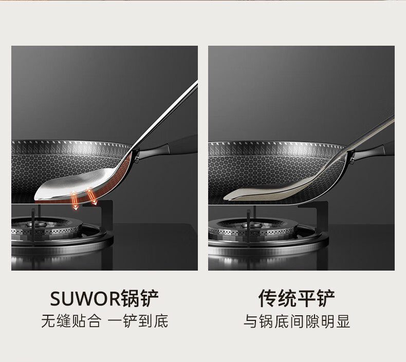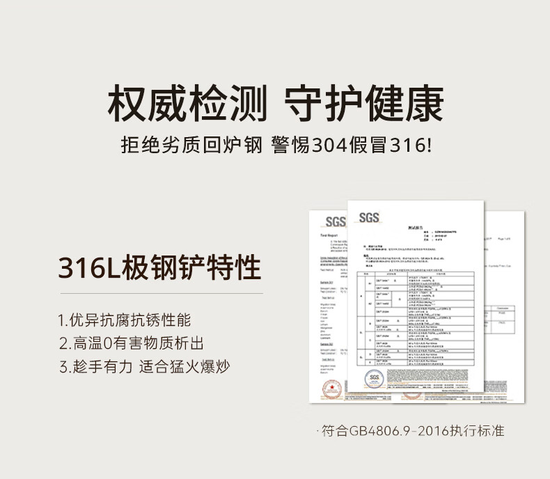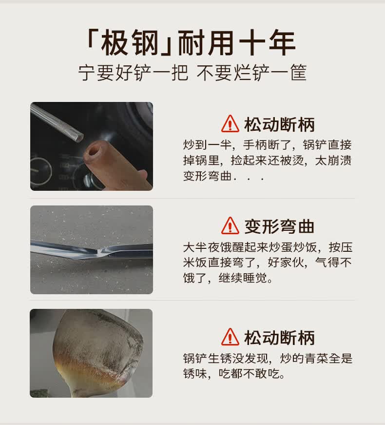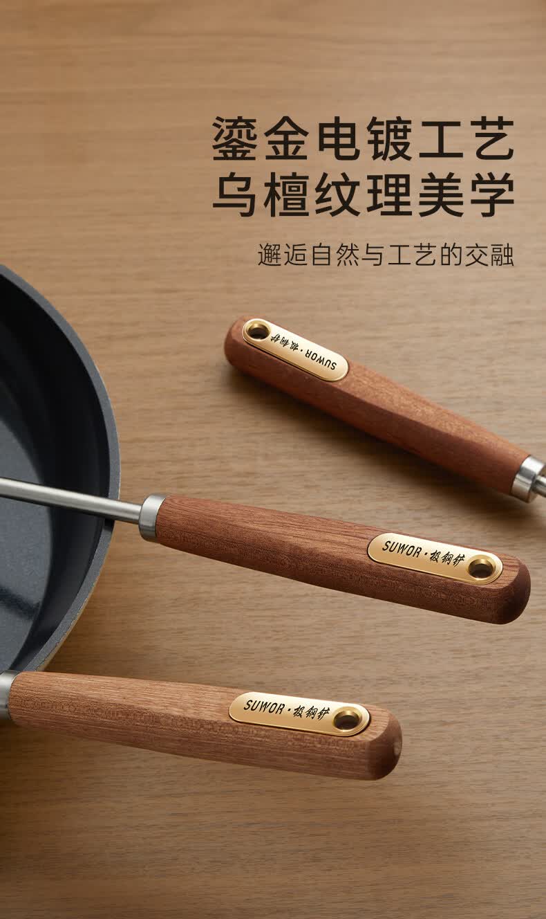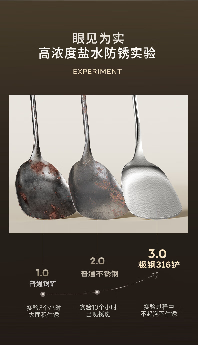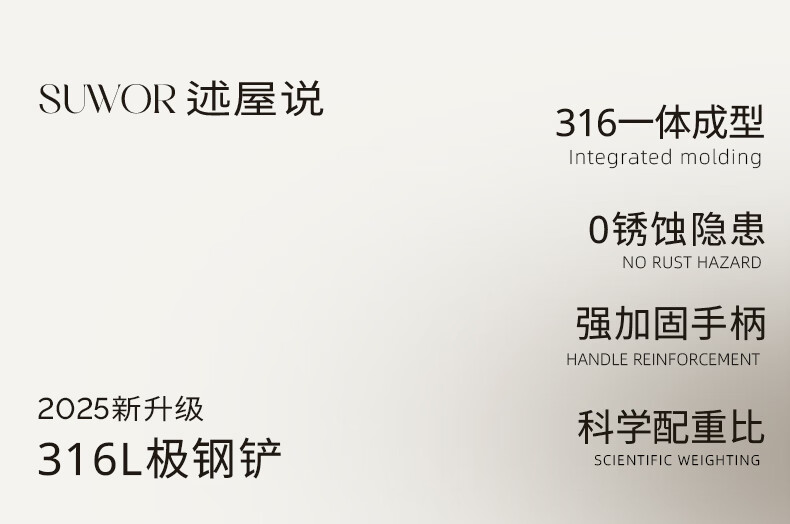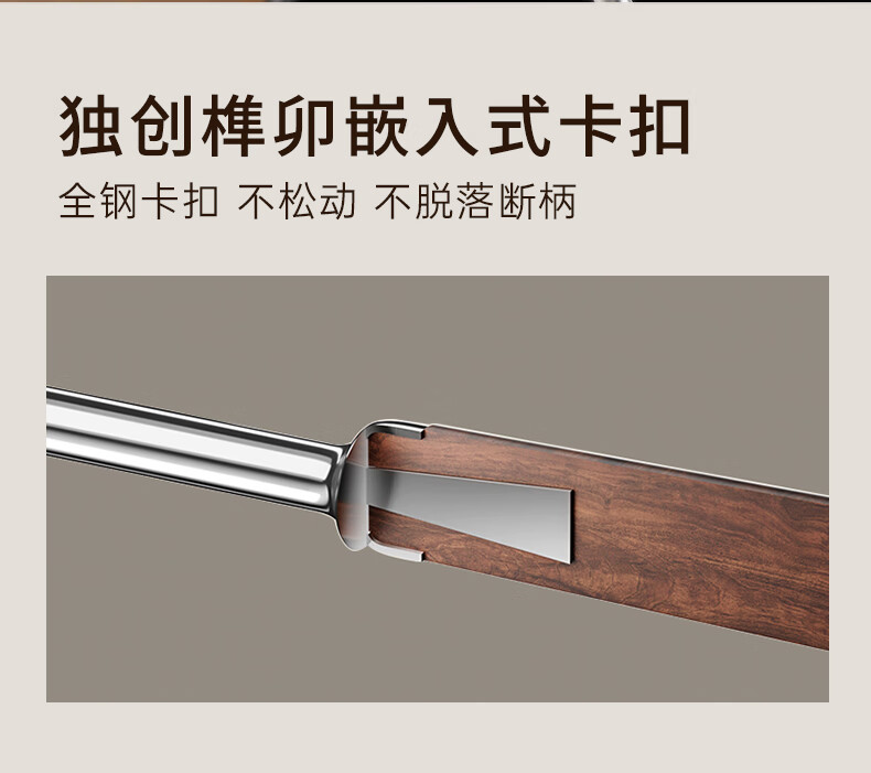 述屋说316L不锈钢锅铲加厚一体成型极钢炒菜铲乌檀木柄铁锅专用铲子防烫