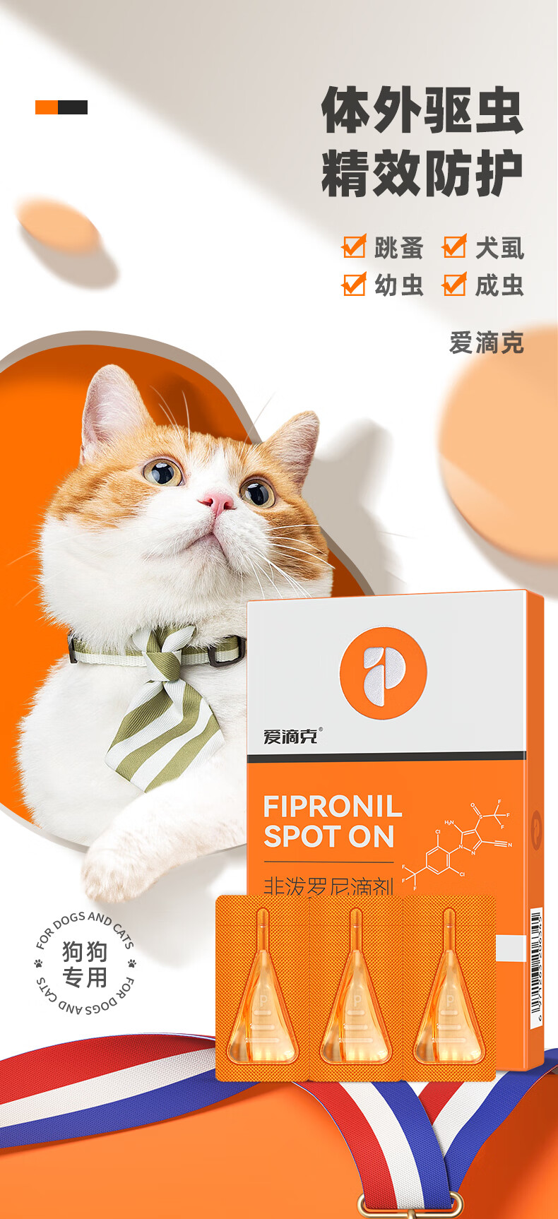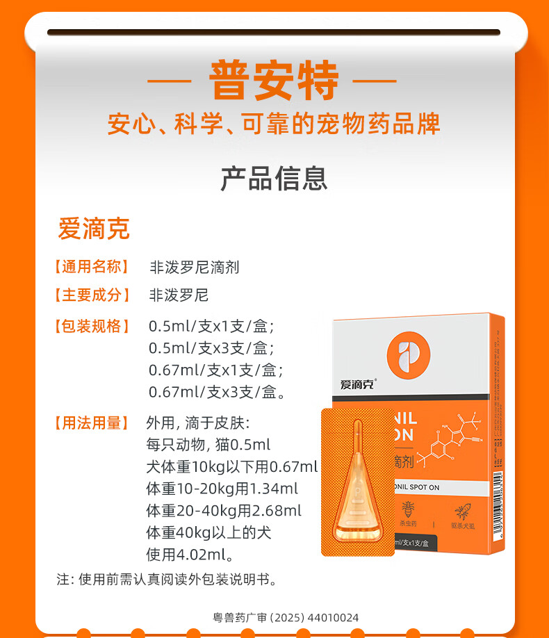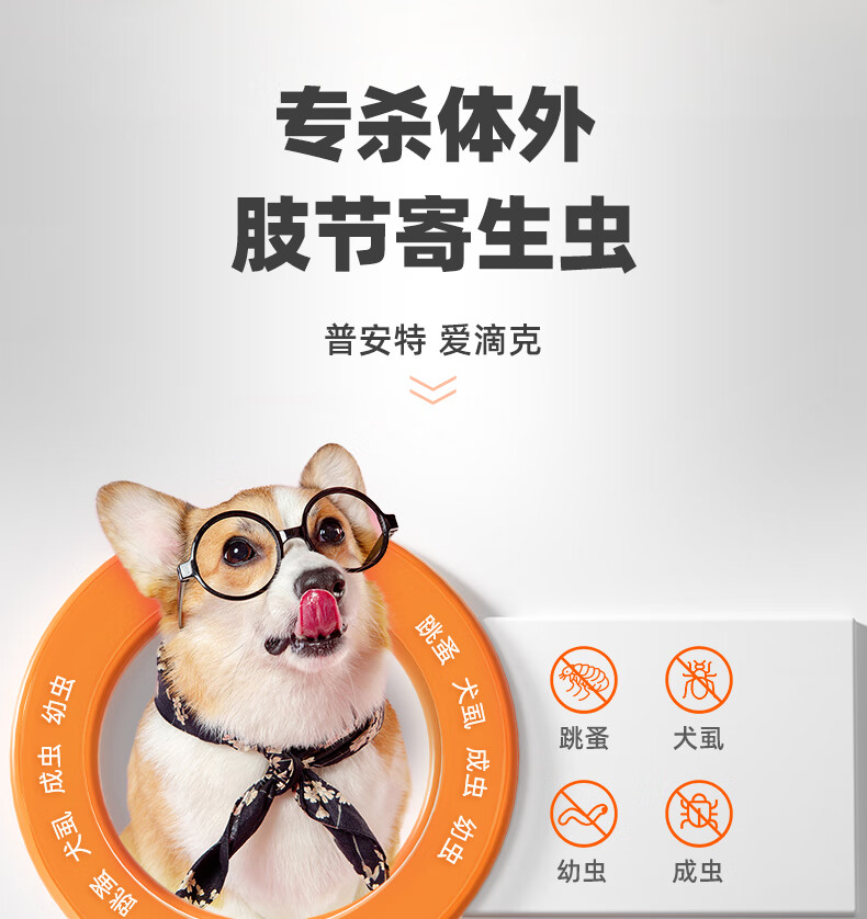 普安特宠物狗狗驱虫药体外驱虫犬驱寄生虫跳蚤非泼罗尼爱滴克0.67ml*3支