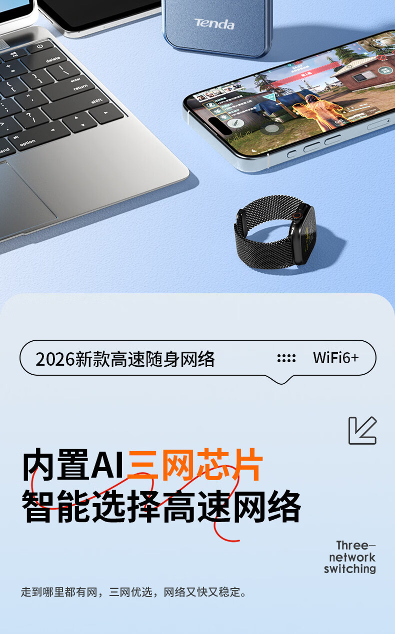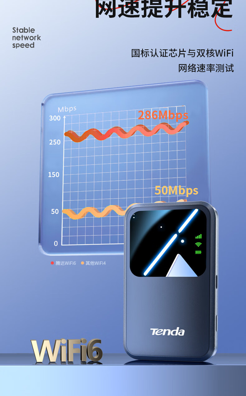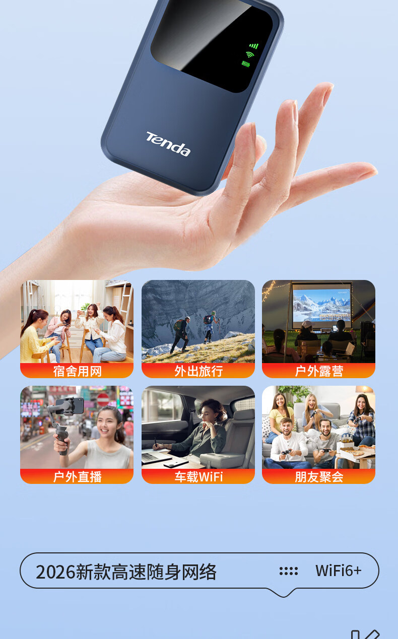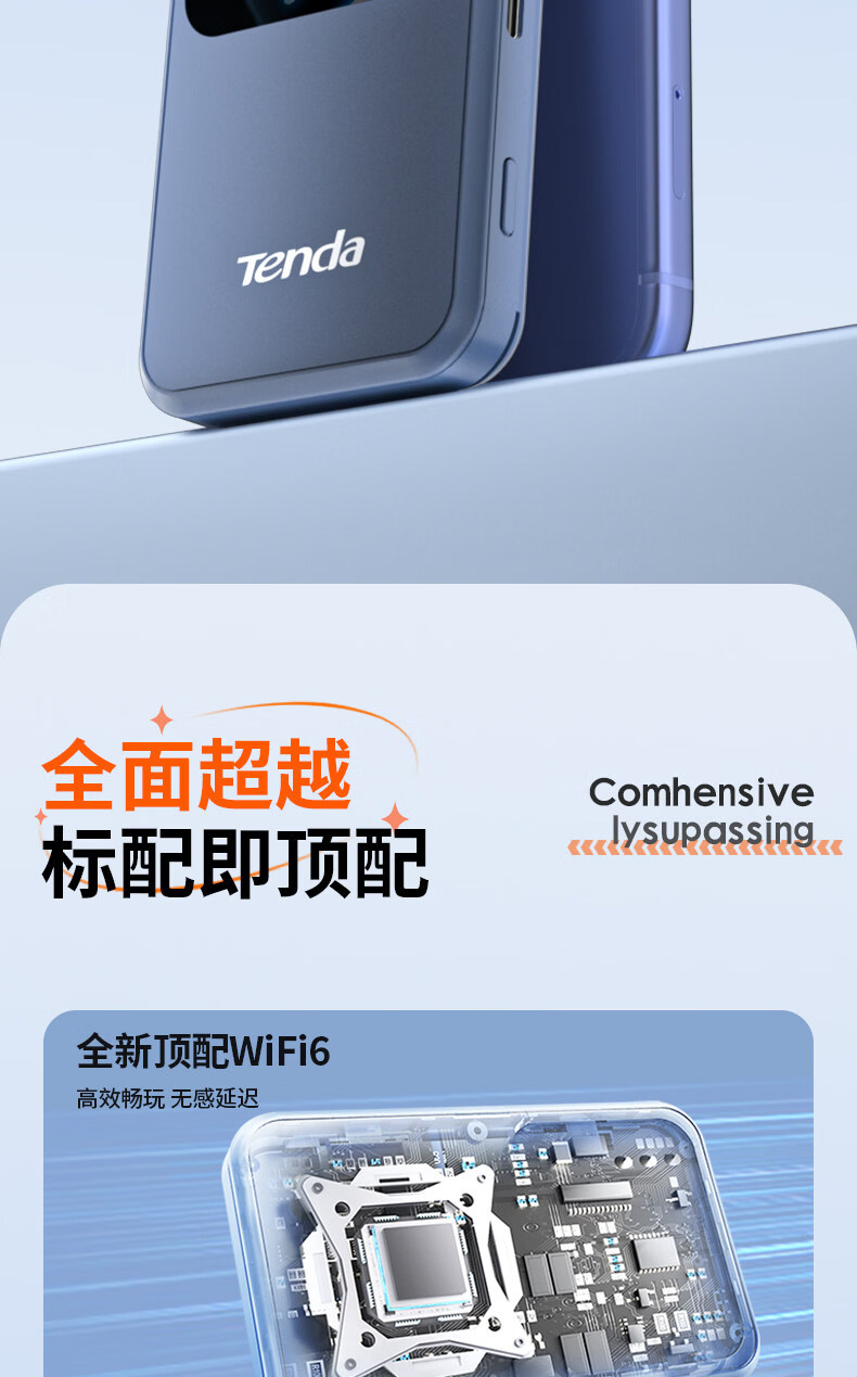 腾达Tenda腾达网络2026新款随身wifi移动无线wifi6无限速4g纯流量 免插卡wilf租房车载宽带5路由器家用 升级款【3000毫安超长续航】双网切换WiFi6
