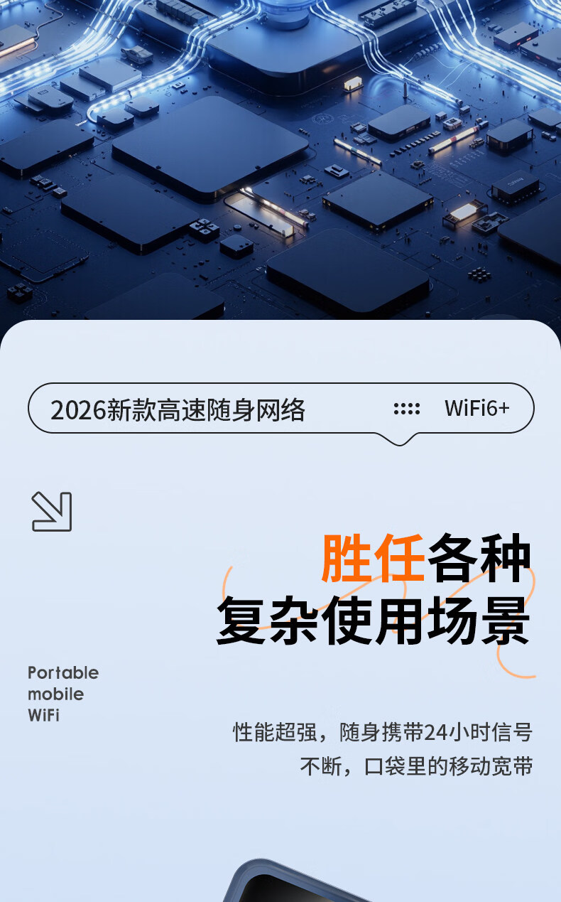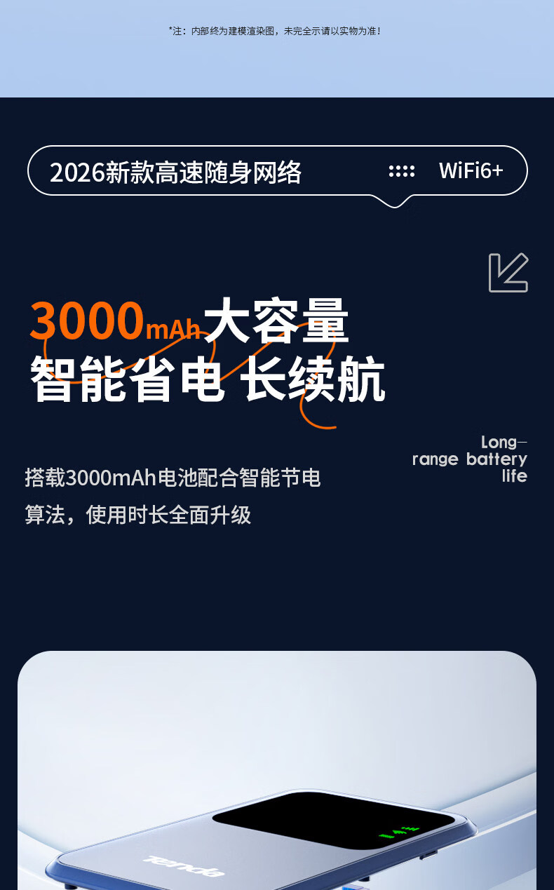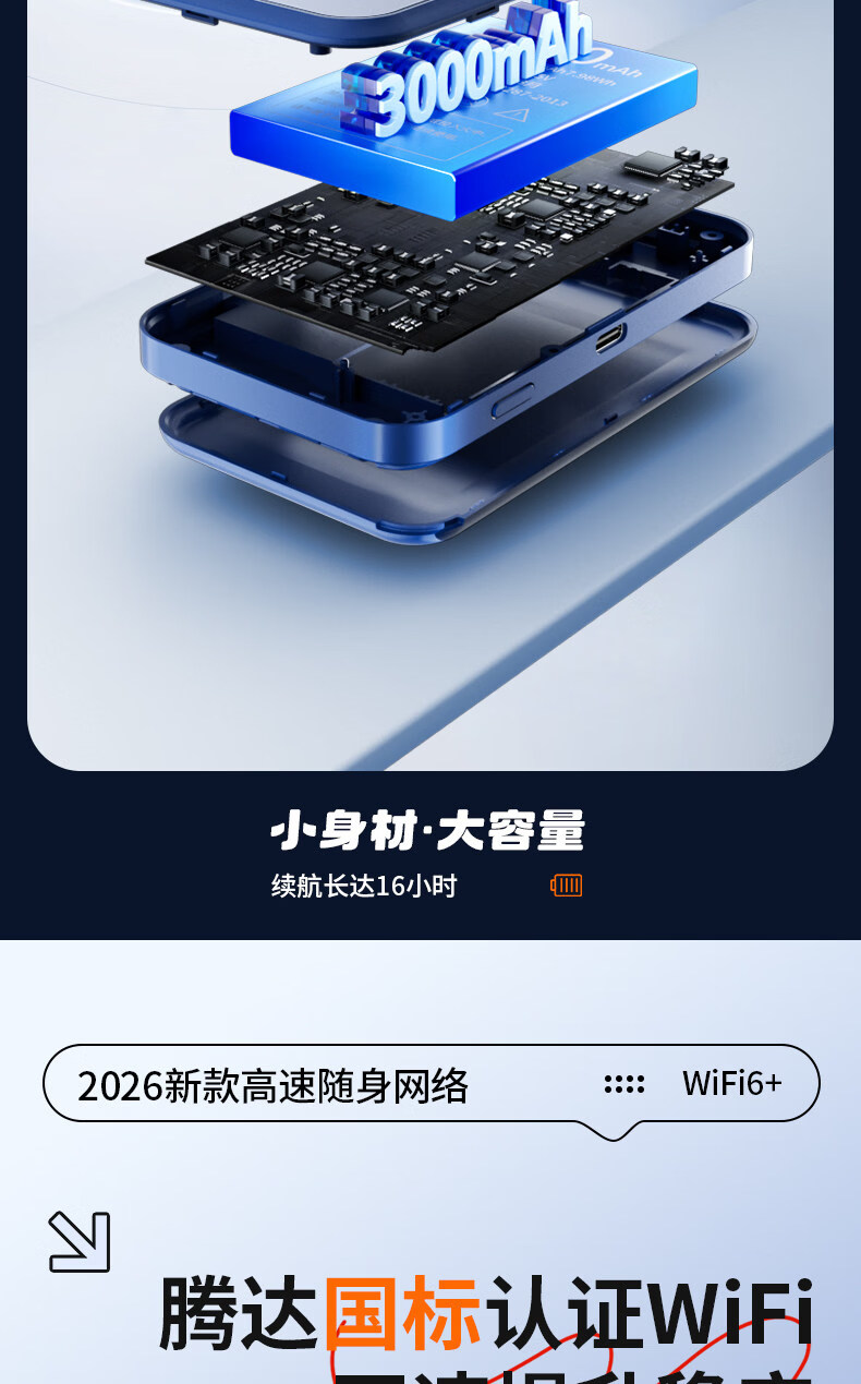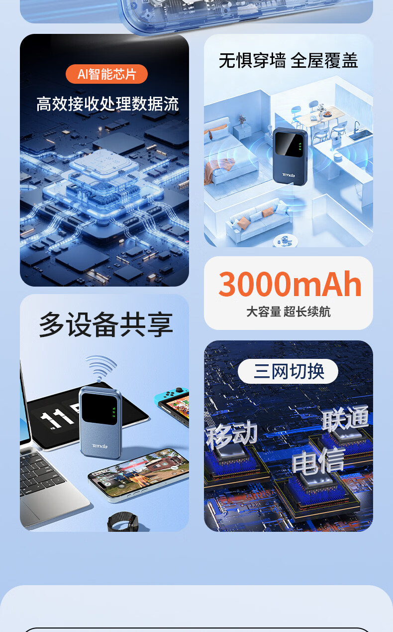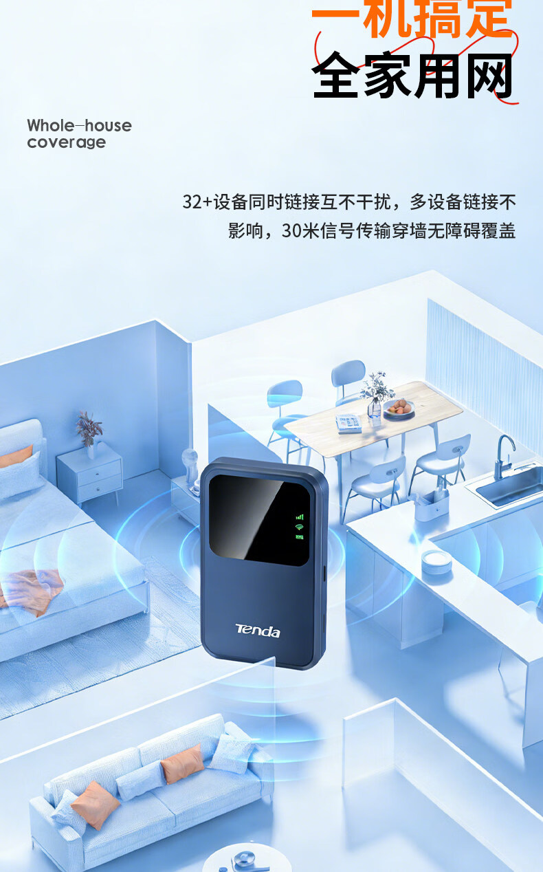 腾达Tenda腾达网络2026新款随身wifi移动无线wifi6无限速4g纯流量 免插卡wilf租房车载宽带5路由器家用 升级款【3000毫安超长续航】双网切换WiFi6
