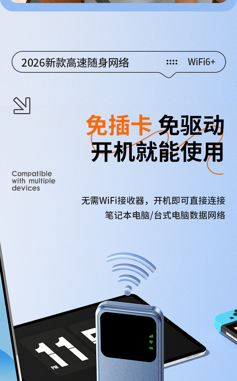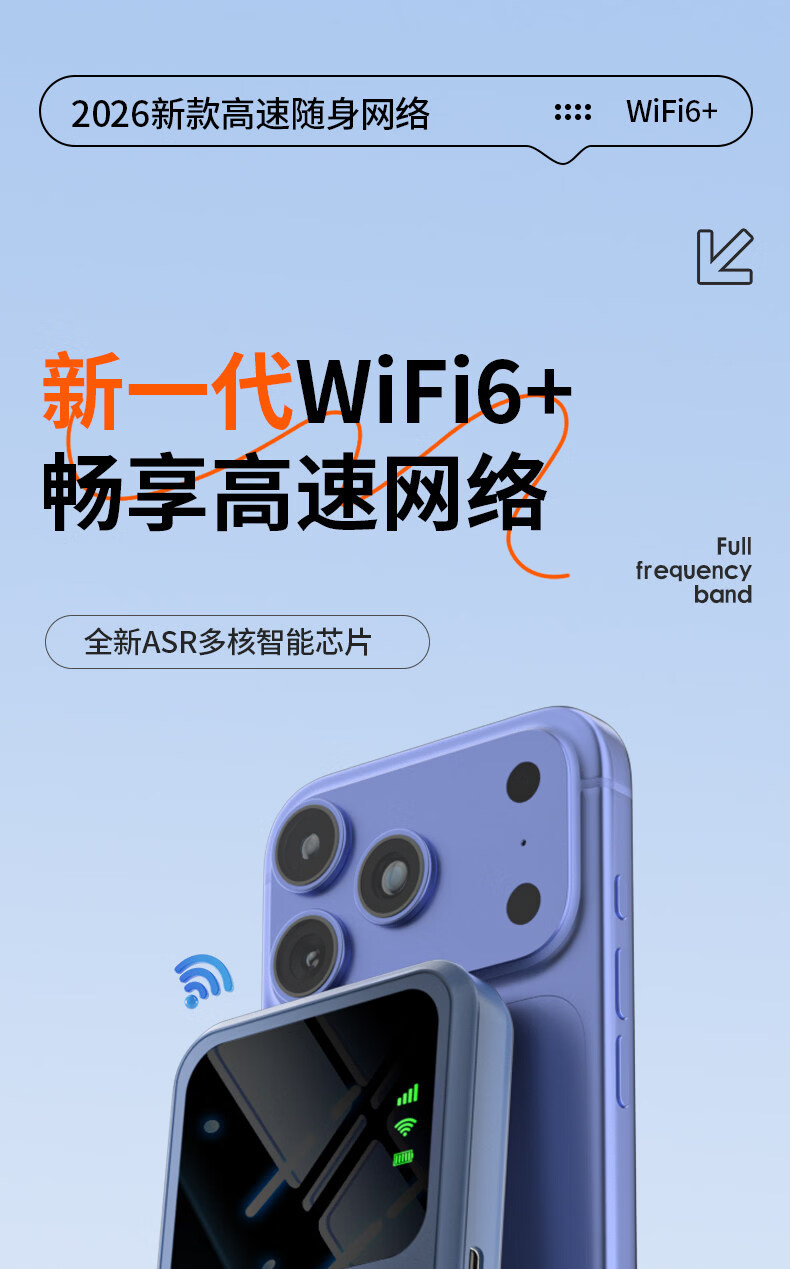 电小果随身wif全国通用无线wi-fi6免插卡移动电信无限制大流量卡便携式网卡高速网络2026款宿舍家用旅游 【顺丰包邮】2026款升级带屏版