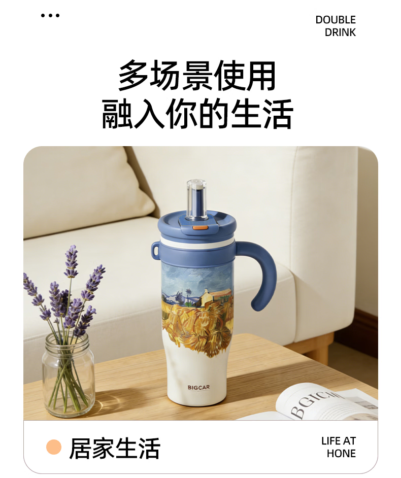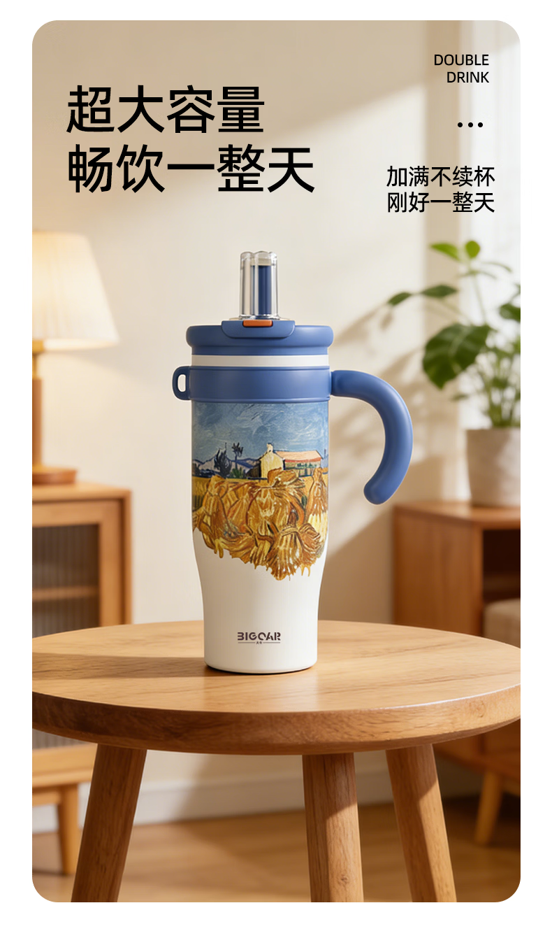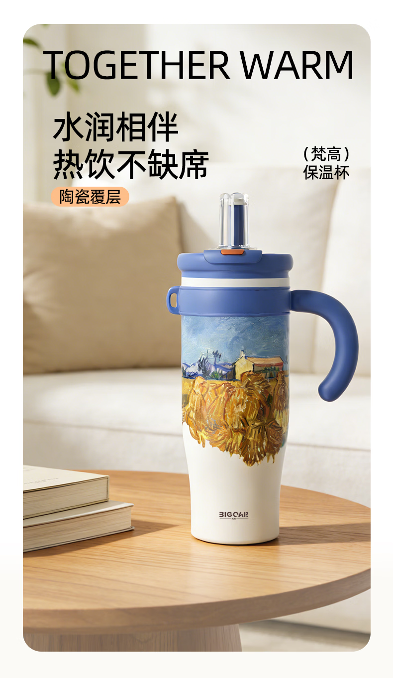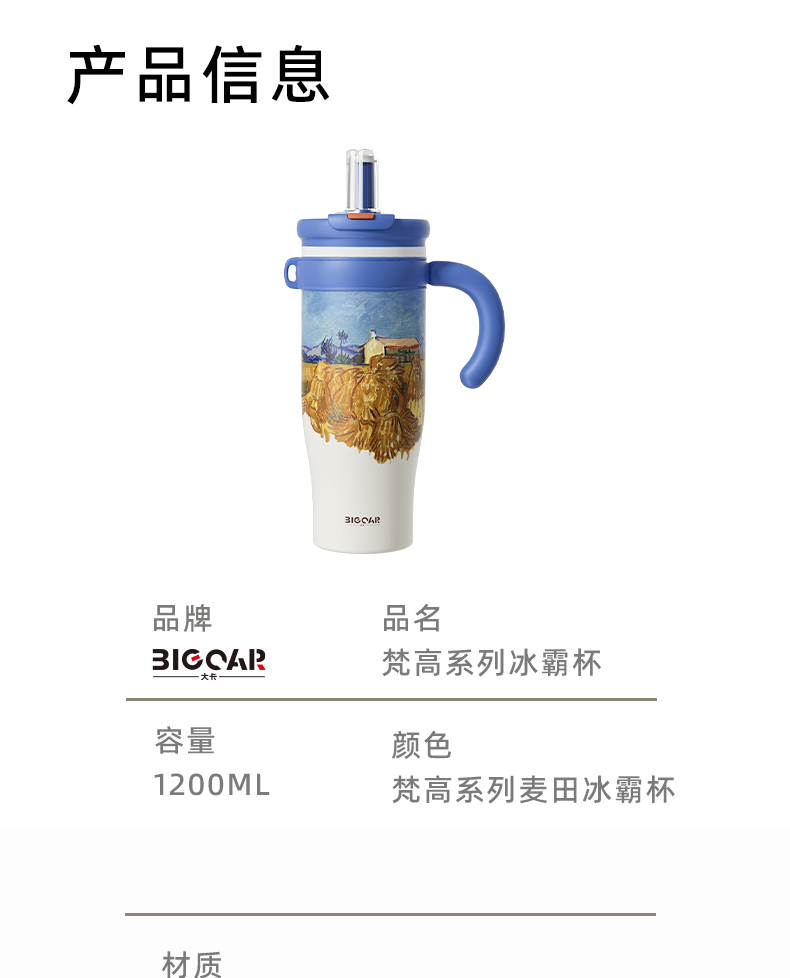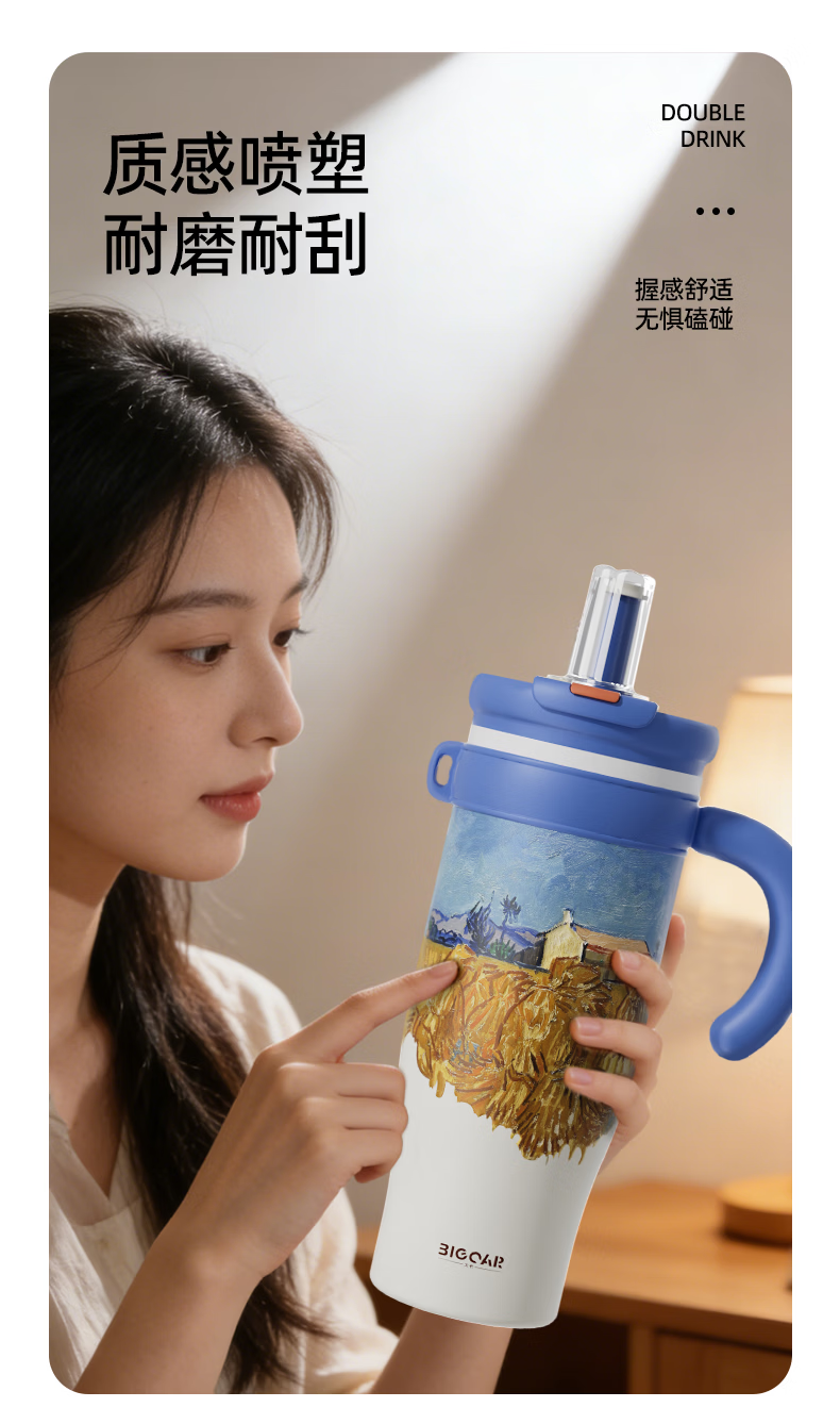 大卡(Big car)大卡高颜值保温杯大容量冰霸杯女生户外水杯保温保冷316不锈钢杯 梵高星空 1200ML