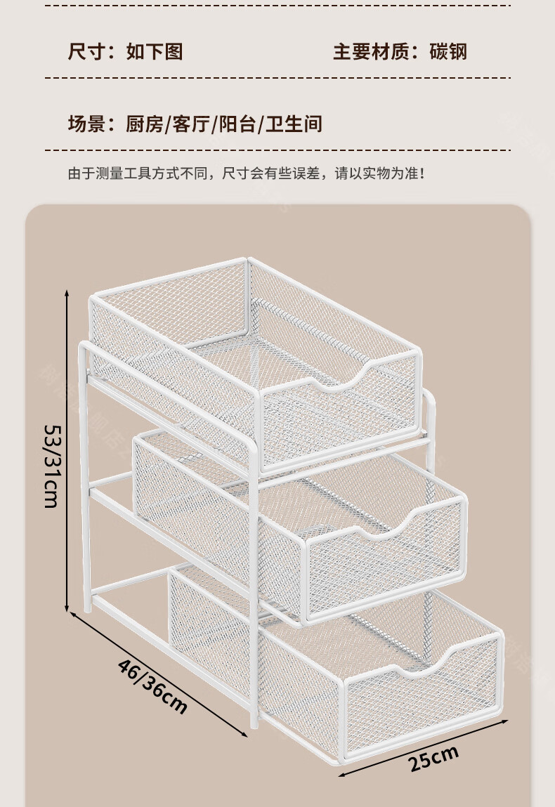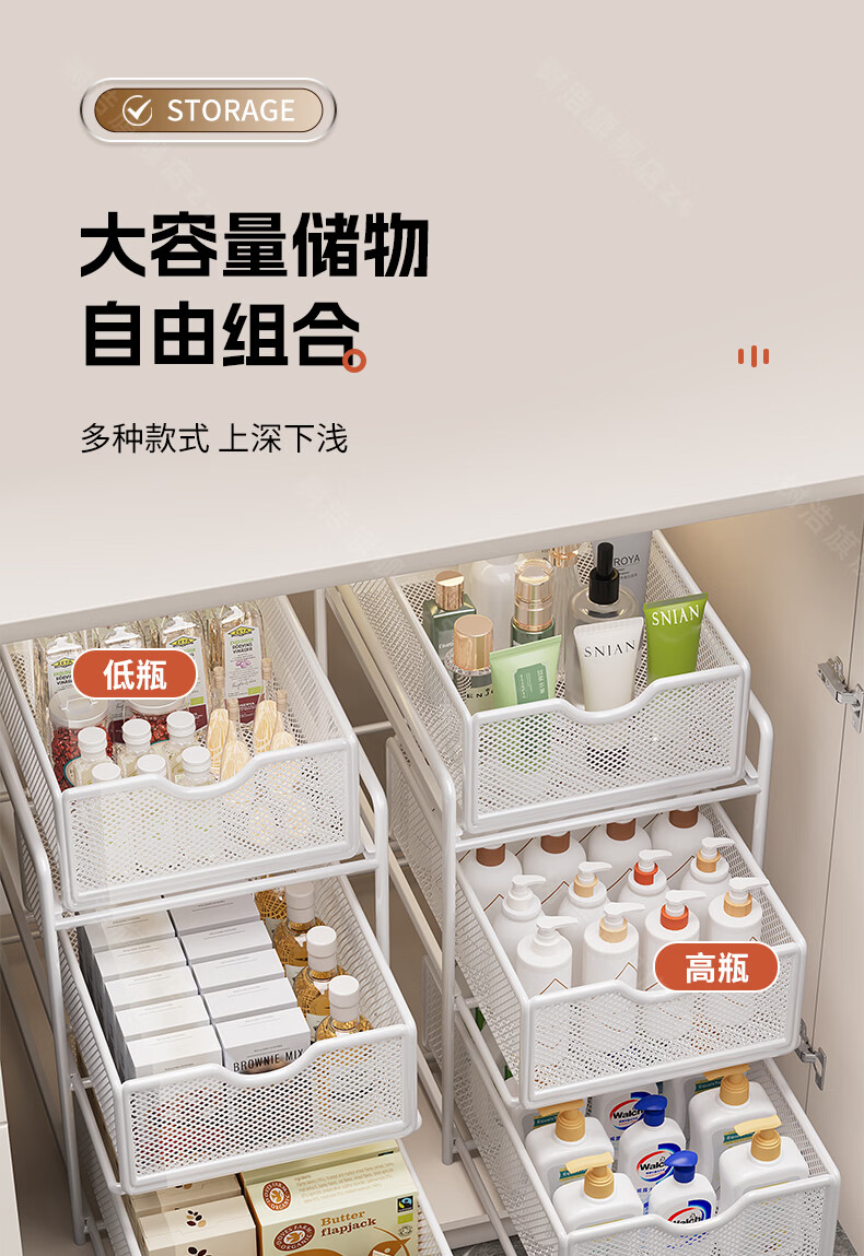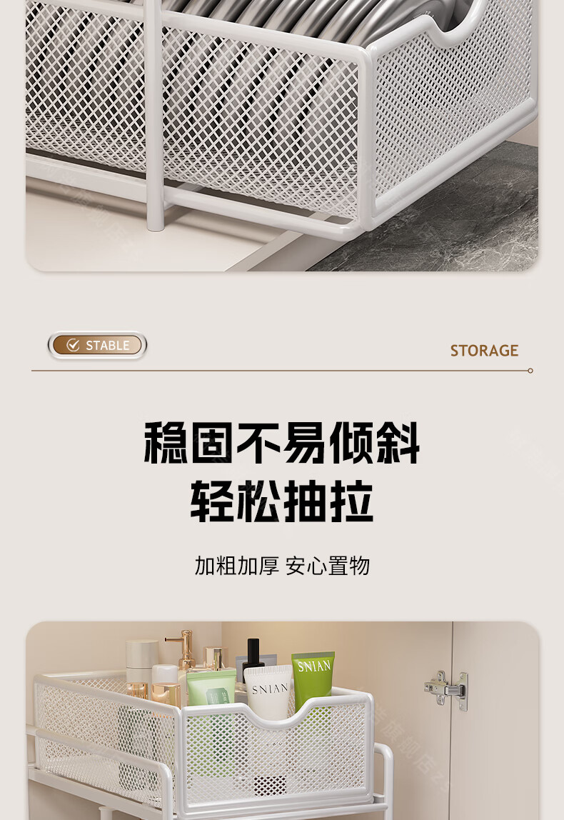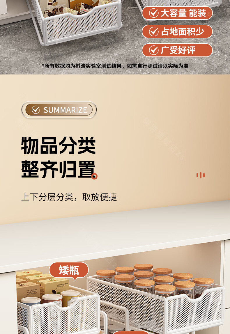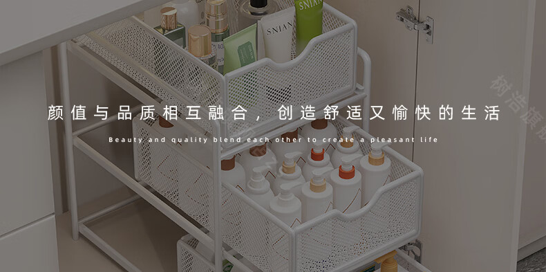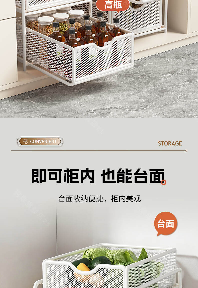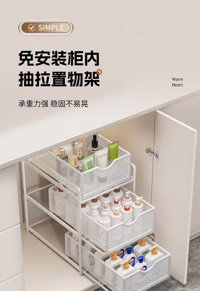 树浩家用储物收纳架桌面抽拉式零食架厨房柜内分层架浴室拉篮放置架子 【奶白】2层抽拉置物架-加深大号
