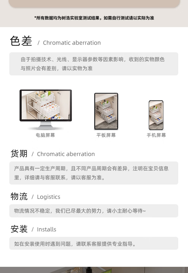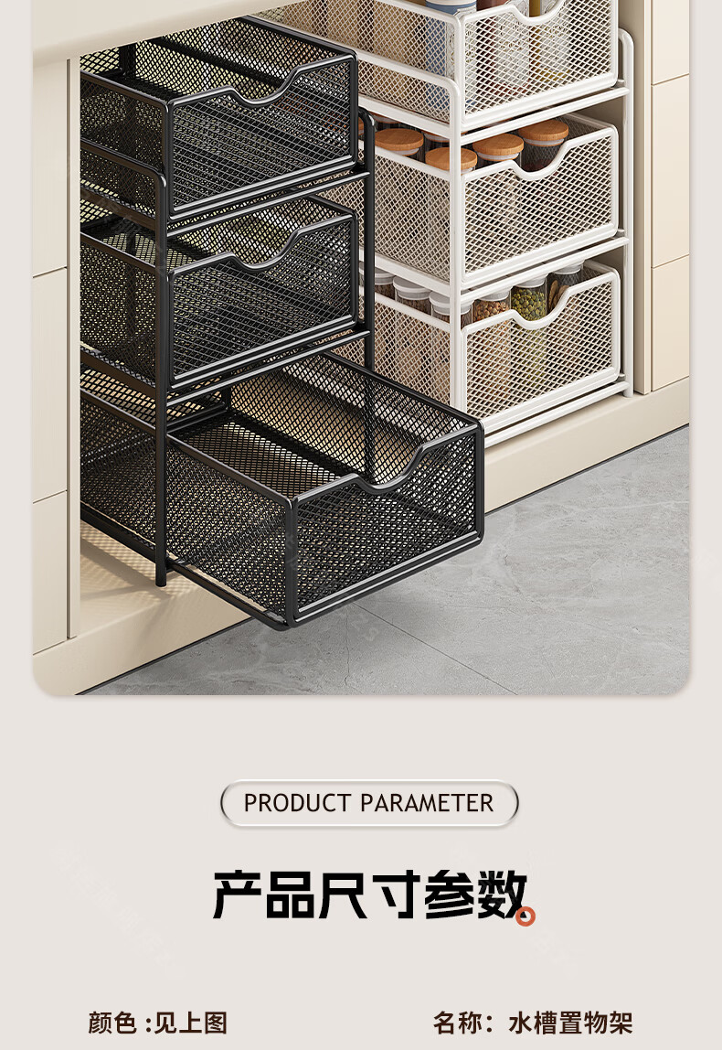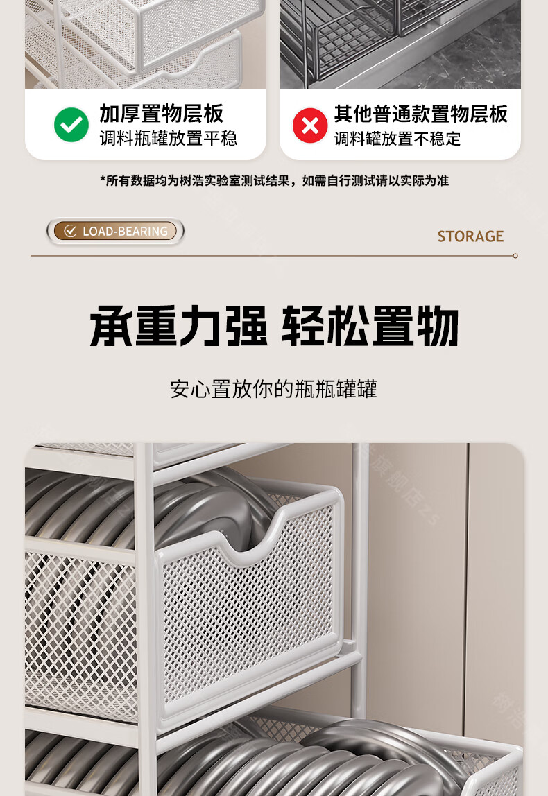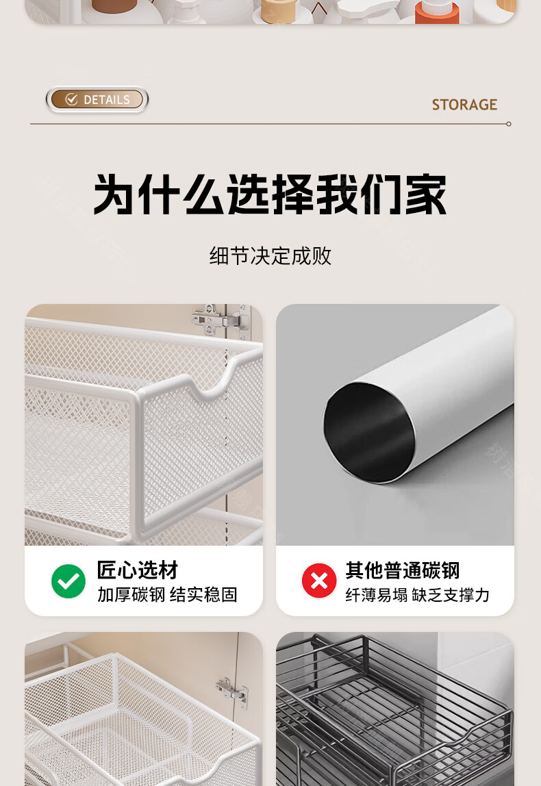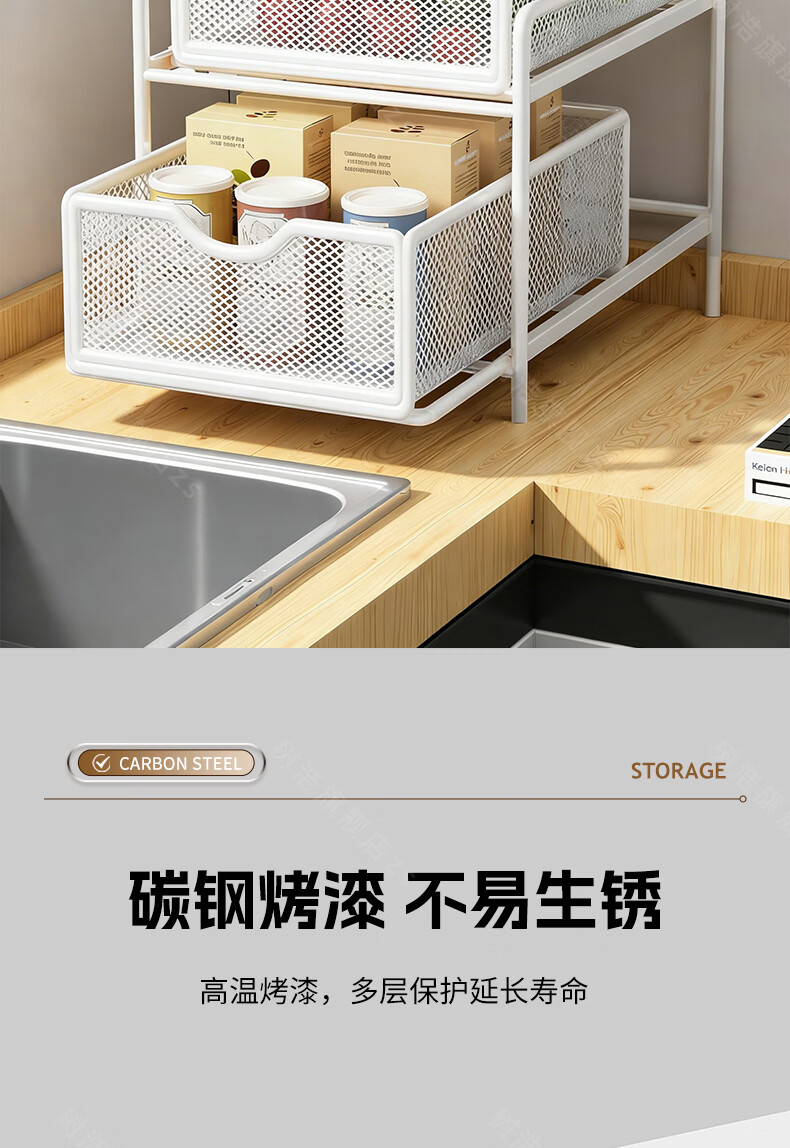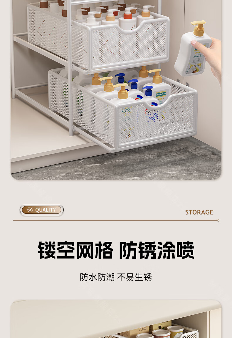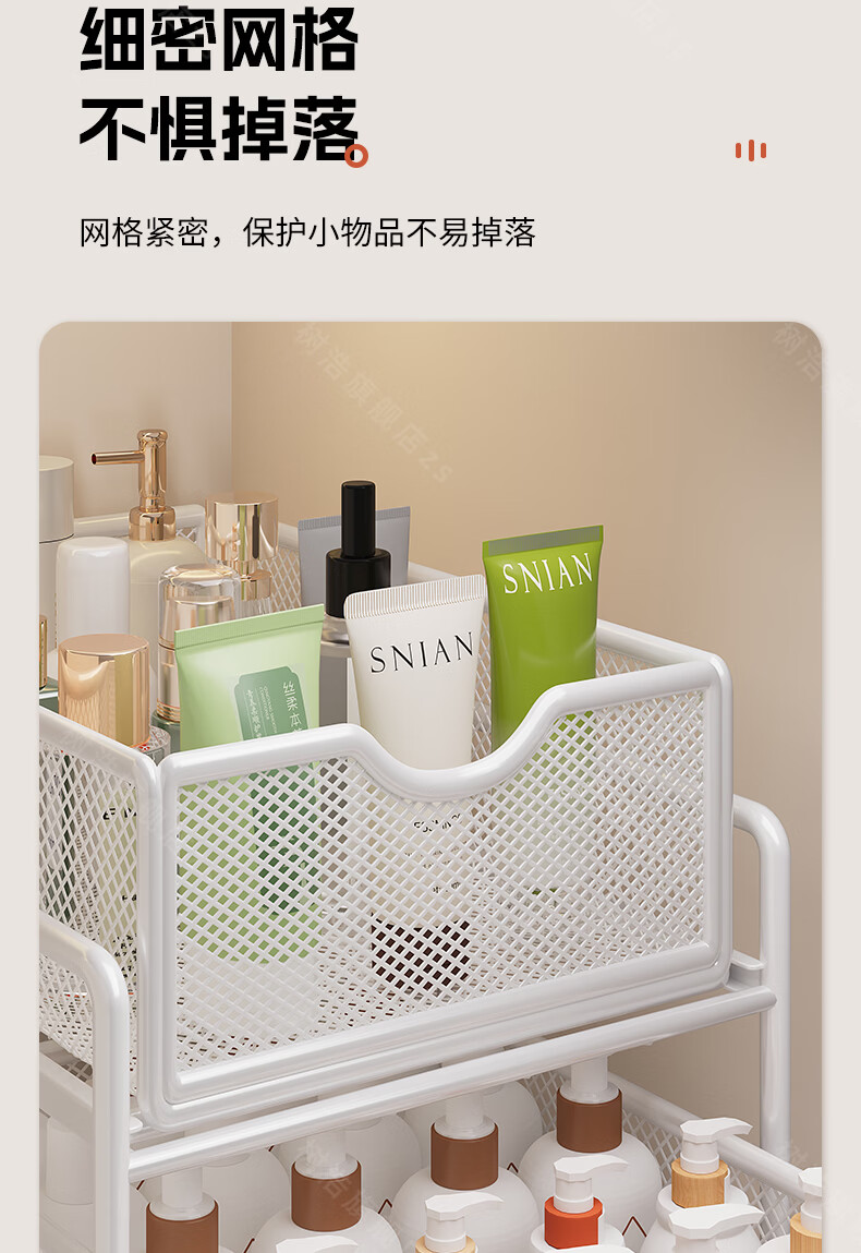 树浩家用储物收纳架桌面抽拉式零食架厨房柜内分层架浴室拉篮放置架子 【奶白】2层抽拉置物架-加深大号