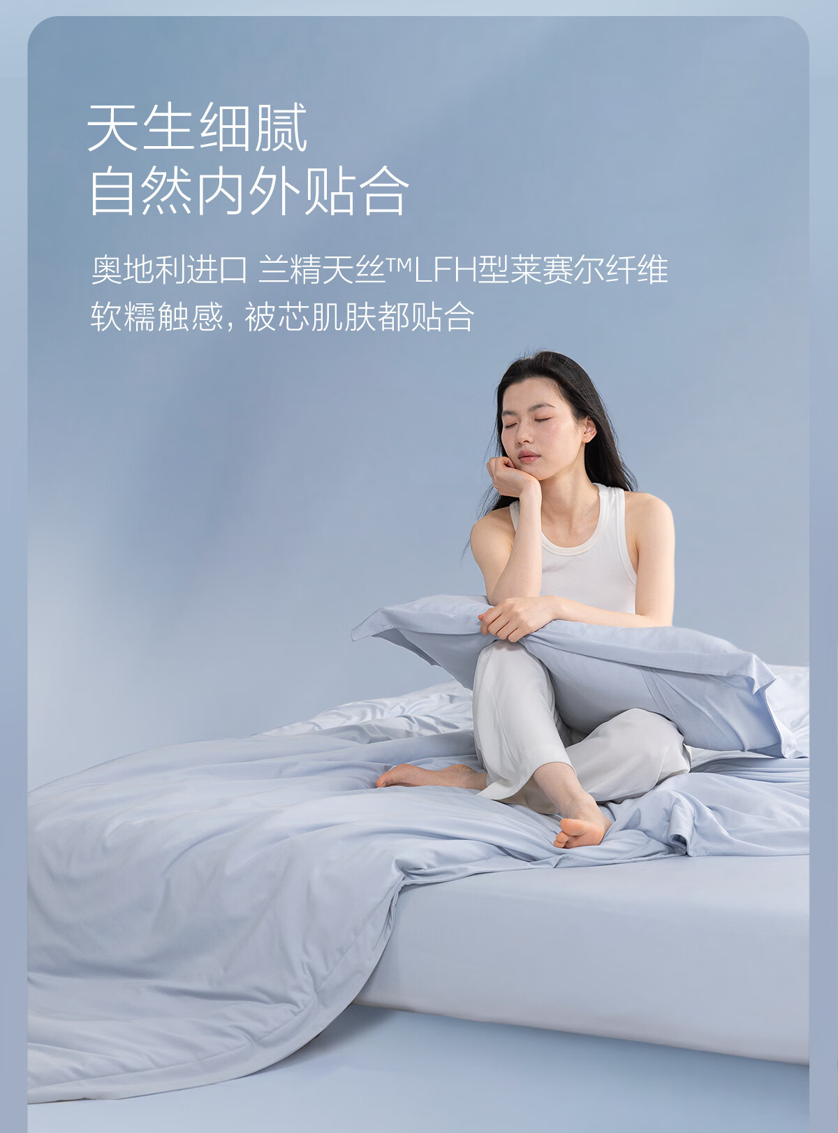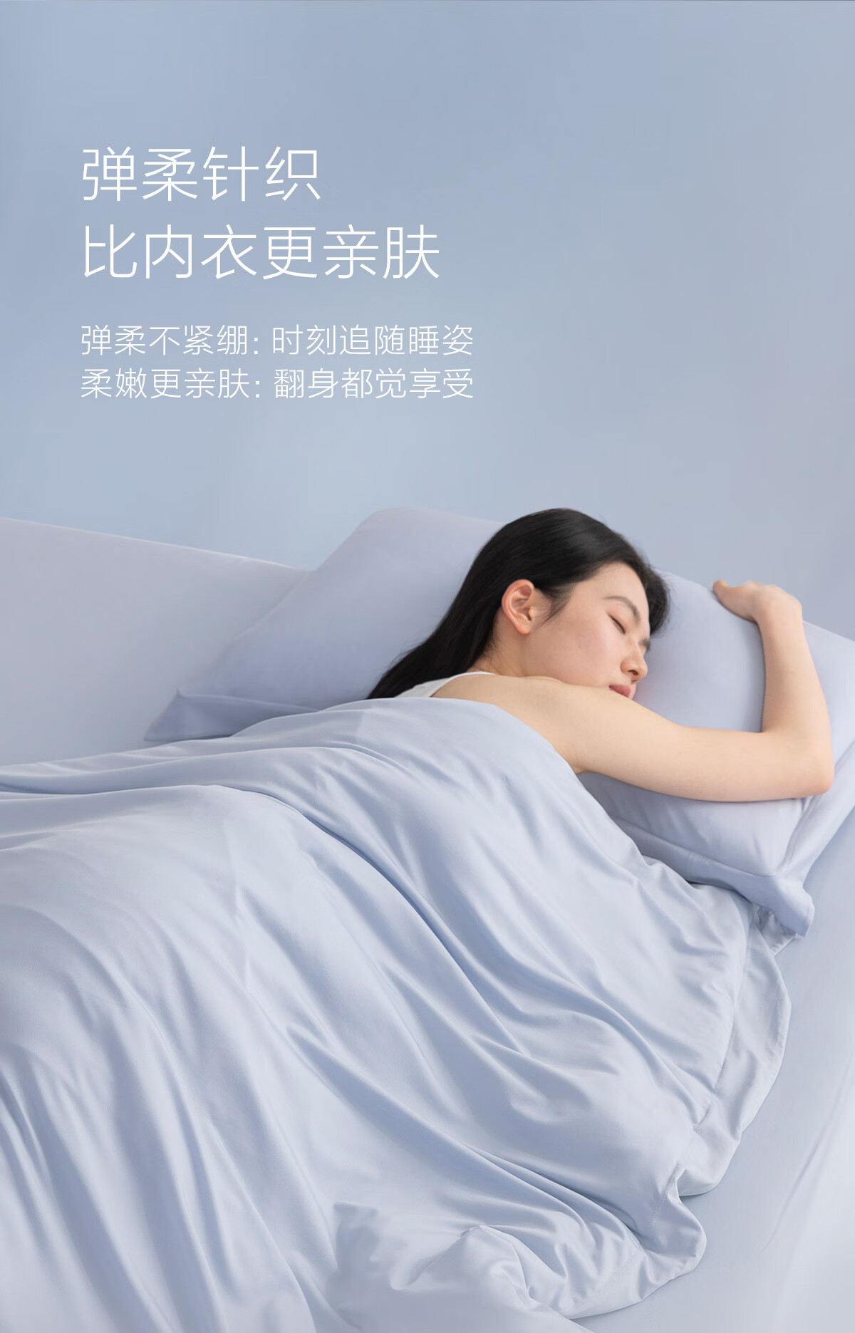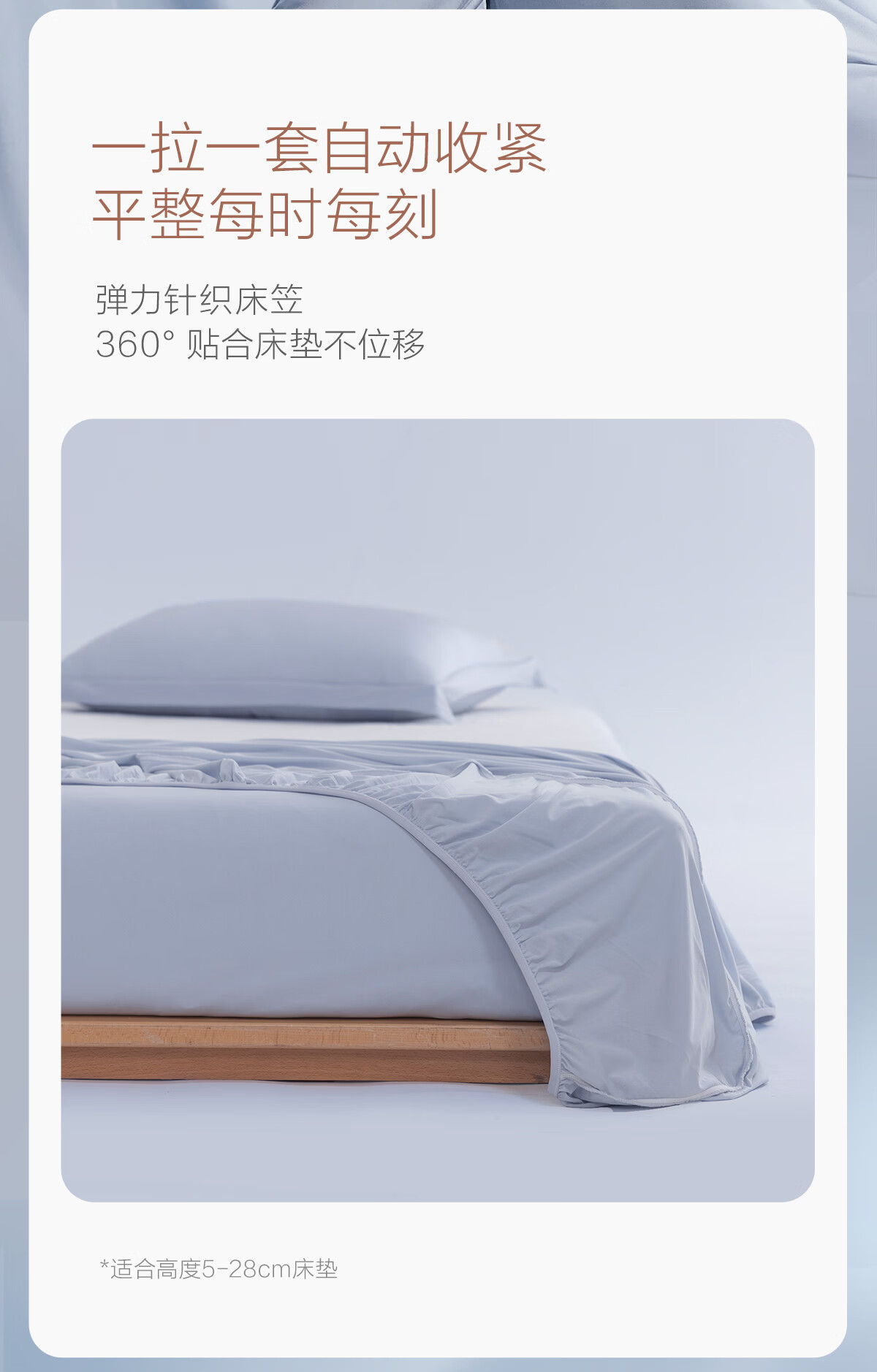 罗莱家纺A类天丝针织四件套床笠款 吸湿速干 7星级柔软 超柔针织·云肌丝柔 蓝色 1.5米床 床笠款 (被套200*230cm)