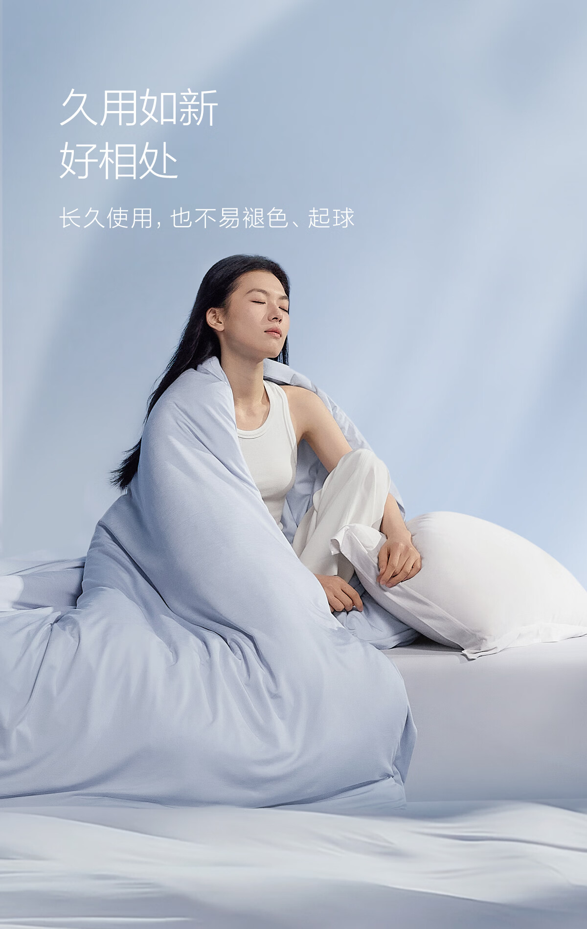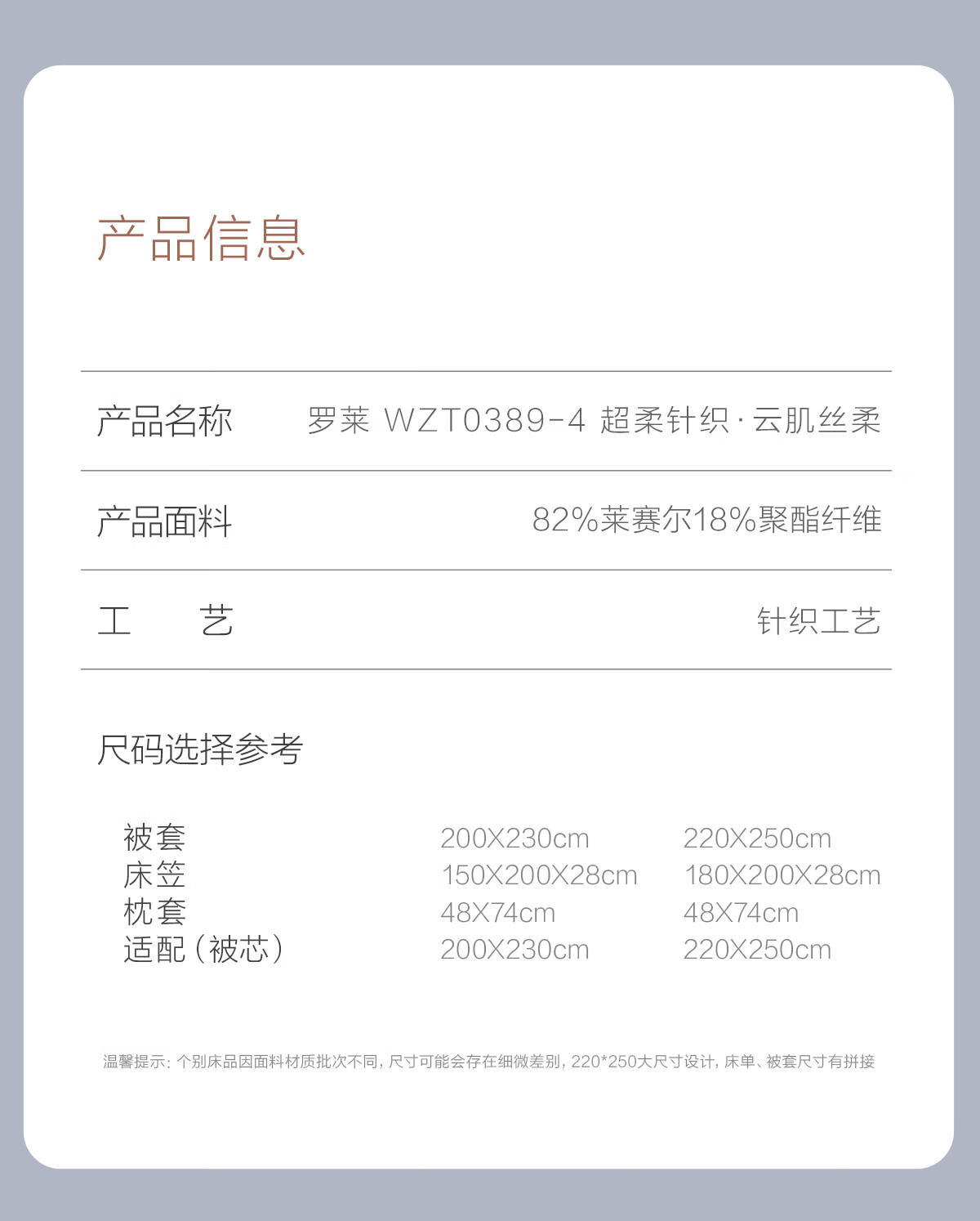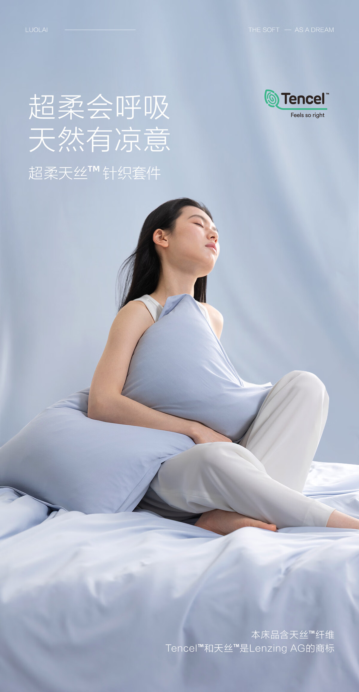 罗莱家纺A类天丝针织四件套床笠款 吸湿速干 7星级柔软 超柔针织·云肌丝柔 蓝色 1.5米床 床笠款 (被套200*230cm)