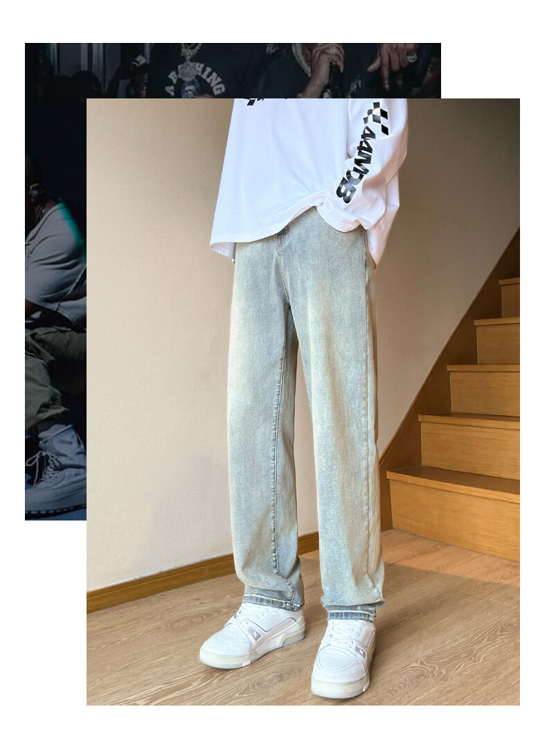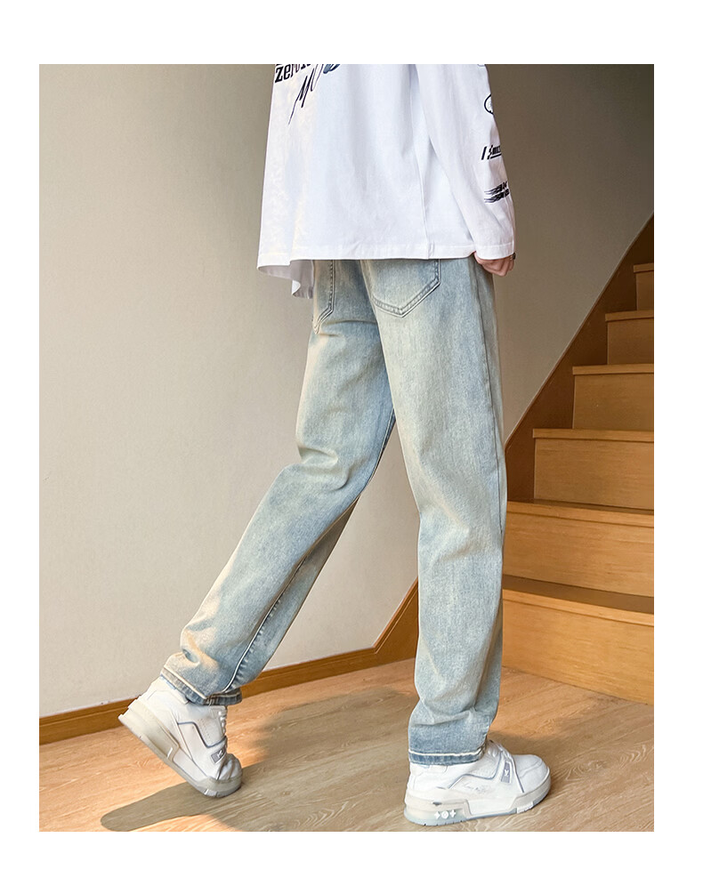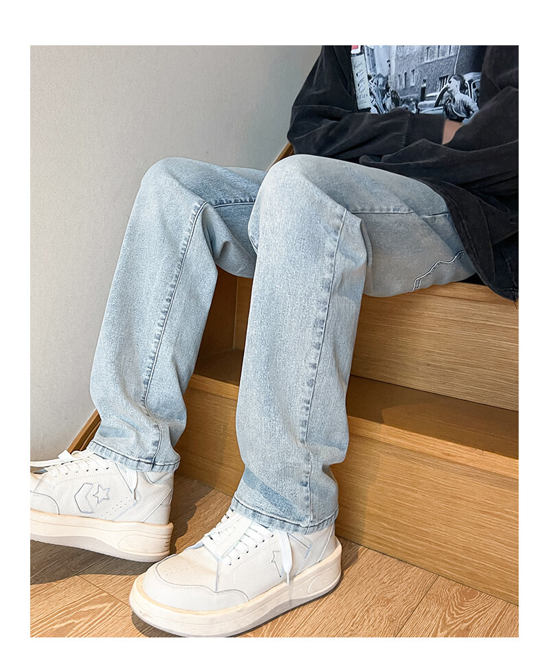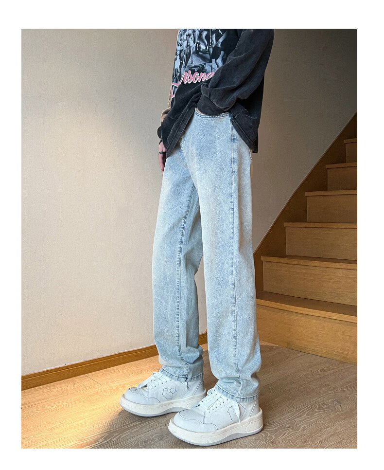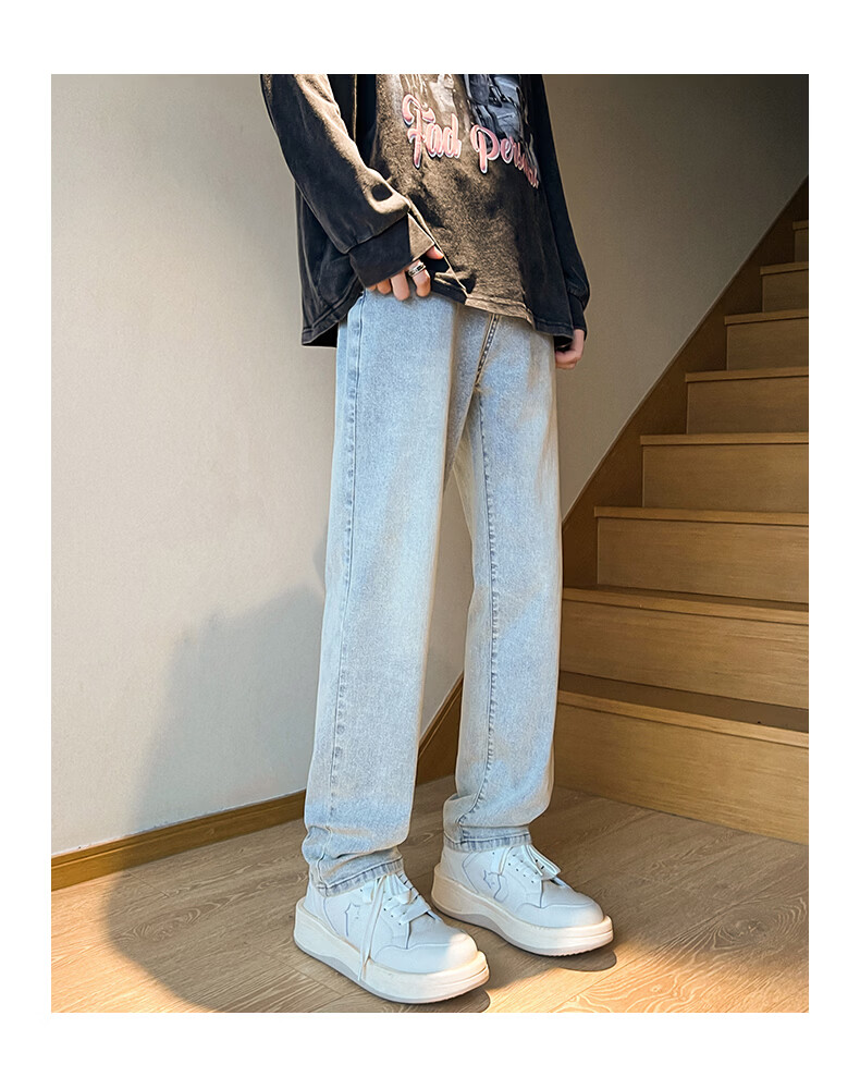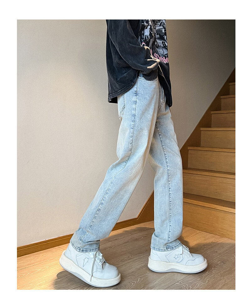 真维斯2026春夏季新款美式直筒牛仔裤高街潮牌宽松浅色窄版男生复古裤子 浅蓝色 S