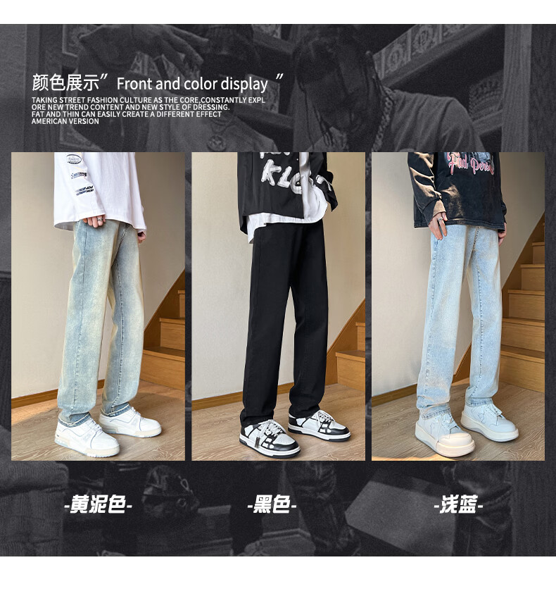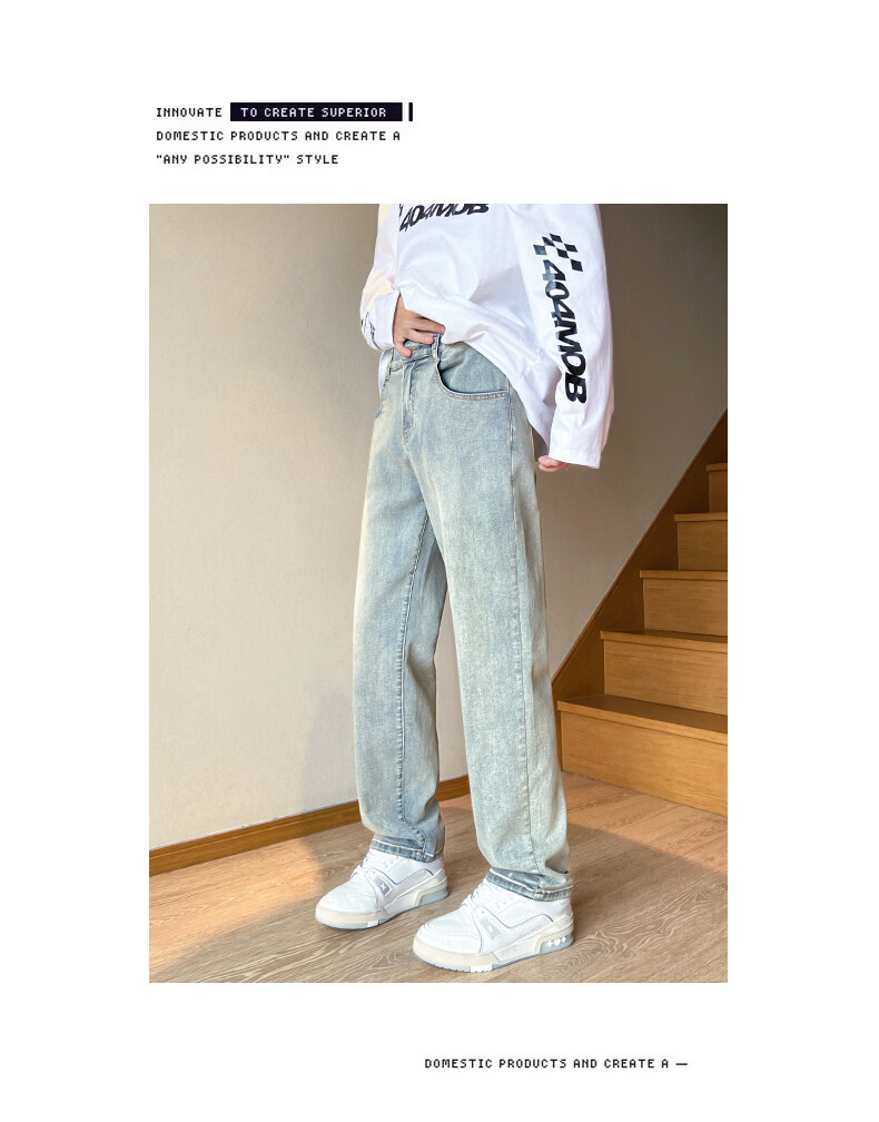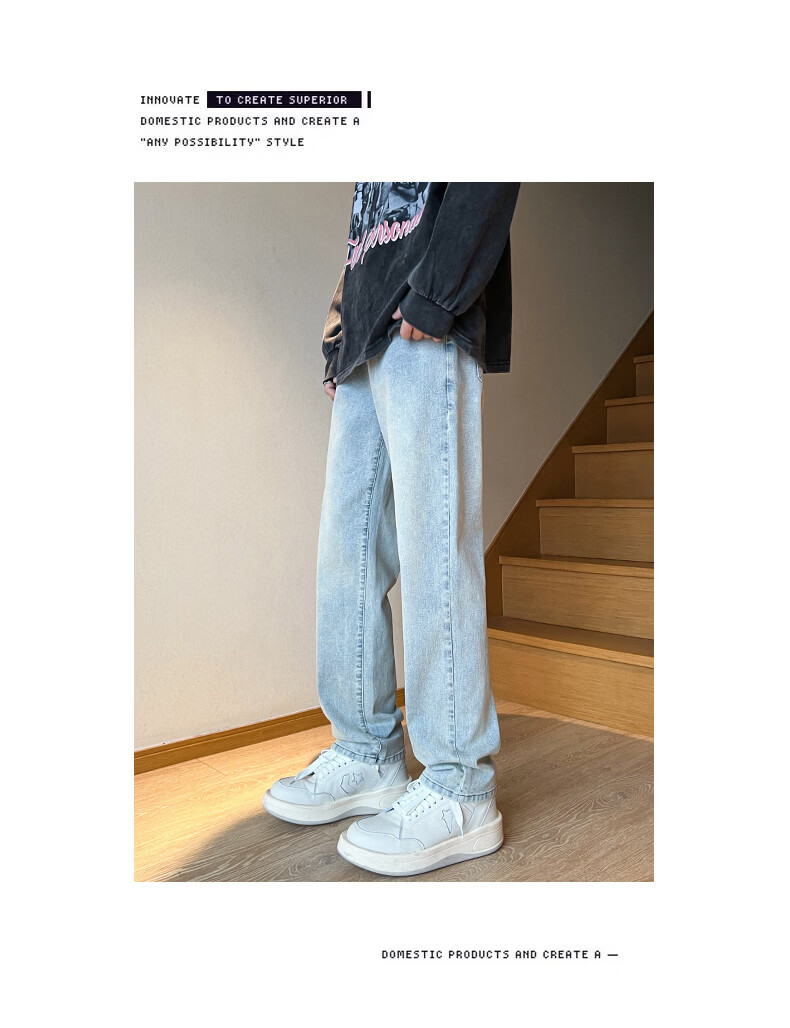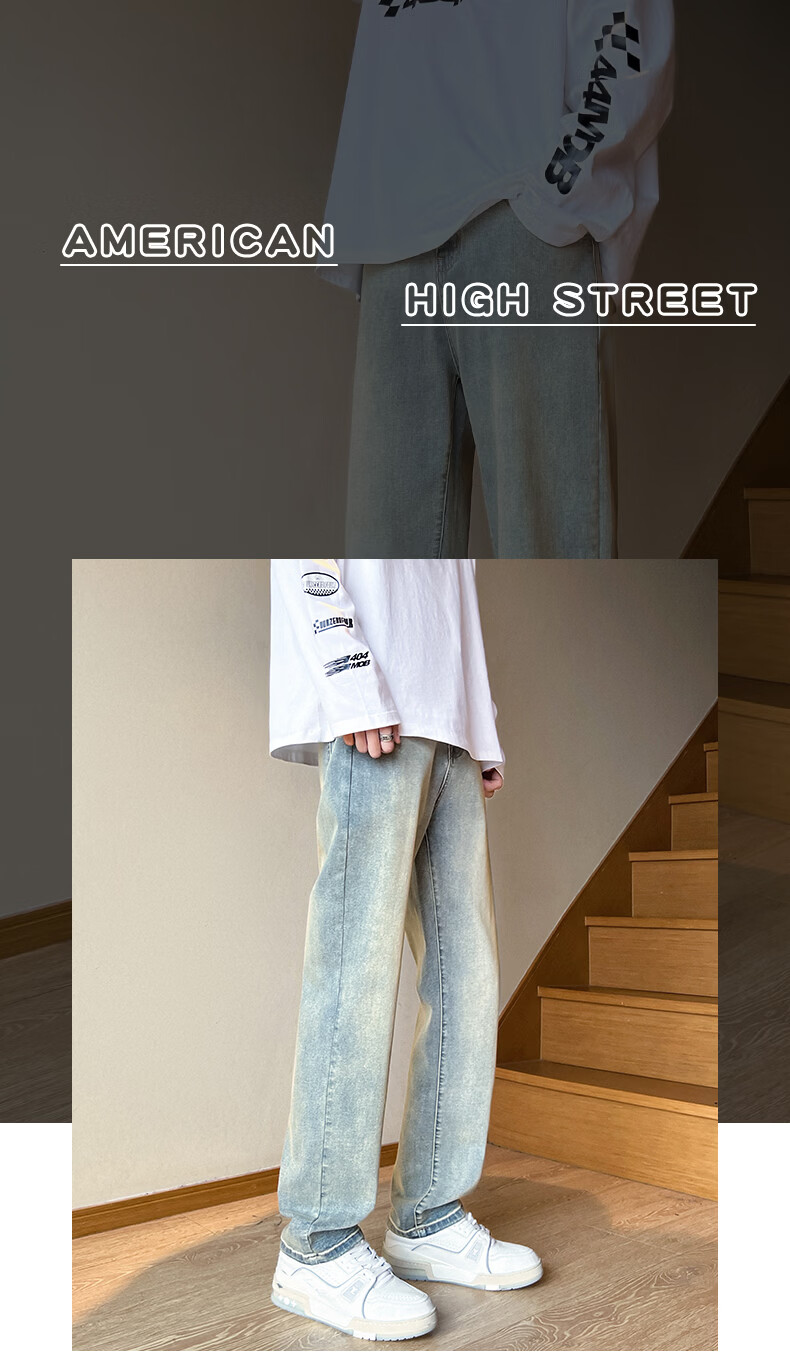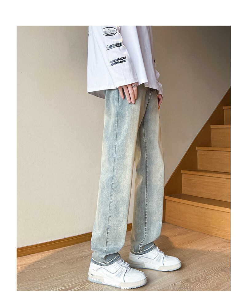 真维斯2026春夏季新款美式直筒牛仔裤高街潮牌宽松浅色窄版男生复古裤子 浅蓝色 S