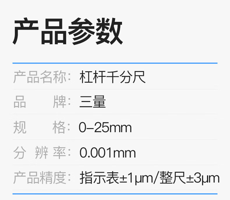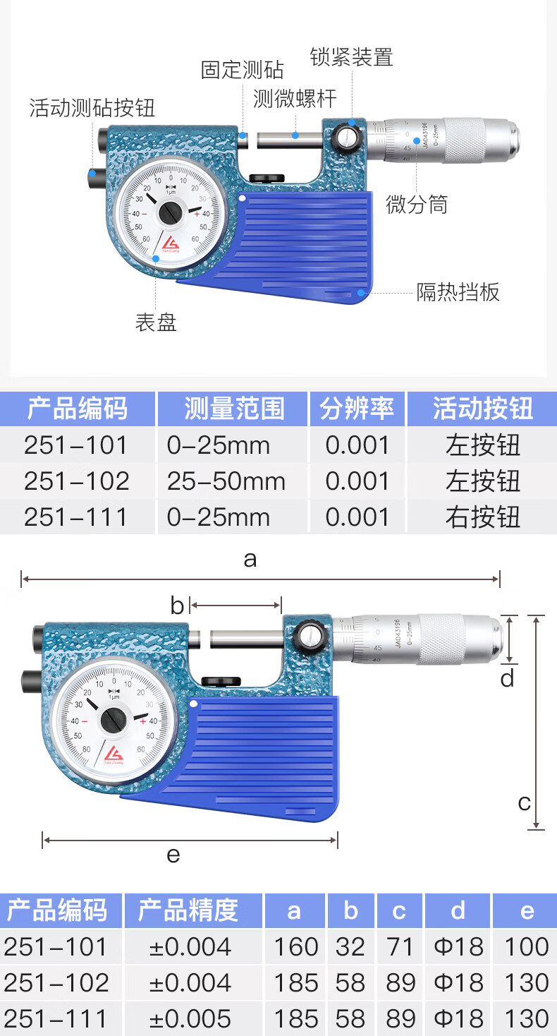 三量(sanliang)正品三量0-25mm杠杆千分尺高精度0.001测厚仪快速外径螺旋测微器 251-101 0-25mm(左按钮) 无规格