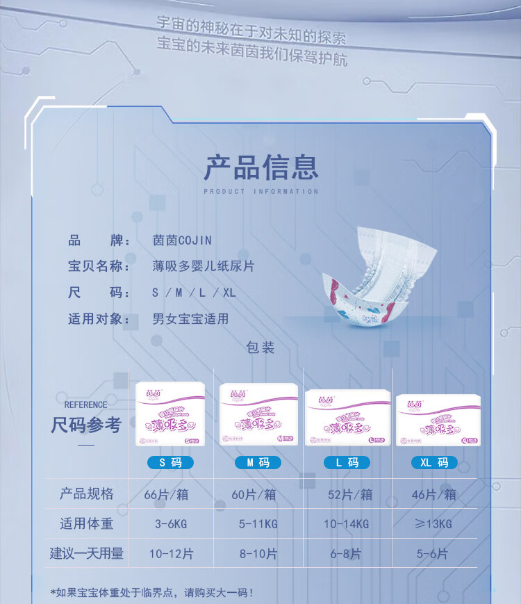 茵茵(cojin)薄吸多婴儿纸尿片M120(5-11kg)男女宝宝专用尿不湿无粘贴式纸尿裤