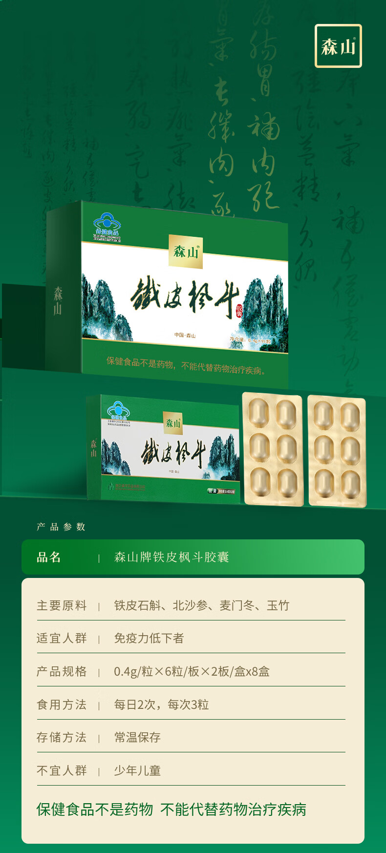 森山【38女神节送礼】铁皮枫斗胶囊 石斛粉颗粒0.4g*96粒 96粒无糖胶囊