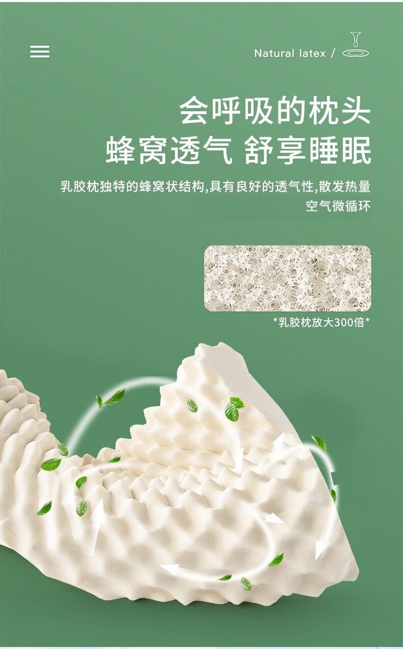泰嗨(TAIHI) 天然乳胶枕头泰国进口颈椎枕芯橡胶枕头乳胶枕头泰象吉祥 狼牙枕 一对装