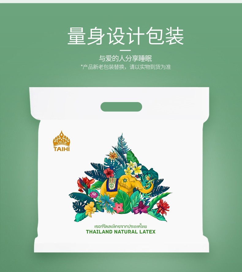 泰嗨(TAIHI) 泰国进口 乳胶枕头 成人枕 天然枕芯 带枕套平面枕 泰象吉祥-波浪枕10/12【一对装】
