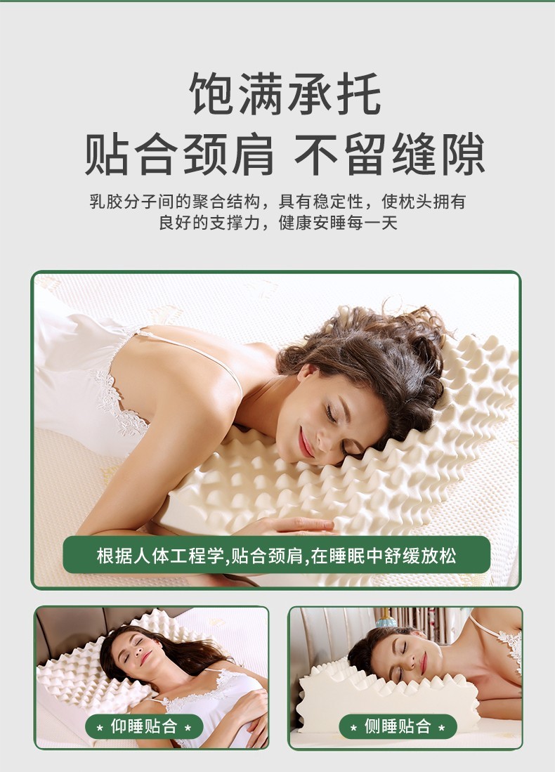 泰嗨(TAIHI)泰国天然乳胶枕头睡眠按摩枕泰国进口颈椎枕芯橡胶枕头 泰象吉祥-波浪枕8/10 单只装