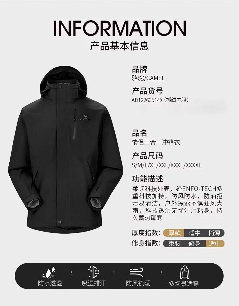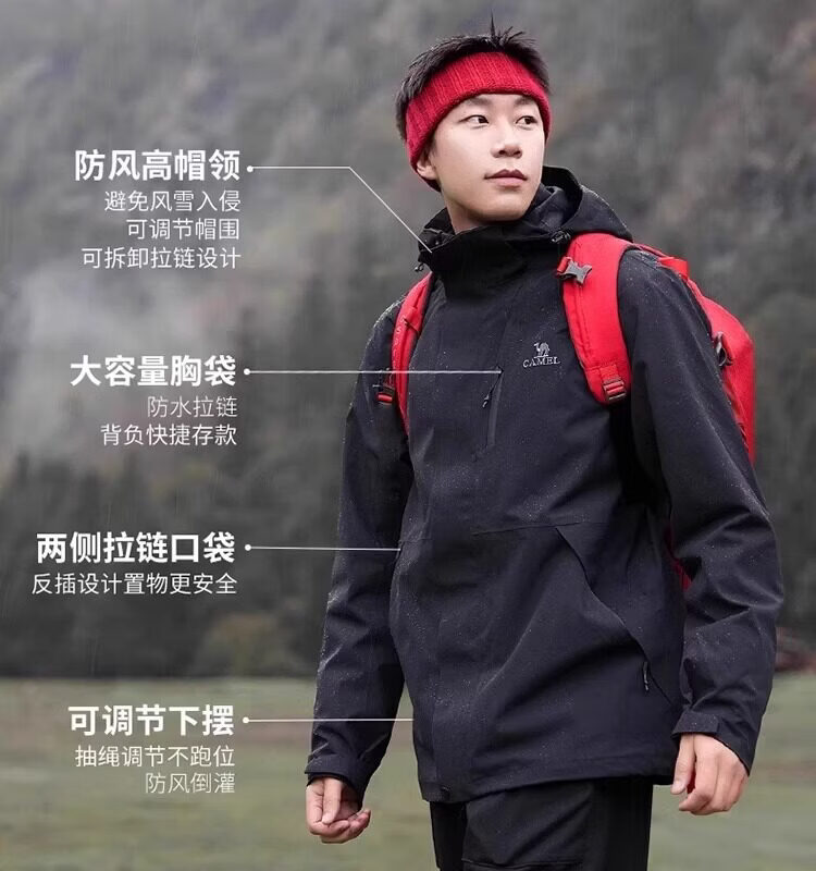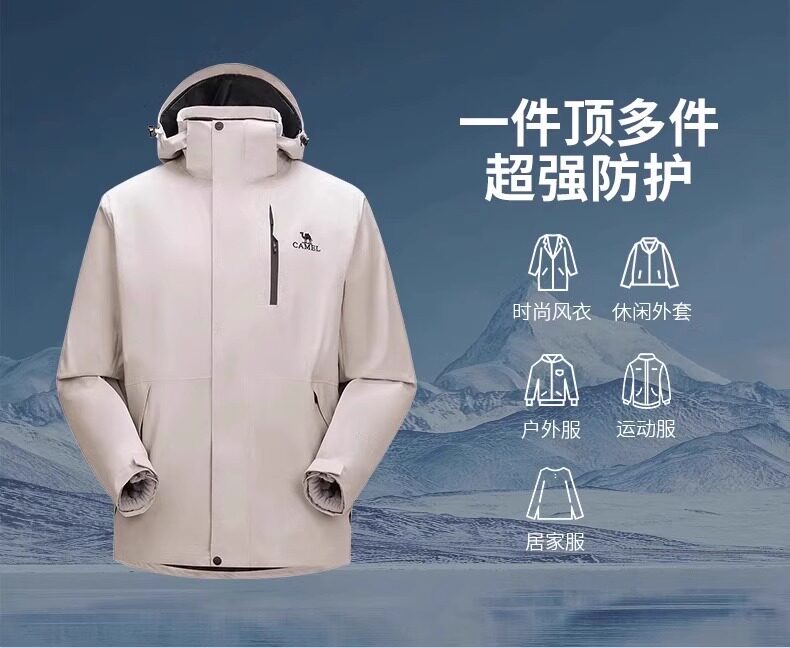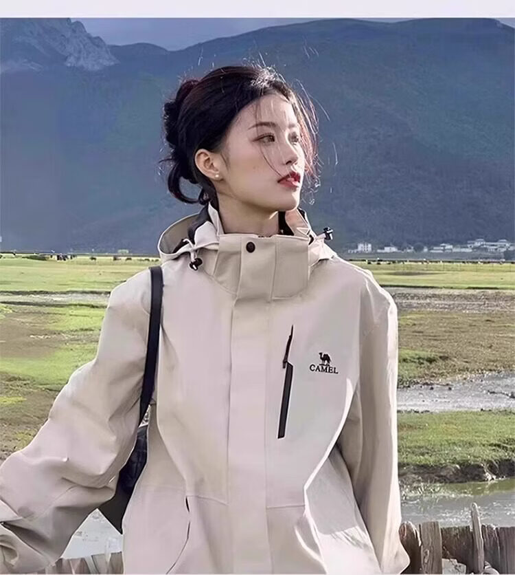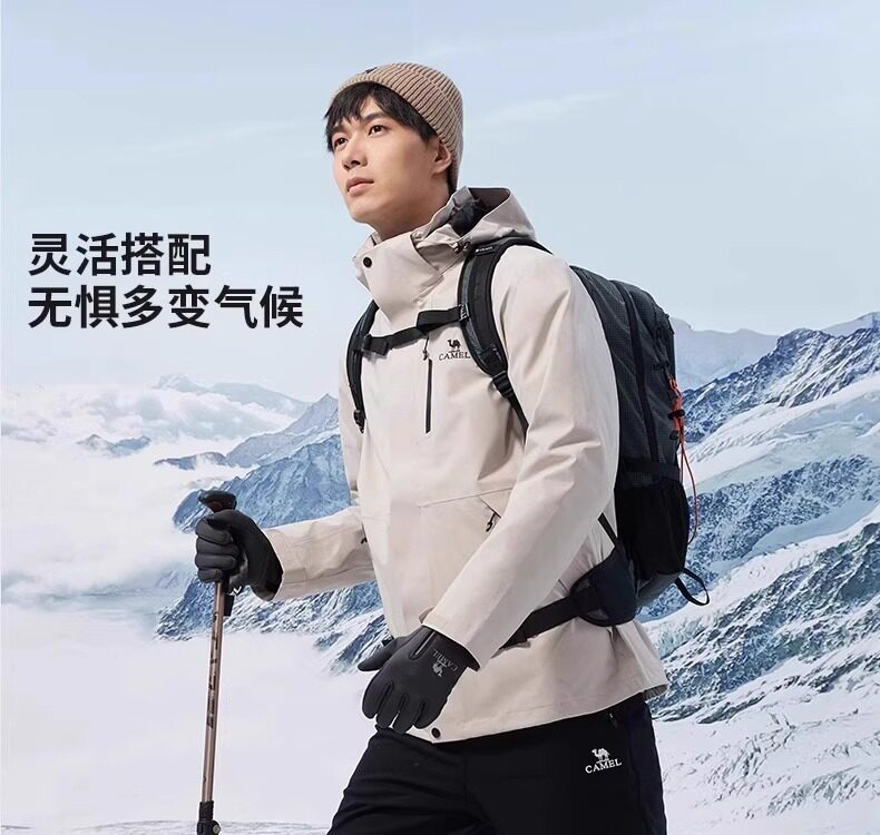 骆驼冲锋衣男女2026新款户外三合一可拆卸春秋冬季防风防水登山服外套 苹果绿【有内胆】男女同款 4XL 165-180斤