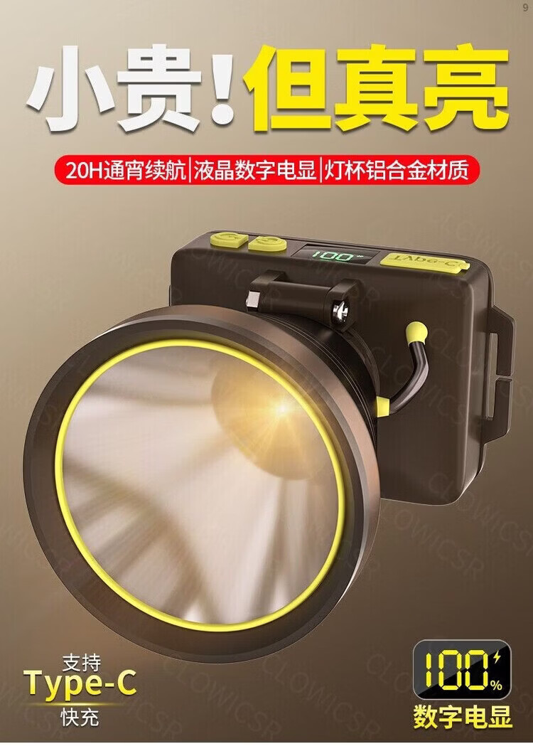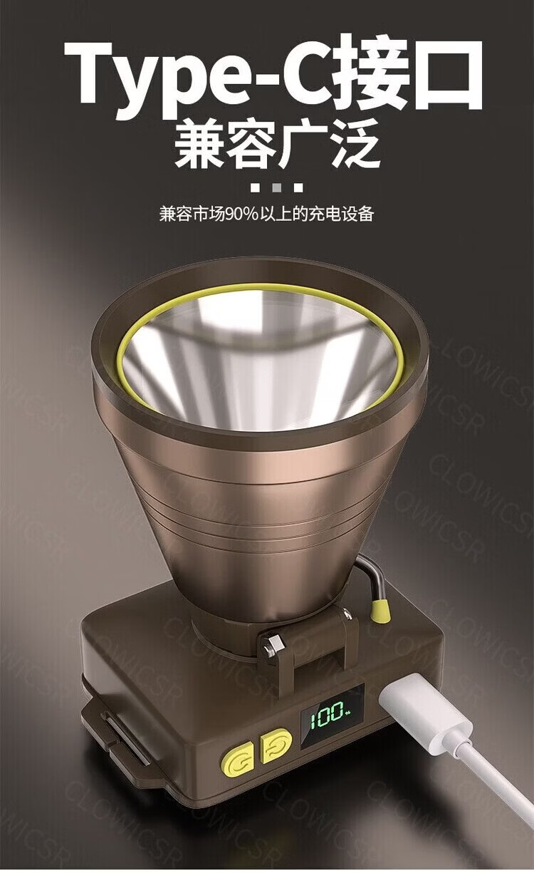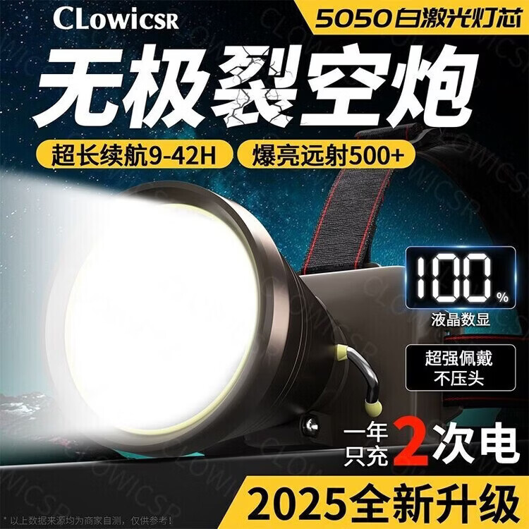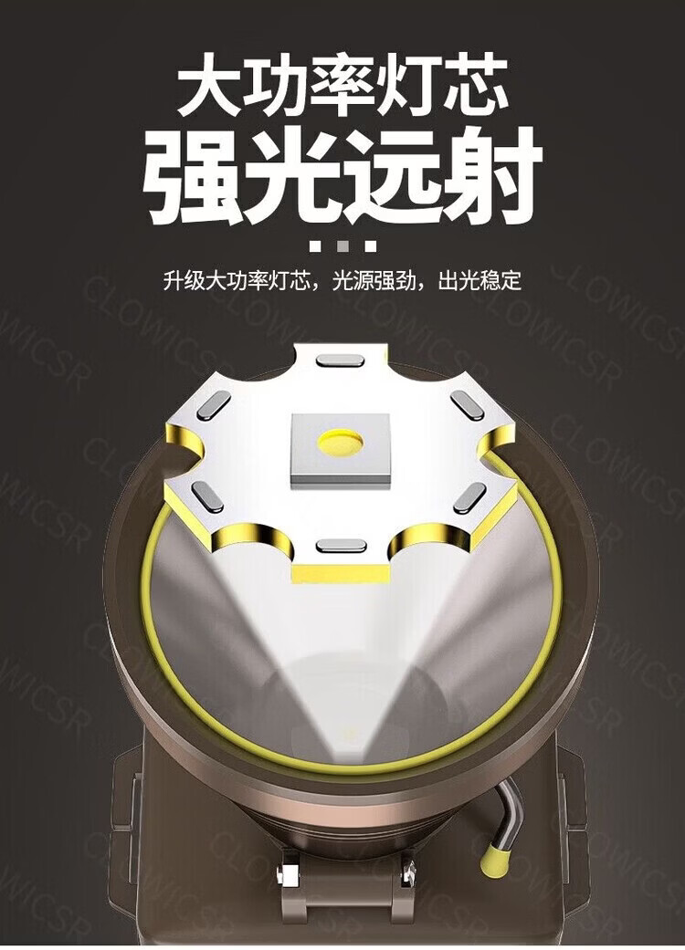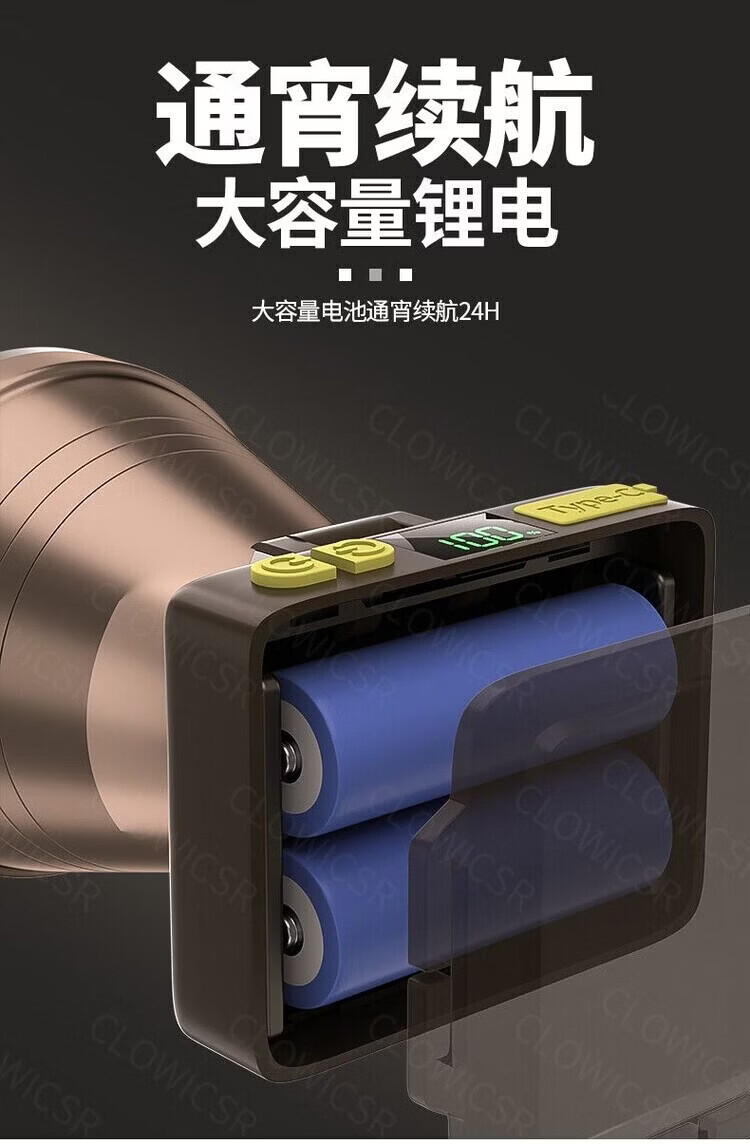 CLowicsr夜钓鱼头灯强光超长续航待机72小时2025新款双锂电池军头戴式专用 无极亮-聚光灯杯-大光圈 常规:光珠电显【30W 】