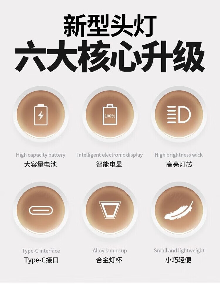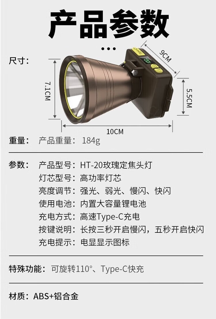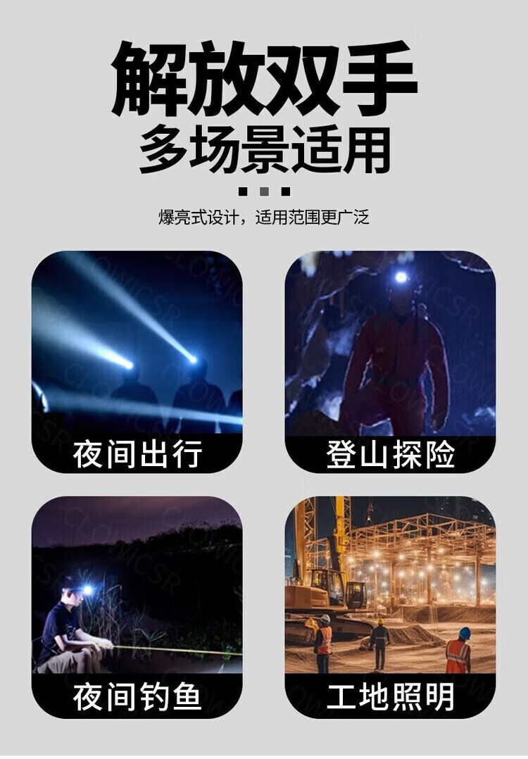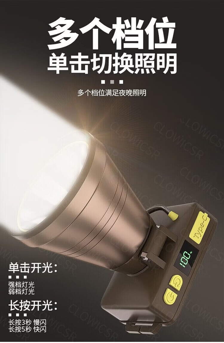 CLowicsr夜钓鱼头灯强光超长续航待机72小时2025新款双锂电池军头戴式专用 无极亮-聚光灯杯-大光圈 常规:光珠电显【30W 】