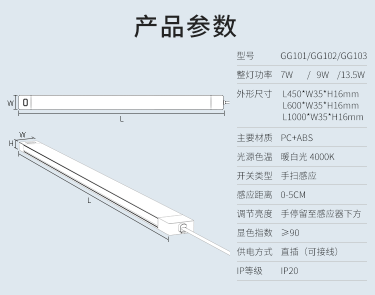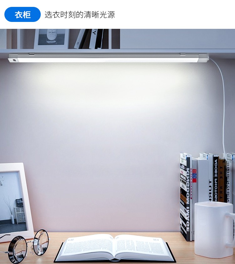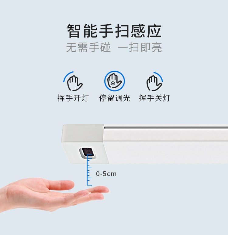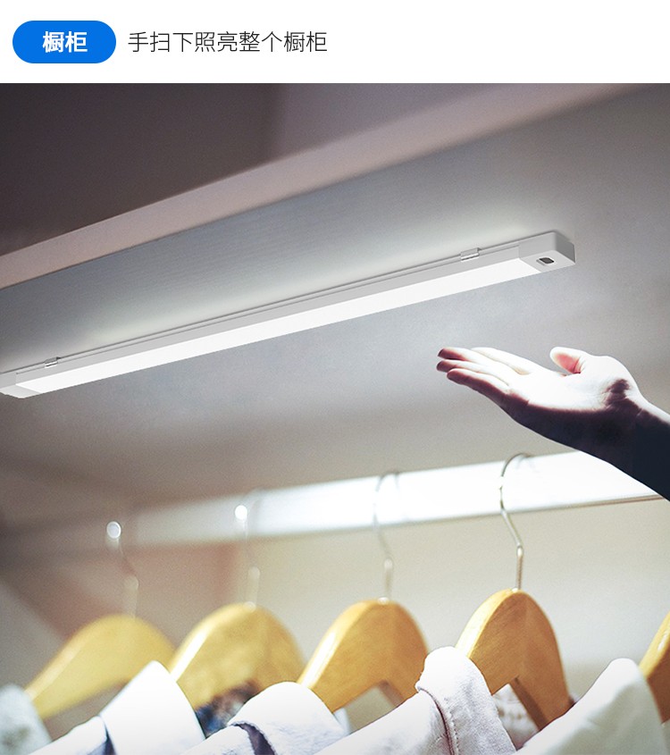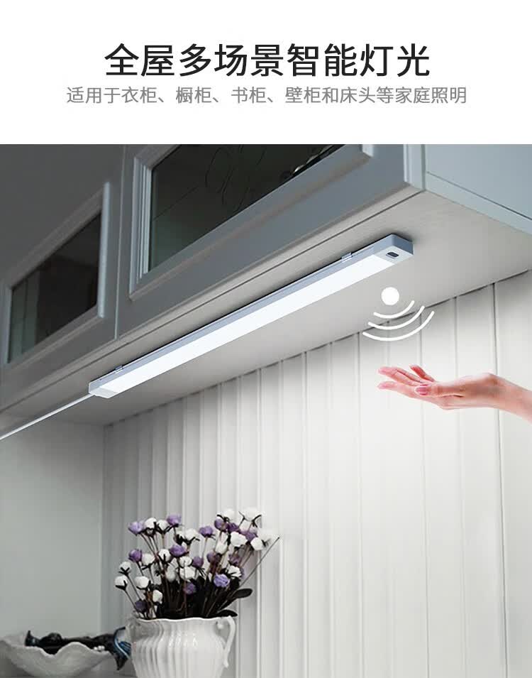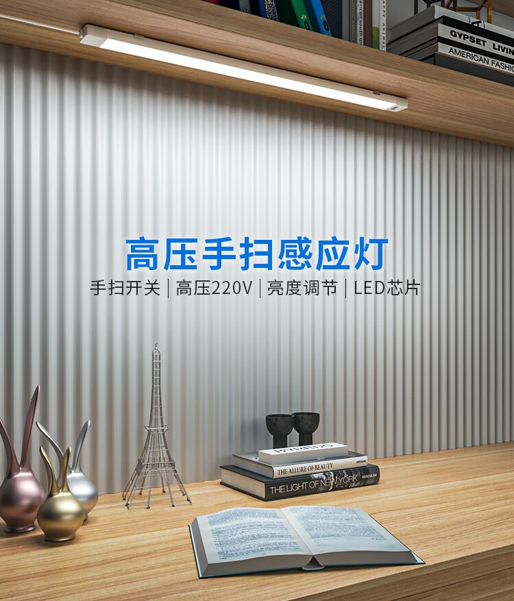 宝斯恩 插电式手扫感应橱房灯 厨柜灯切菜灯条高显指90+可接220V电线 长度0.8m 五档色温(2700-6500k)