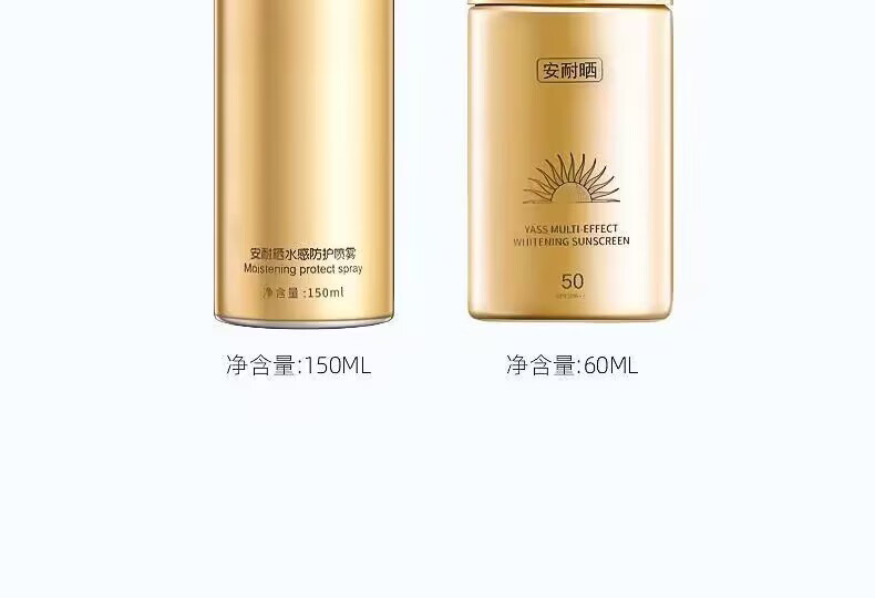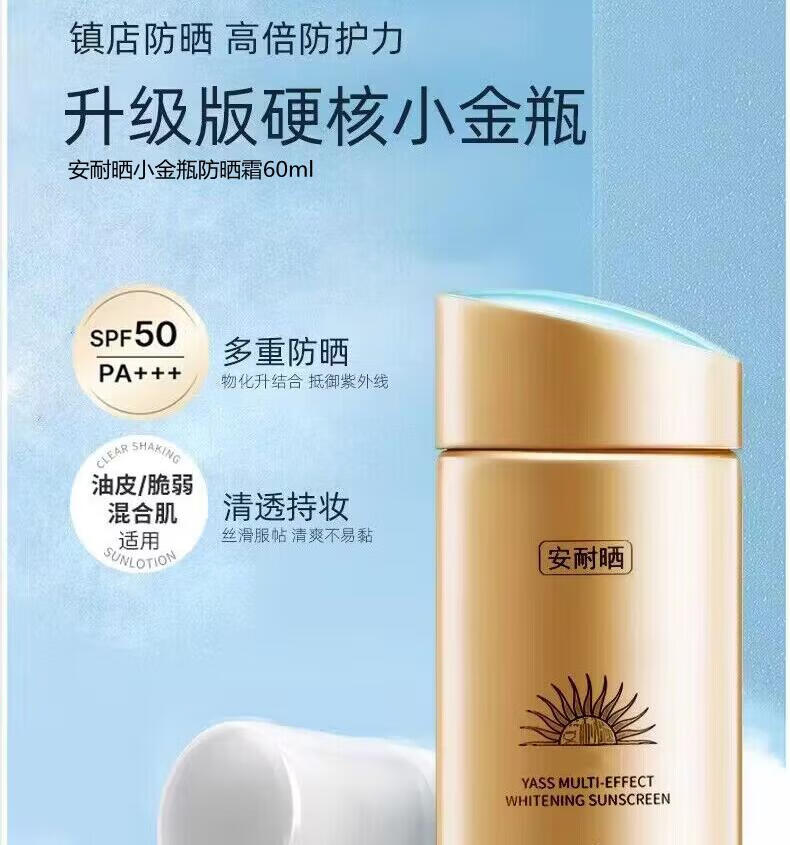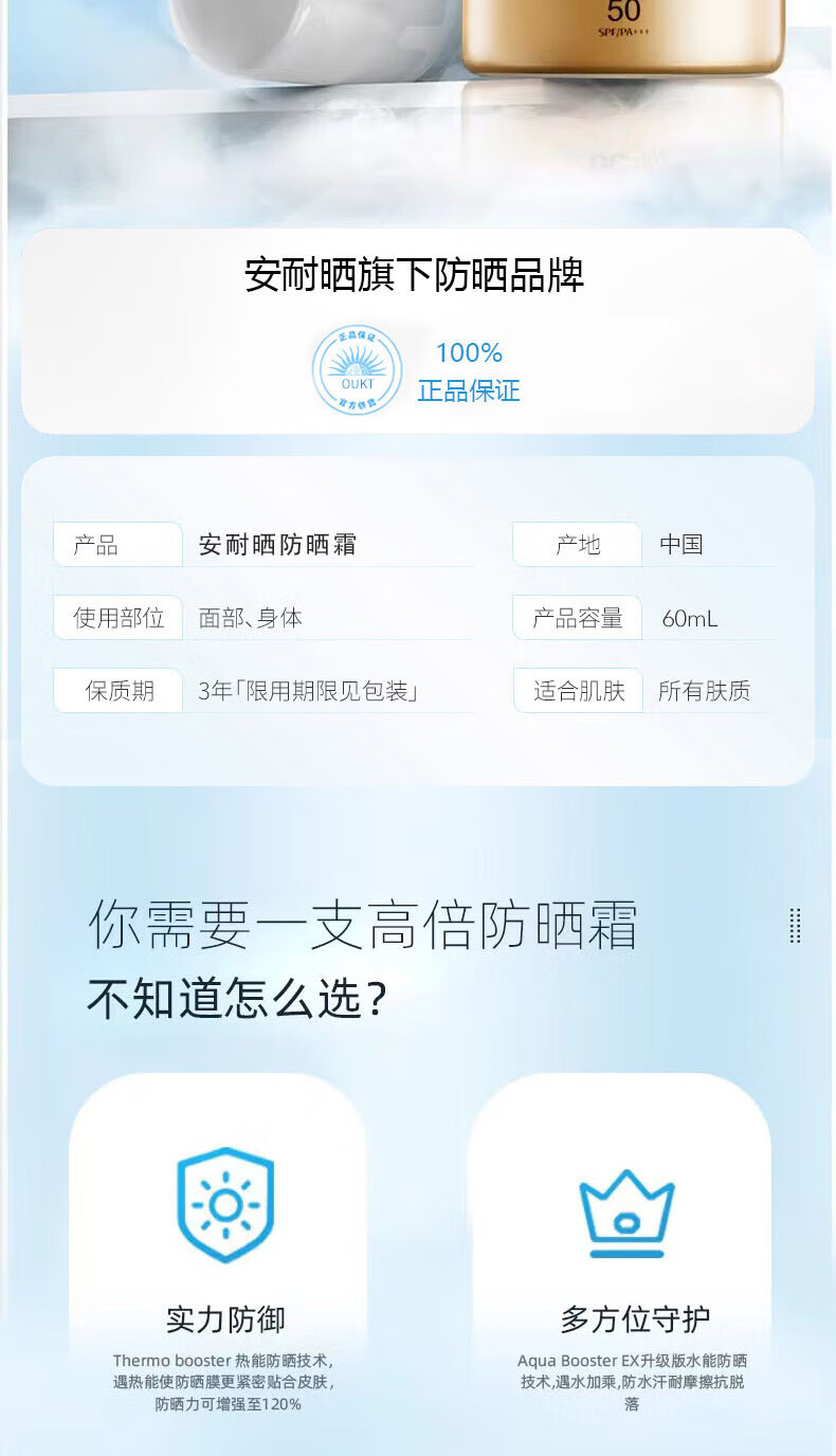 安耐晒安耐晒防晒霜SPF50国版防晒小金瓶男女学生军训户外防水防汗儿童 防晒霜60ml赠水感喷雾150ml