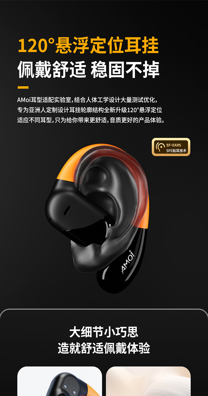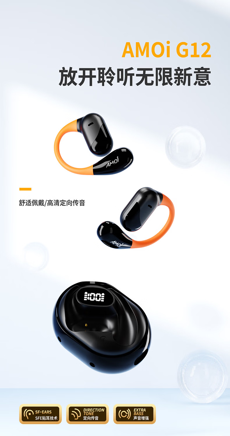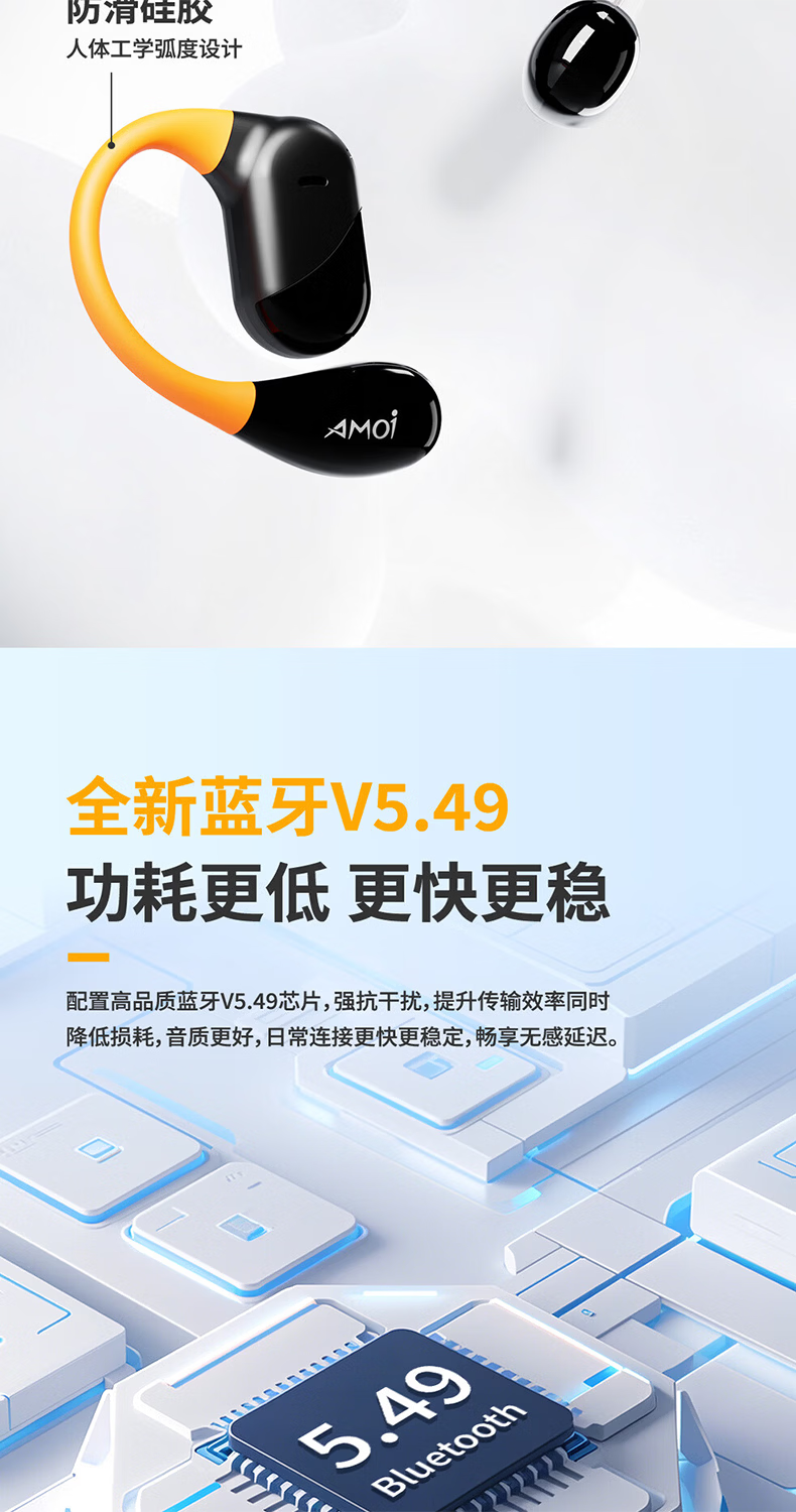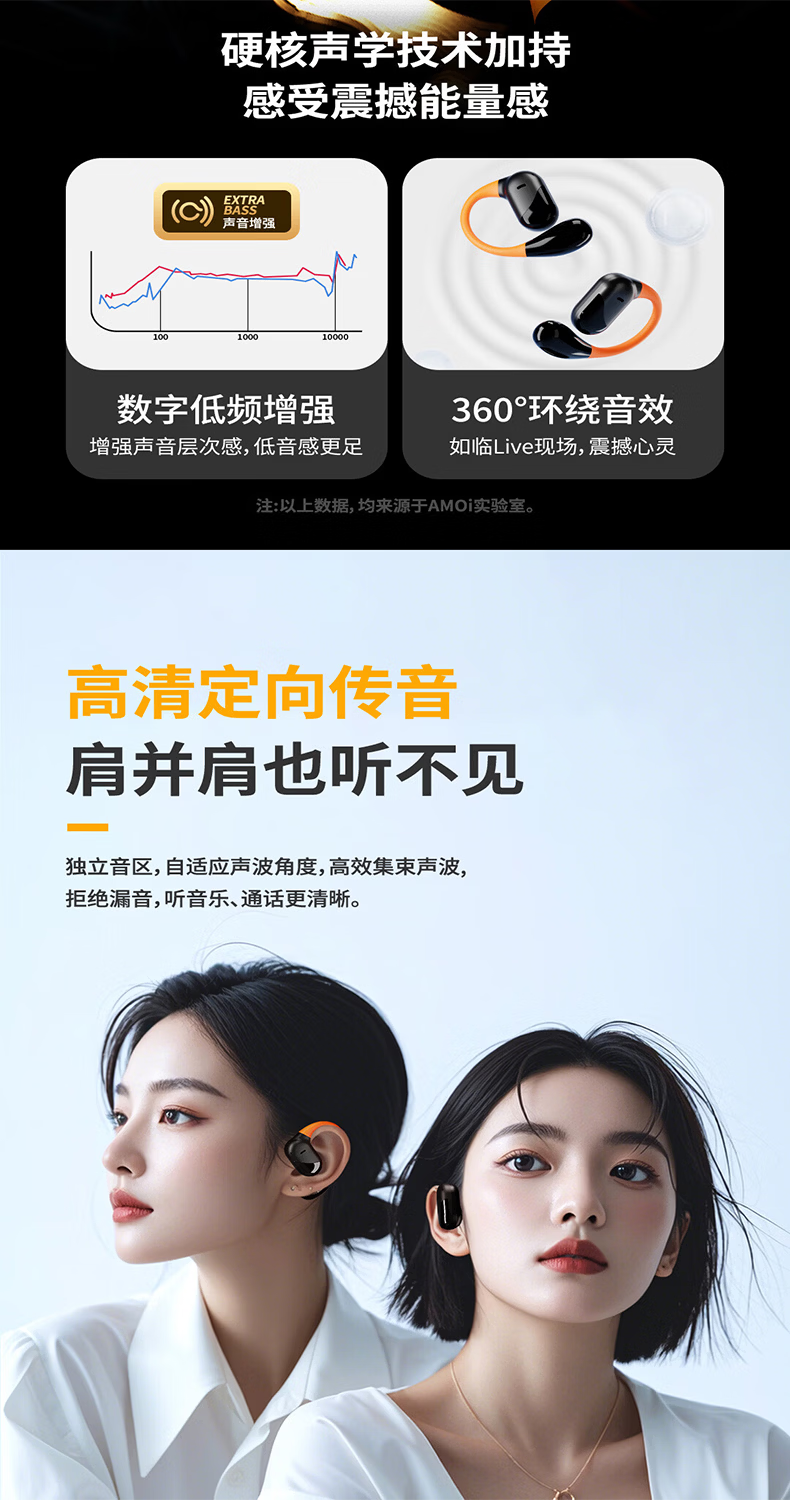 夏新柏林之声挂耳式无线运动耳机蓝牙5.49降噪HiFi环绕音开放式不入耳防水跑步音乐游戏超长续航耳机 星耀黑中性版本【旗舰版】情人节礼物