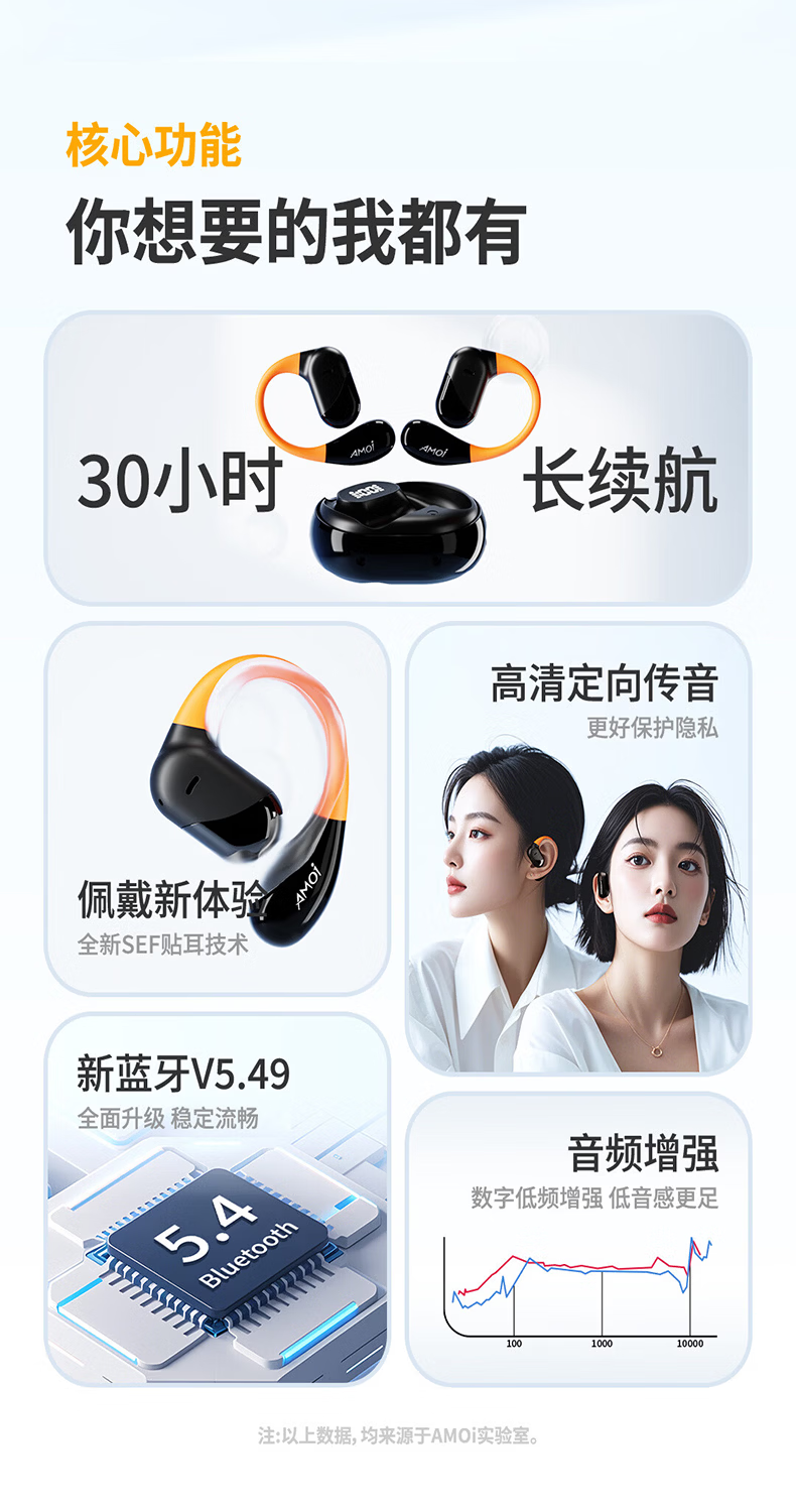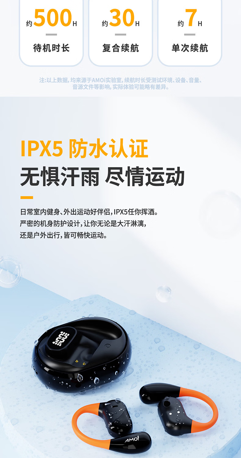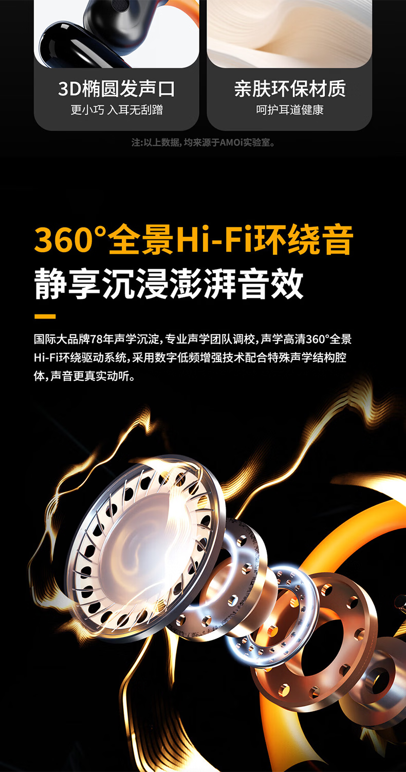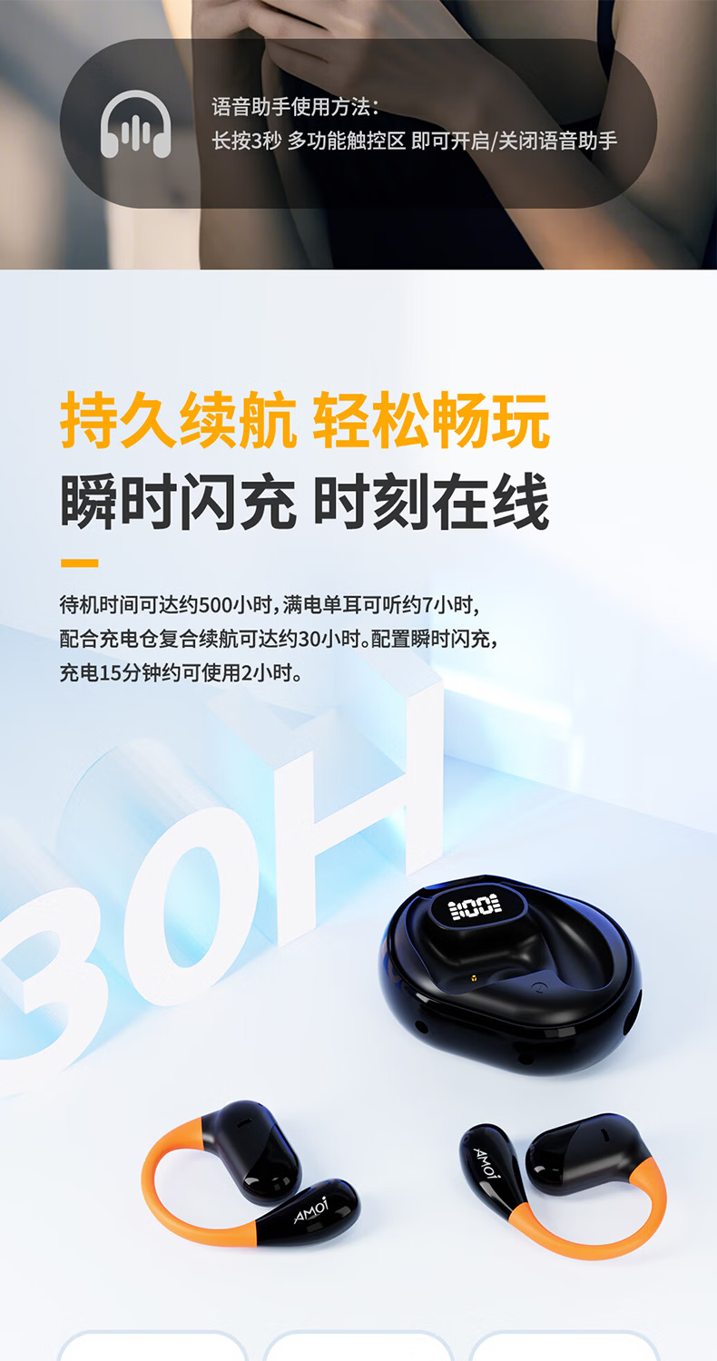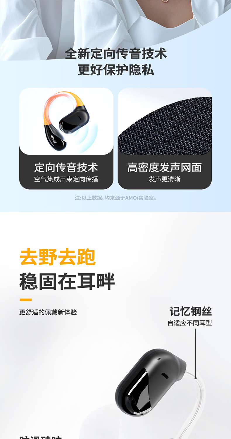 夏新柏林之声挂耳式无线运动耳机蓝牙5.49降噪HiFi环绕音开放式不入耳防水跑步音乐游戏超长续航耳机 星耀黑中性版本【旗舰版】情人节礼物
