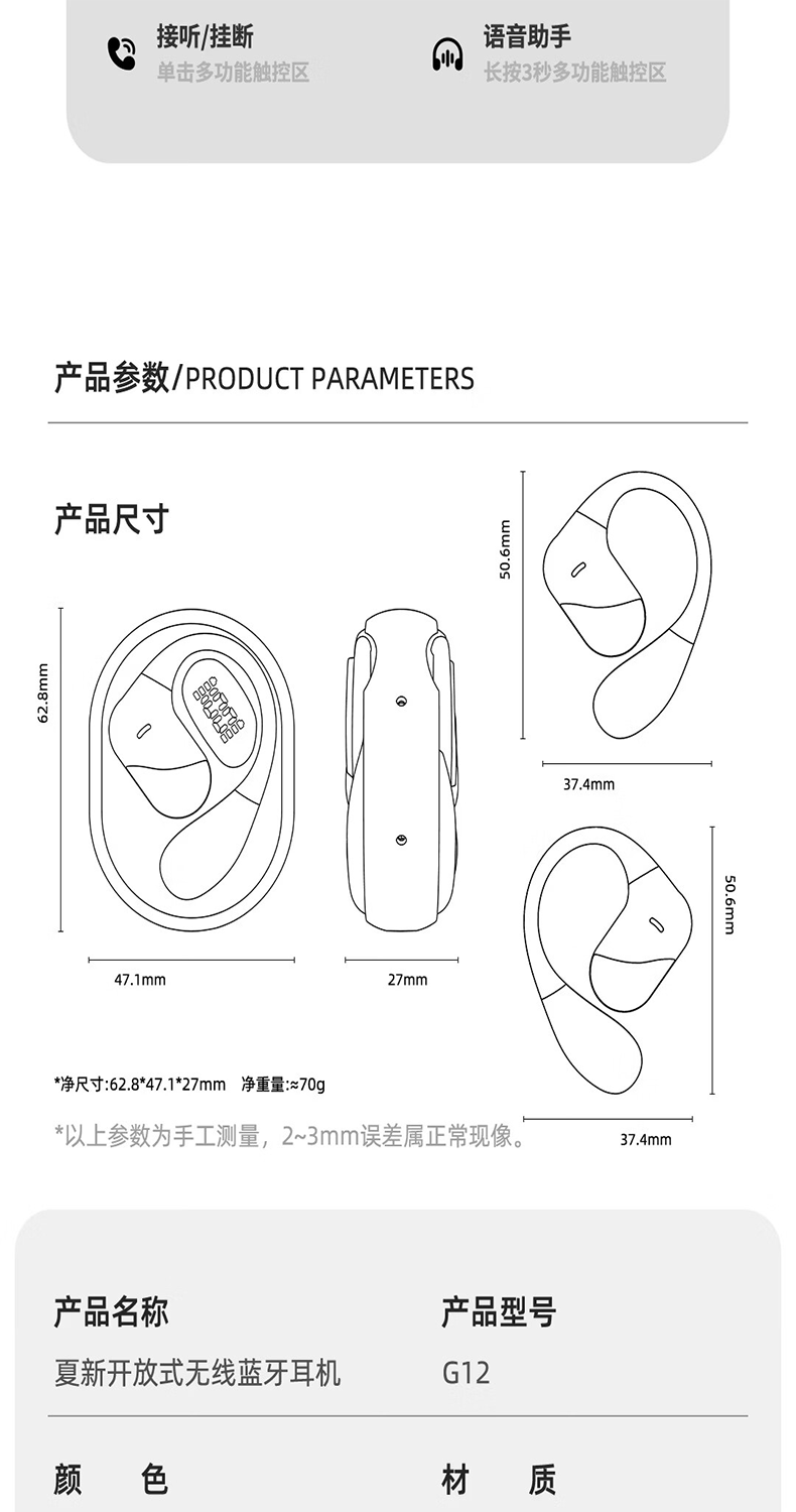 创维(Skyworth)【2025最新款丨哈曼卡顿级】D5蓝牙耳机挂耳式高音质运动耳机开放式不入耳超长续久戴不痛新年送礼