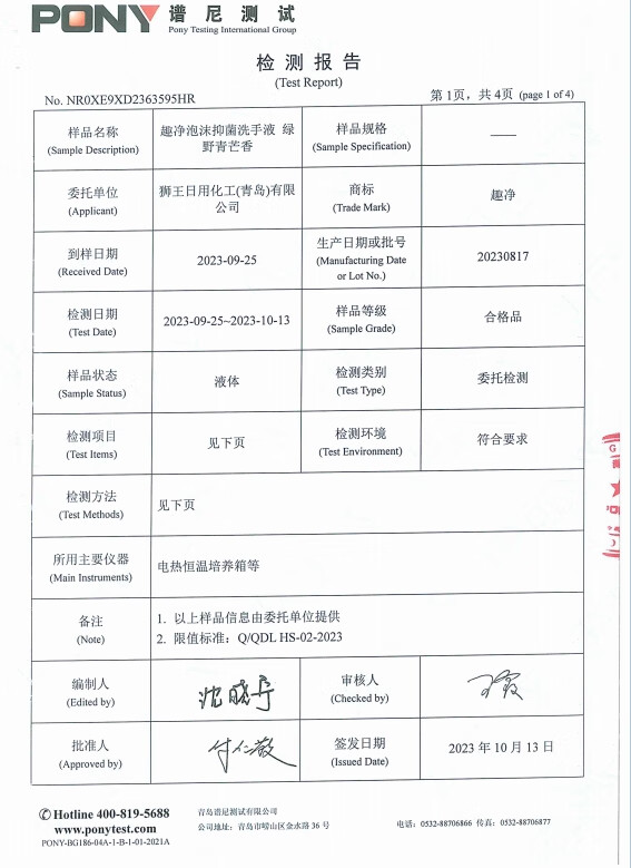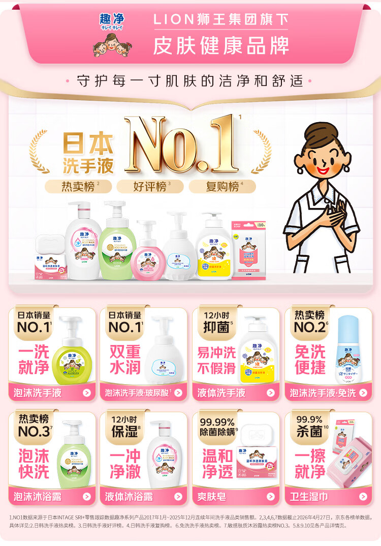 狮王(Lion)趣净泡沫抑菌泡沫洗手液绿野青芒香250ml+200ml*3绵密泡沫温和
