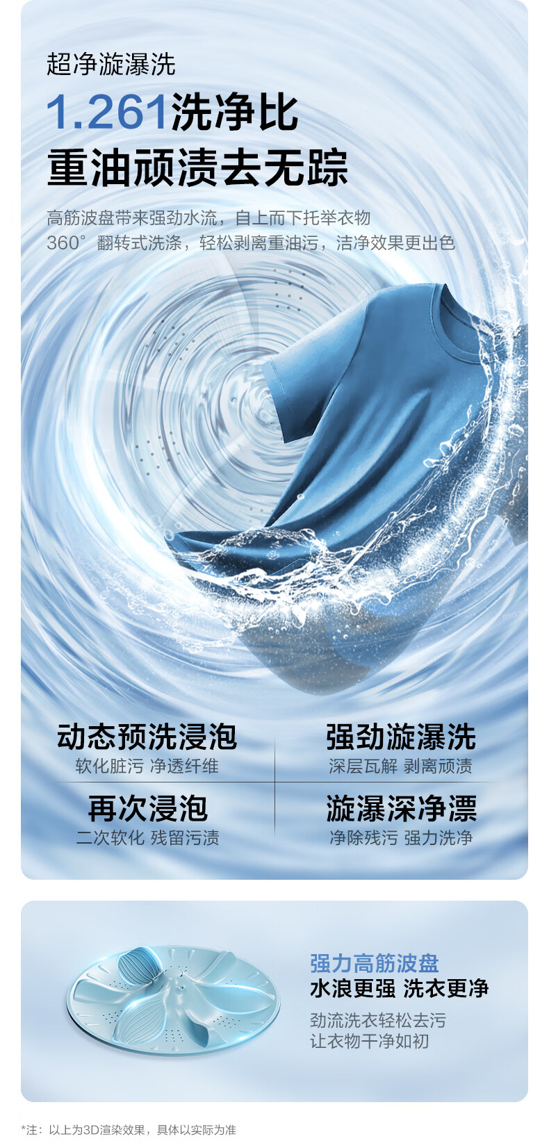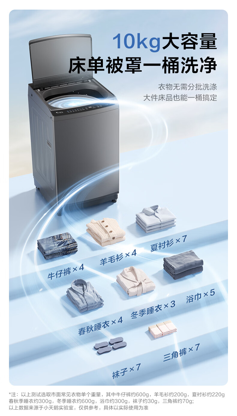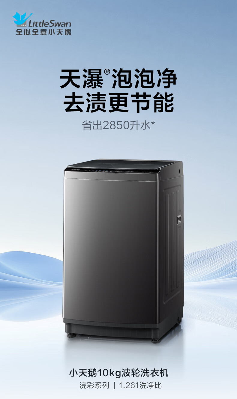 小天鹅(LittleSwan)波轮洗衣机全自动家用10公斤 宿舍租房神器智能预约一键智洗 一级能效家电折扣补贴 TB10V27T 波轮