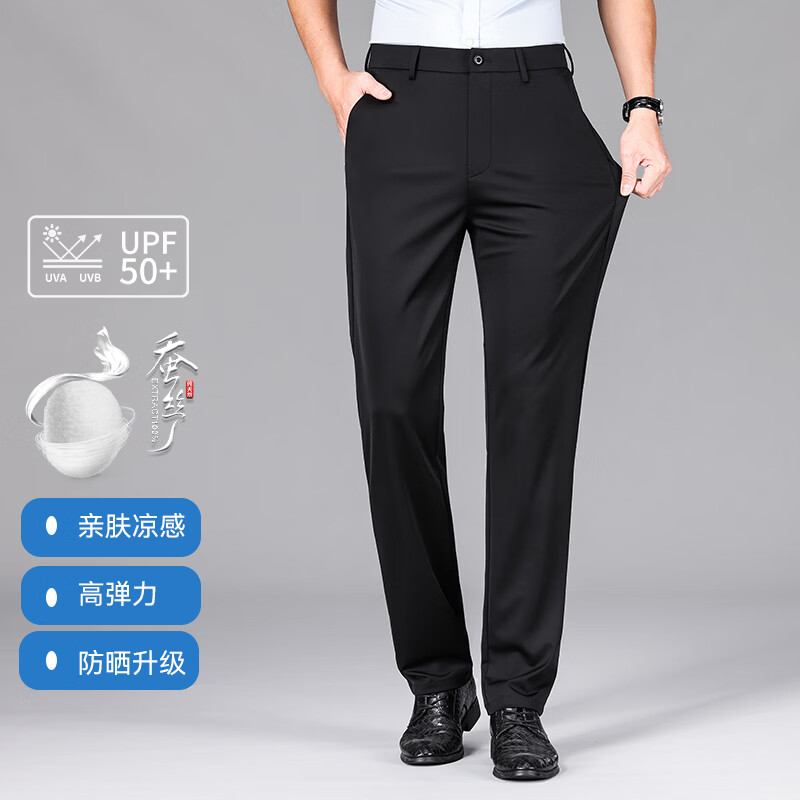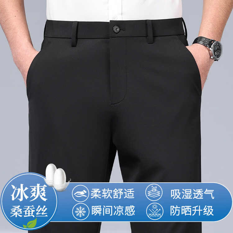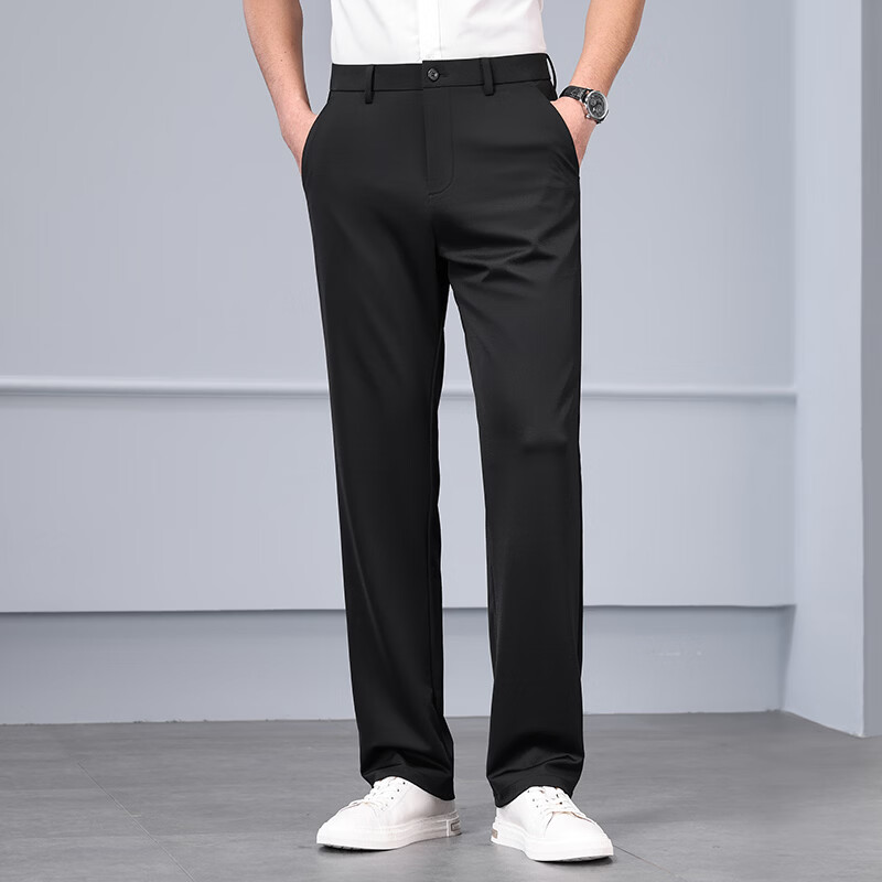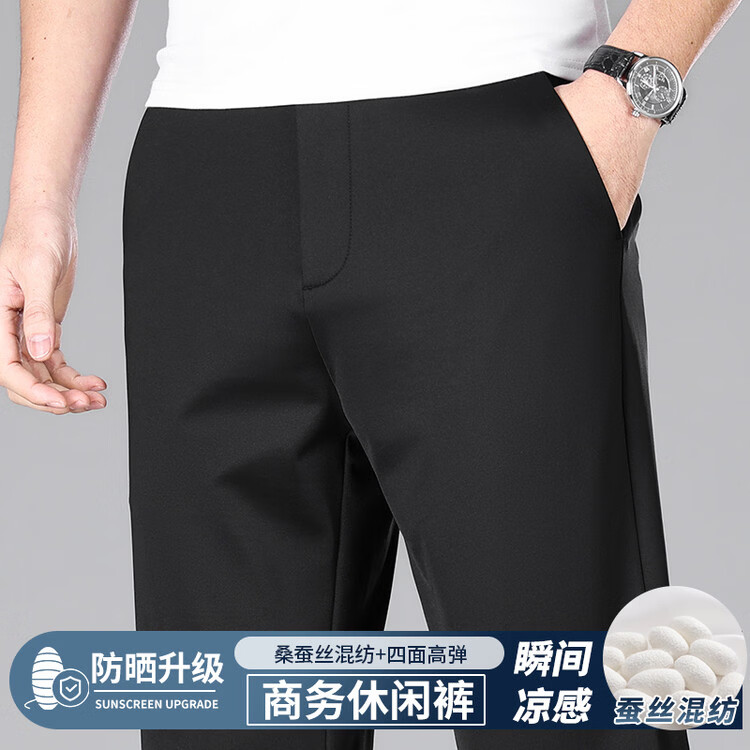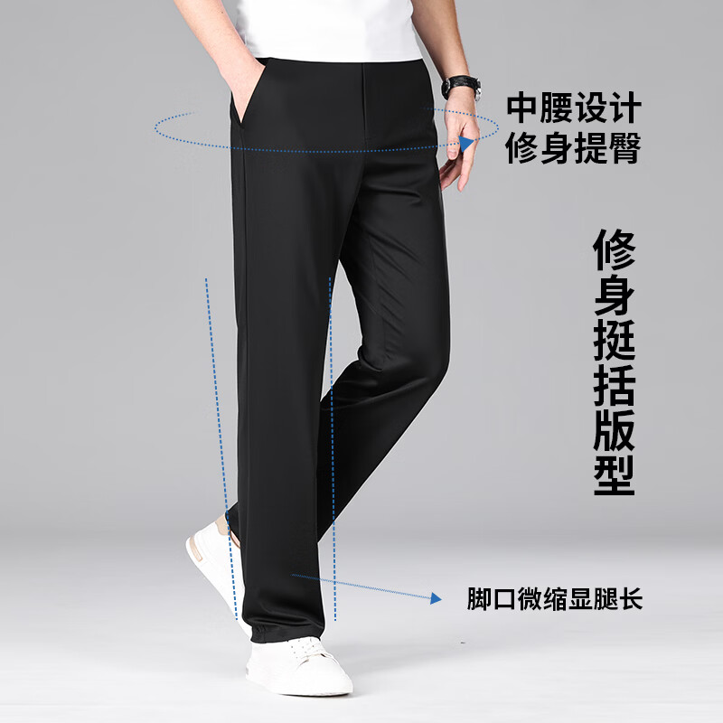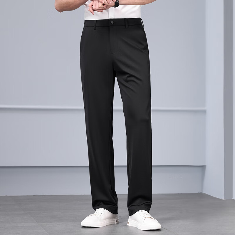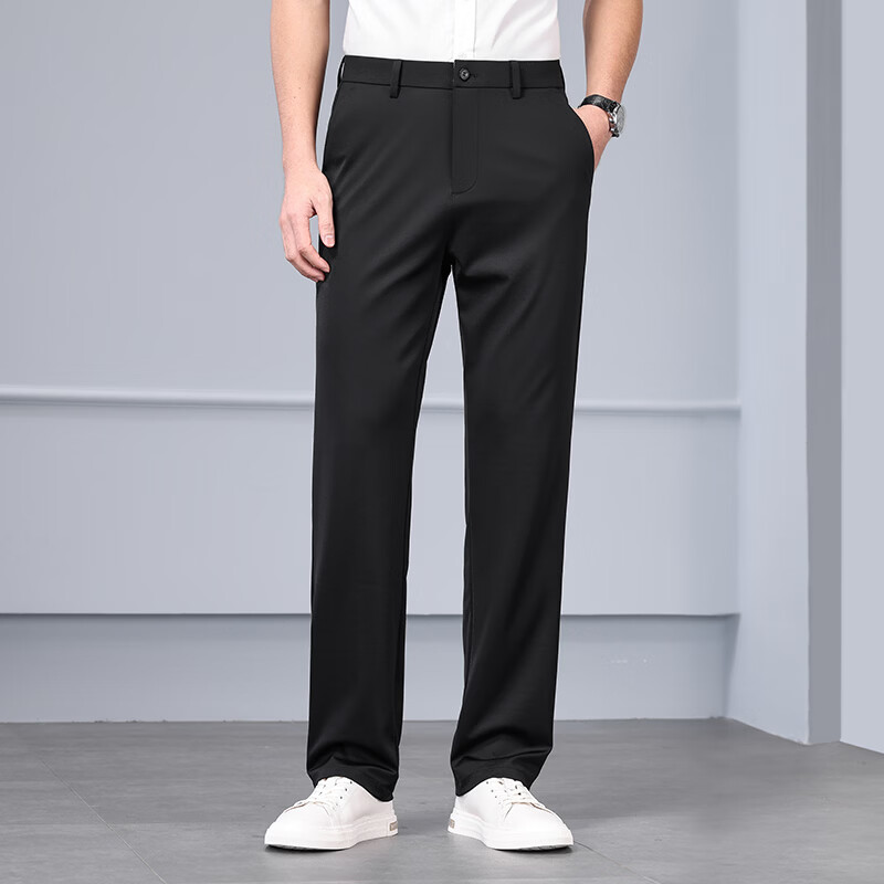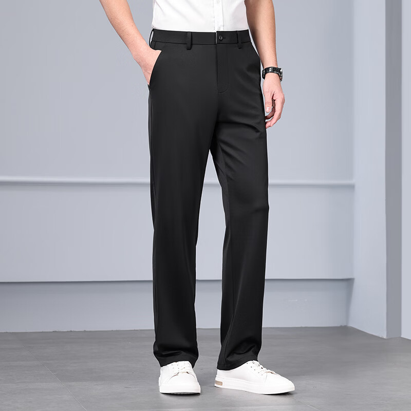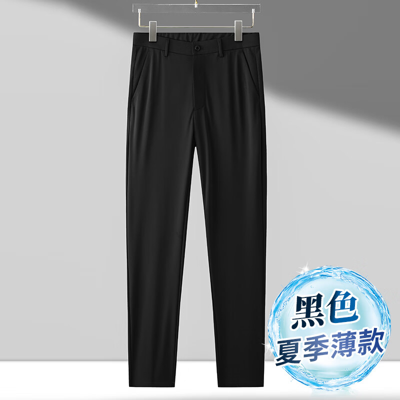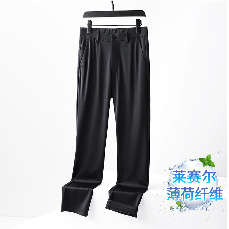九牧王(JOEONE)2026年春夏新款男士高弹冰丝商务休闲西裤舒适透气百搭长裤 黑色 40
