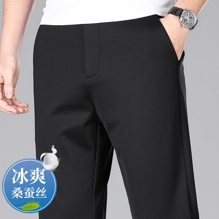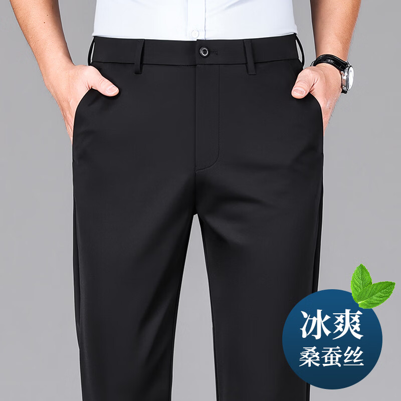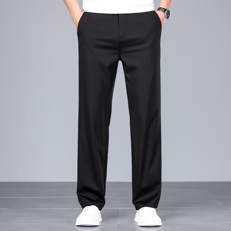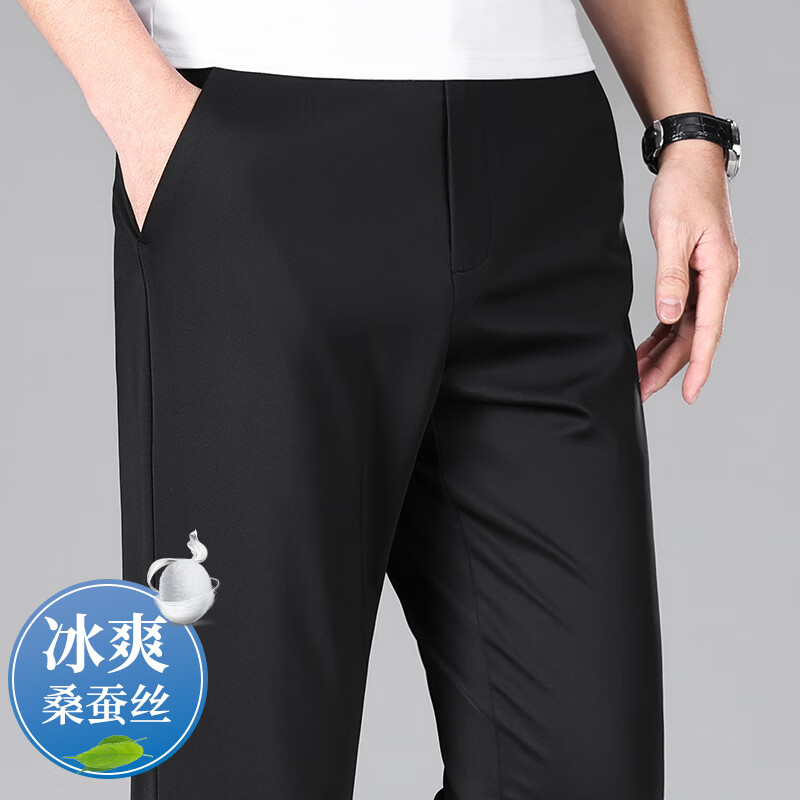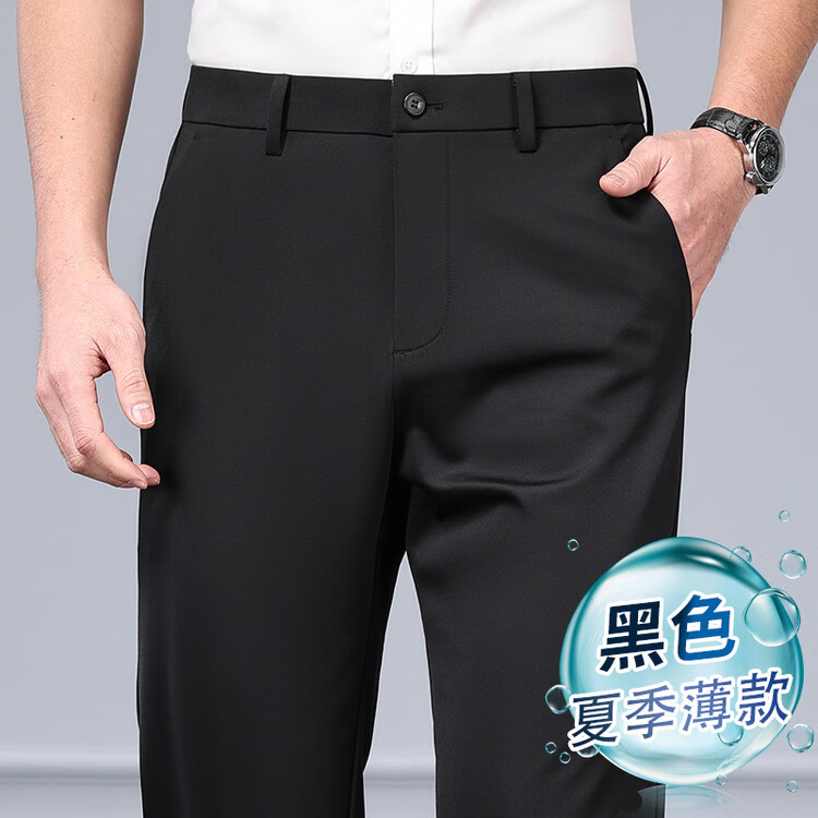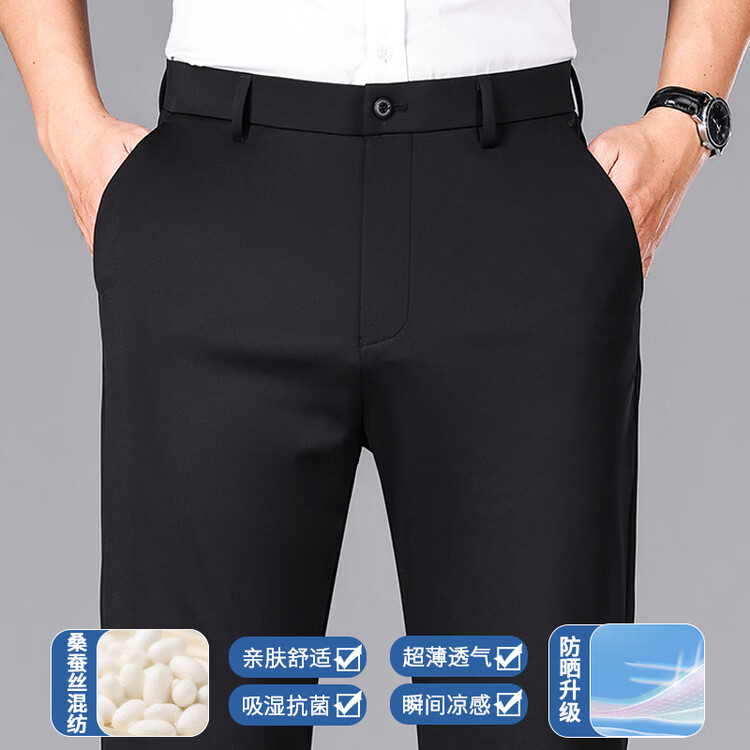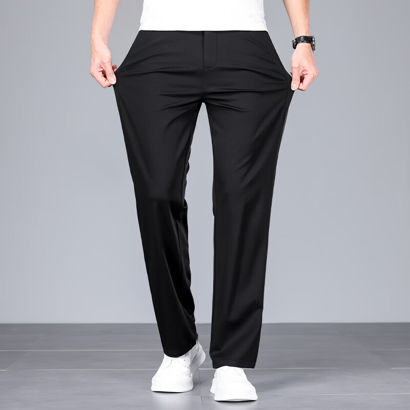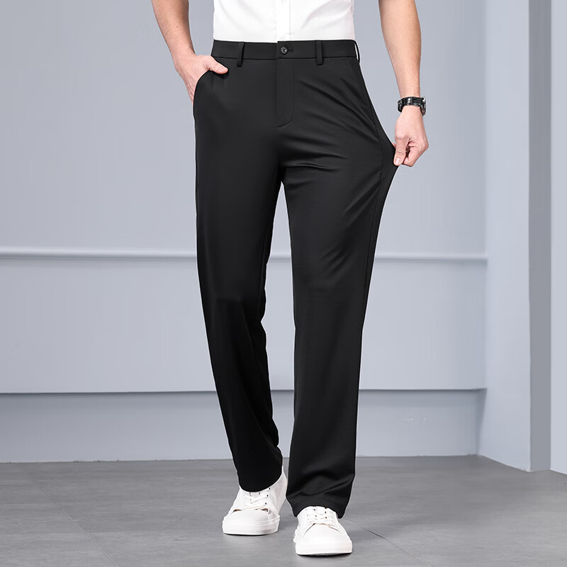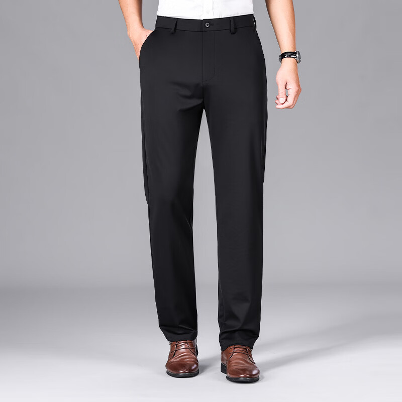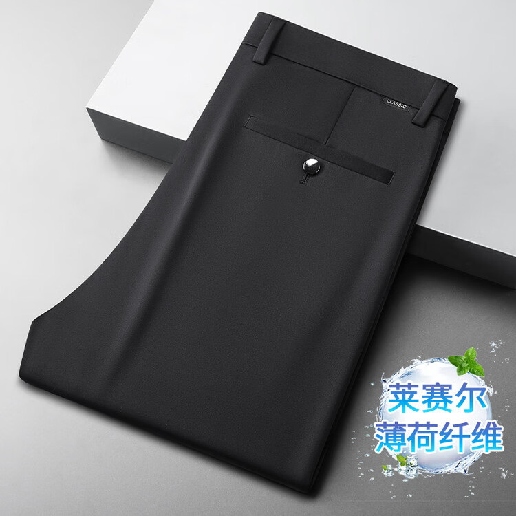 九牧王(JOEONE)2026年春夏新款男士高弹冰丝商务休闲西裤舒适透气百搭长裤 黑色 40