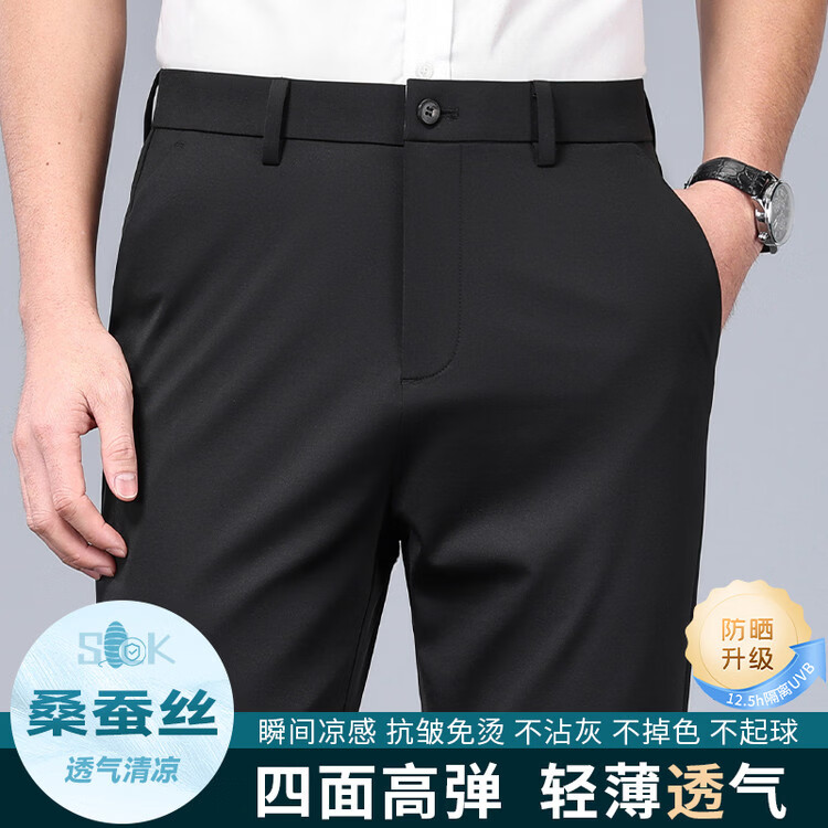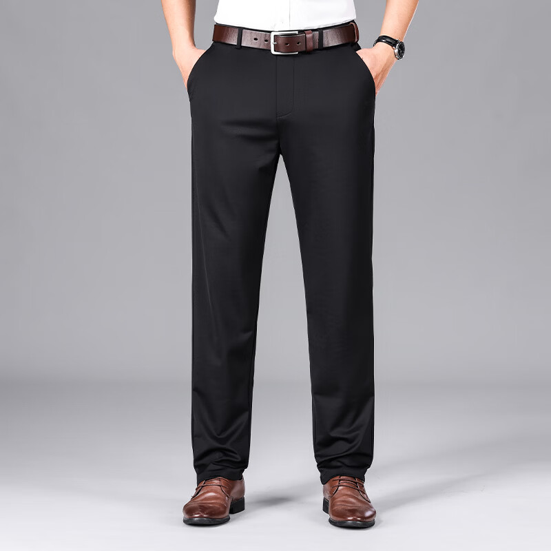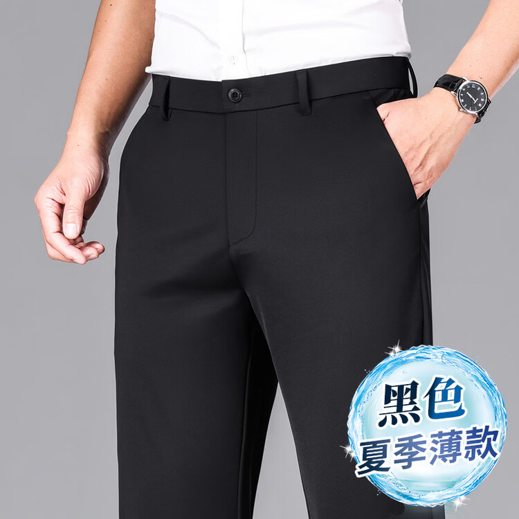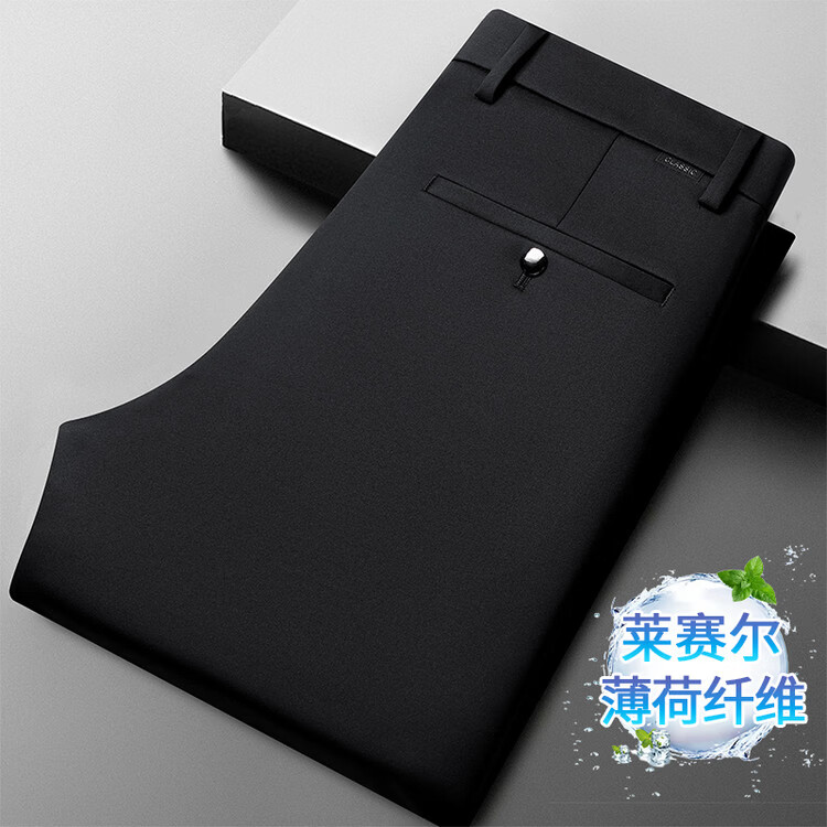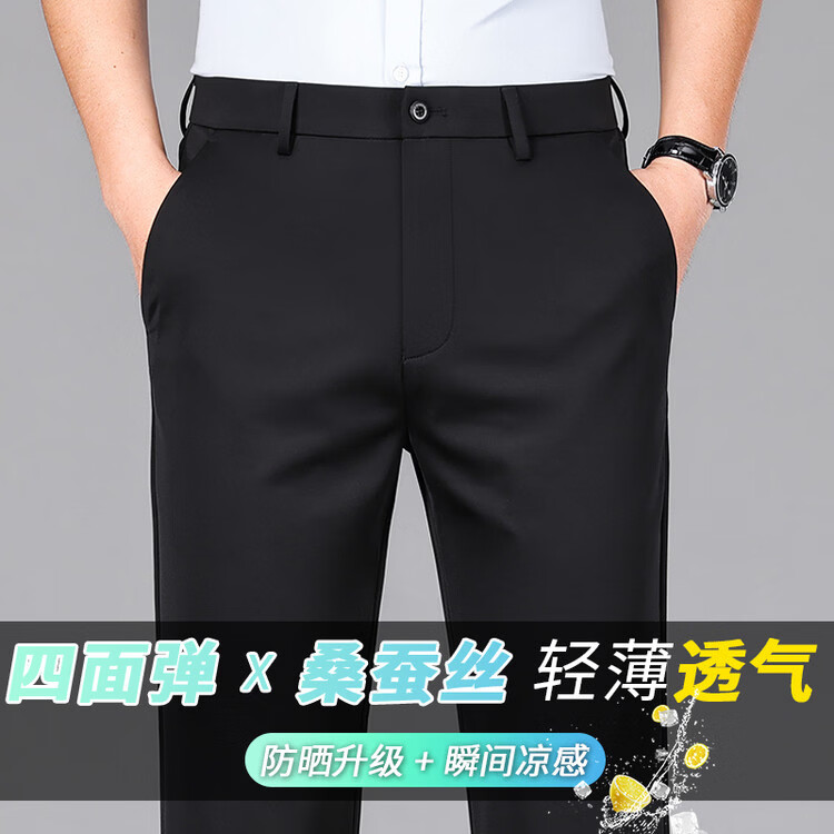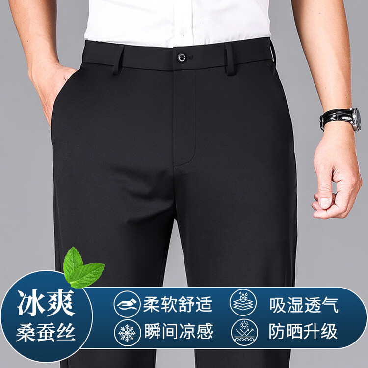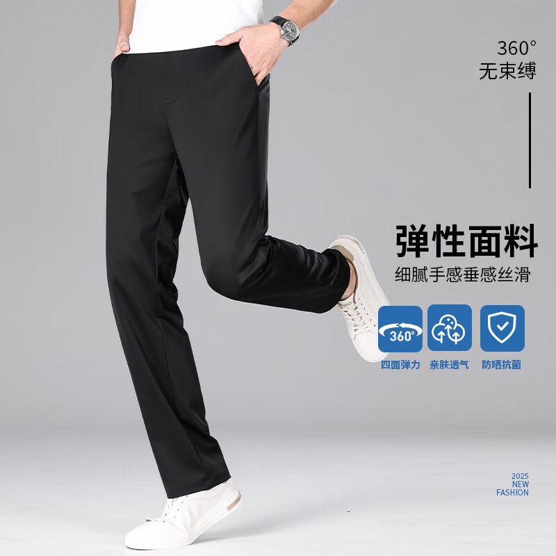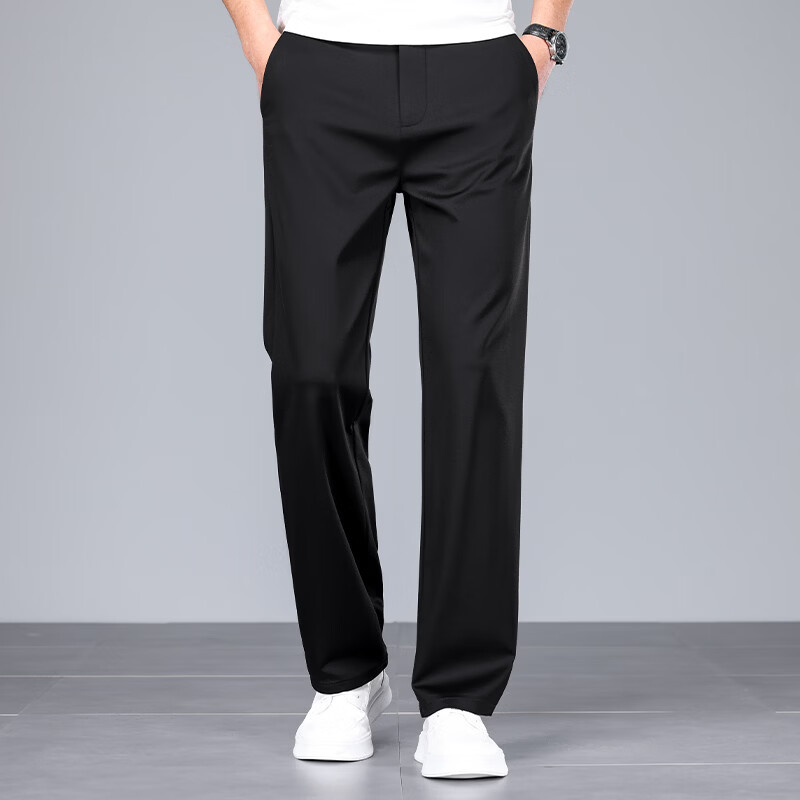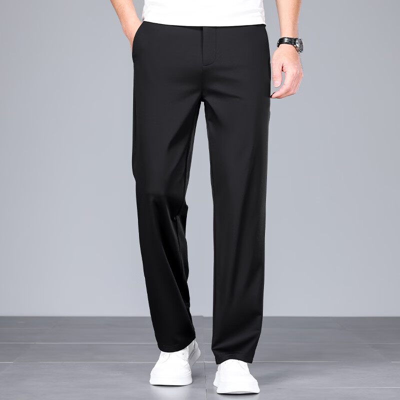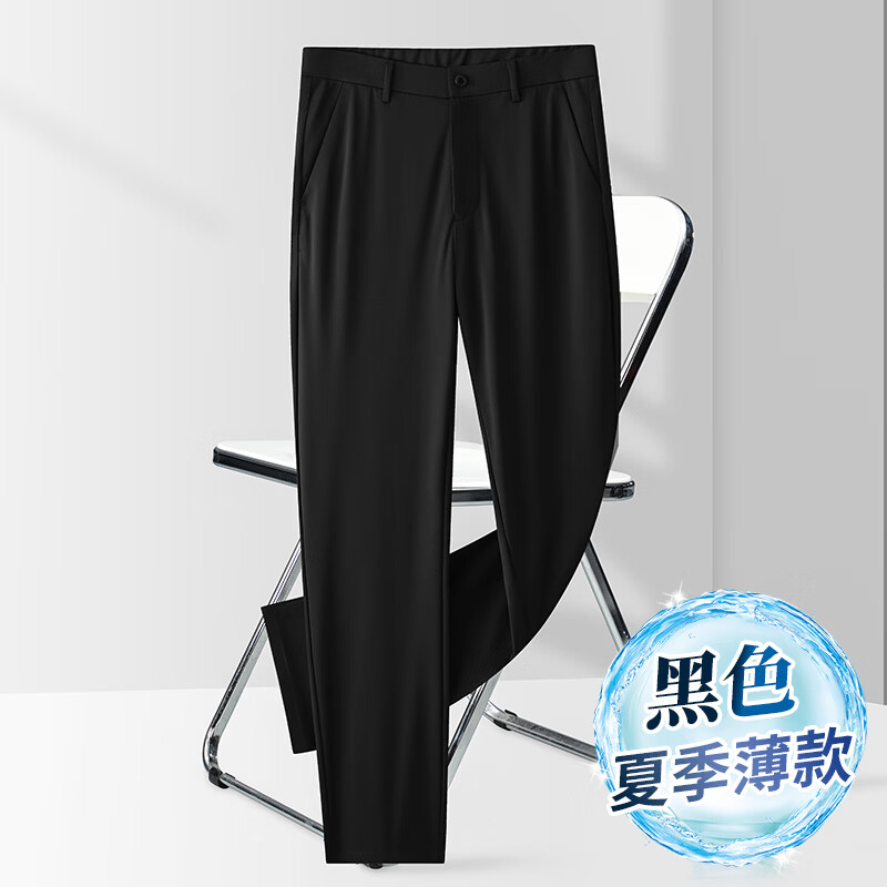 九牧王(JOEONE)2026年春夏新款男士高弹冰丝商务休闲西裤舒适透气百搭长裤 黑色 40