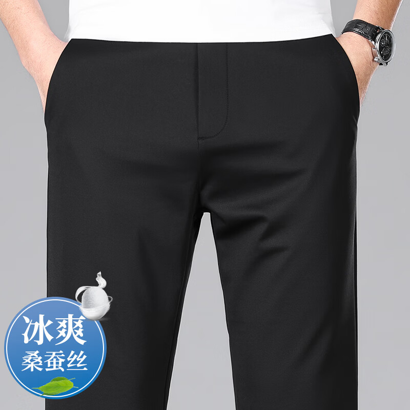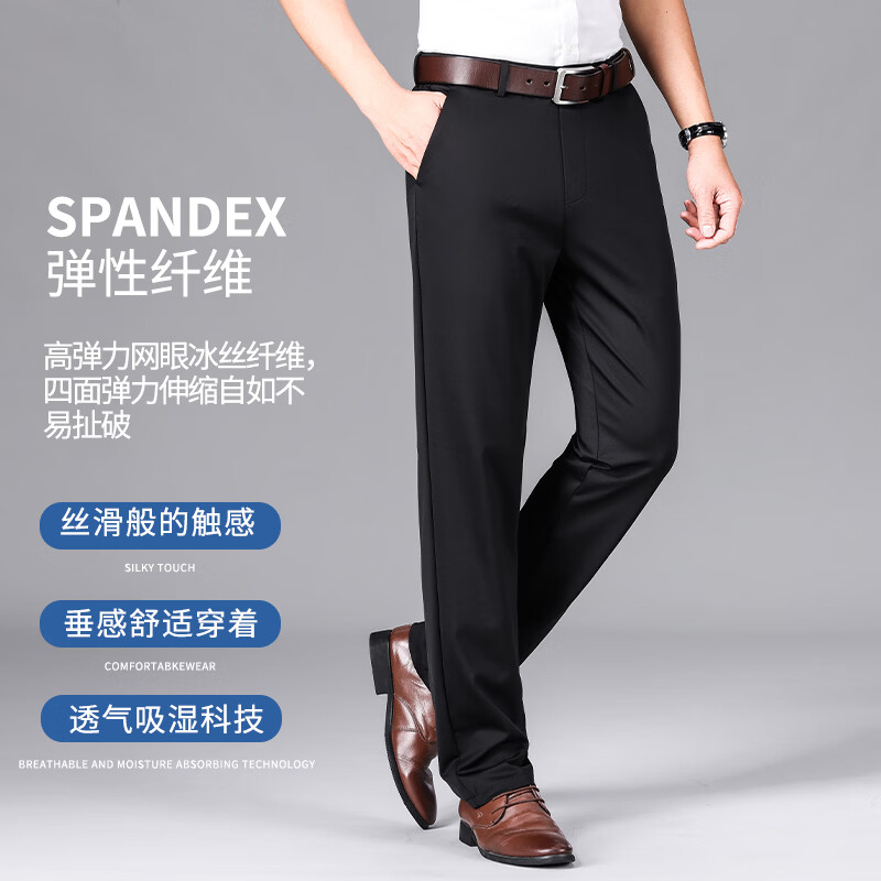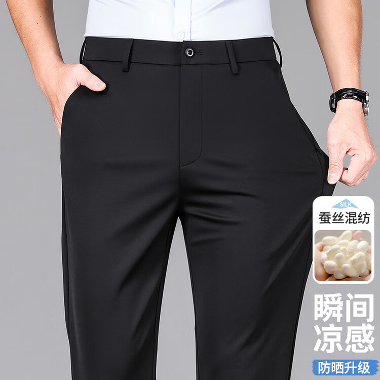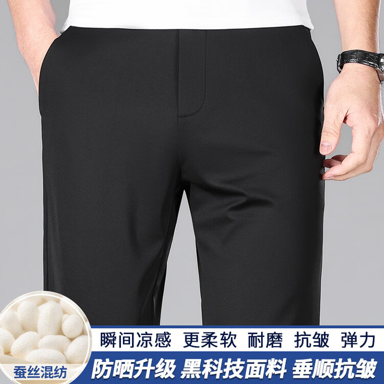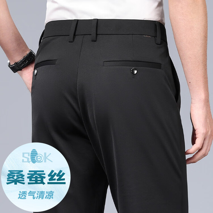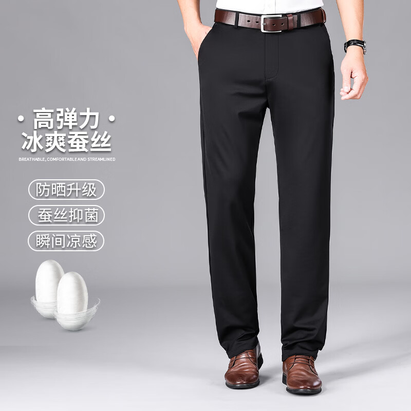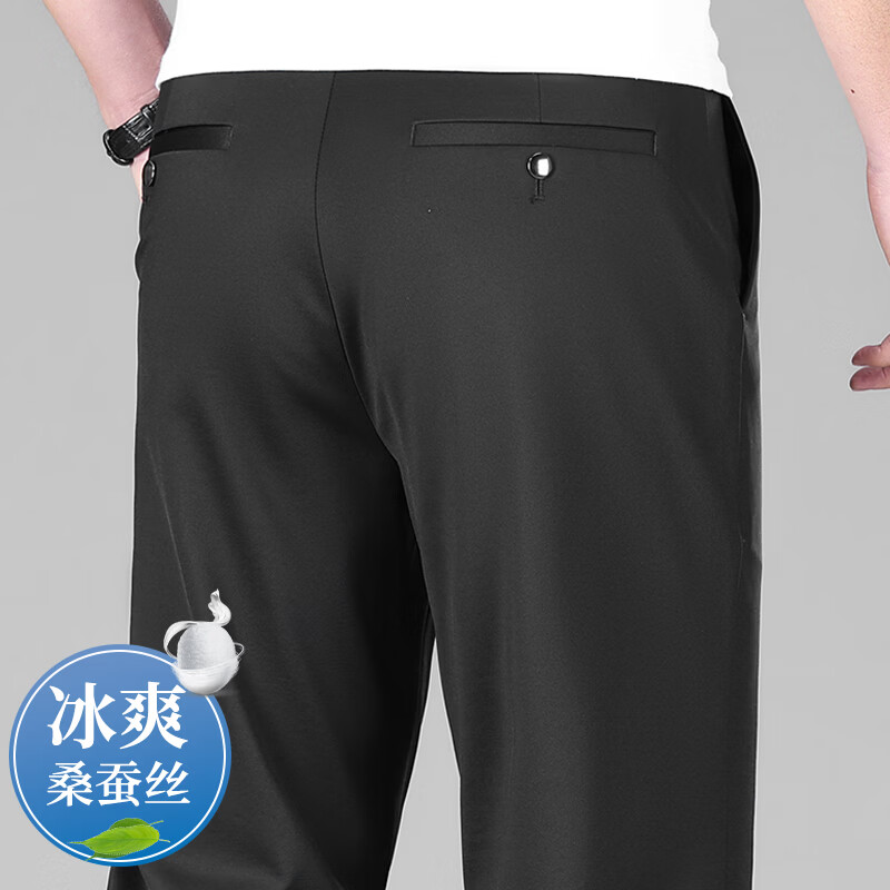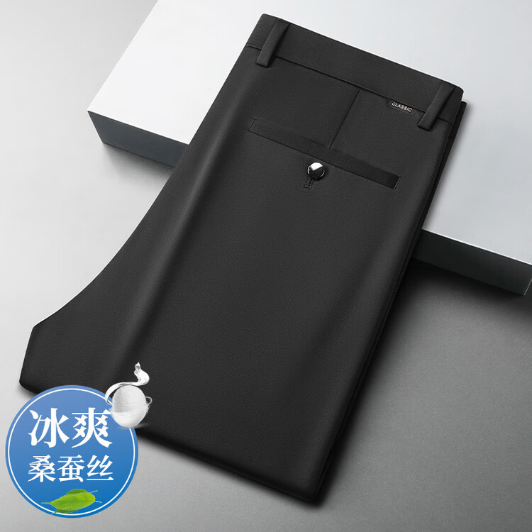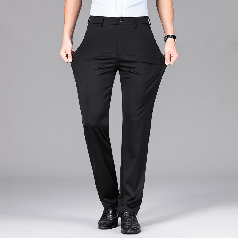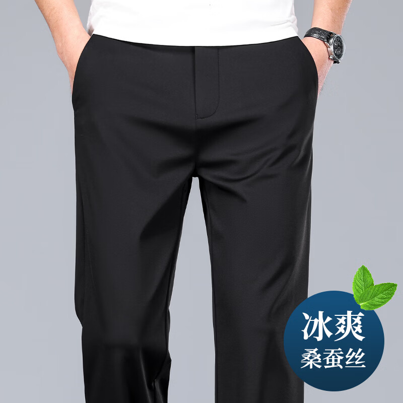 九牧王(JOEONE)2026年春夏新款男士高弹冰丝商务休闲西裤舒适透气百搭长裤 黑色 40