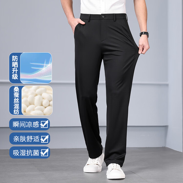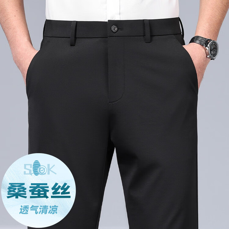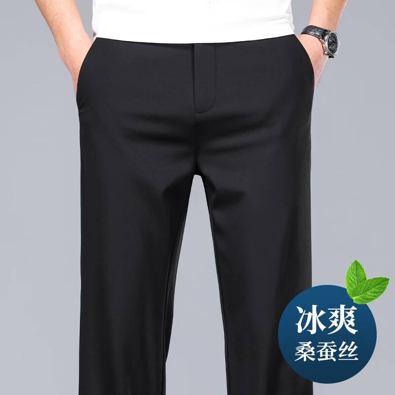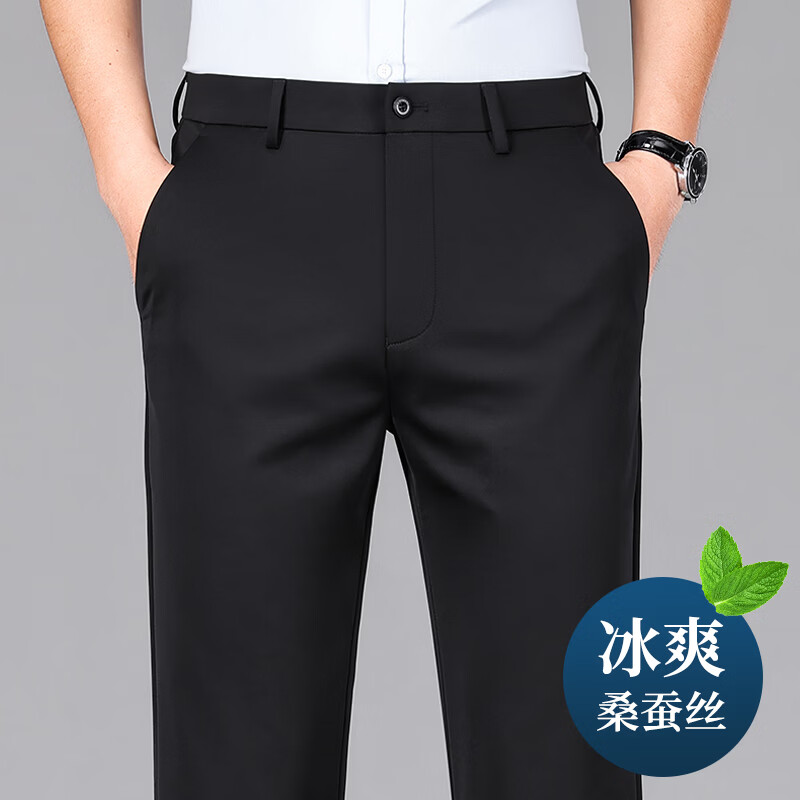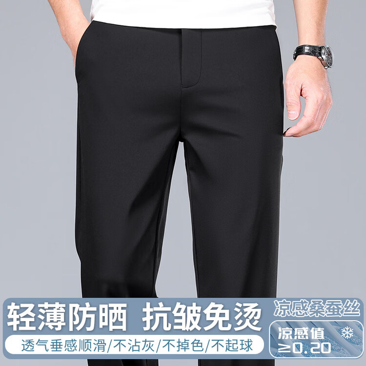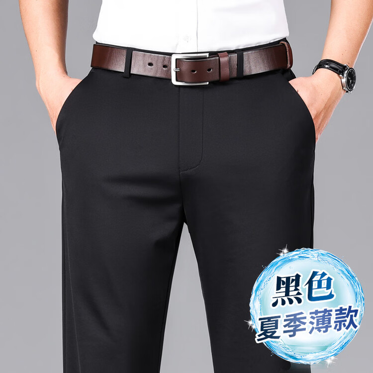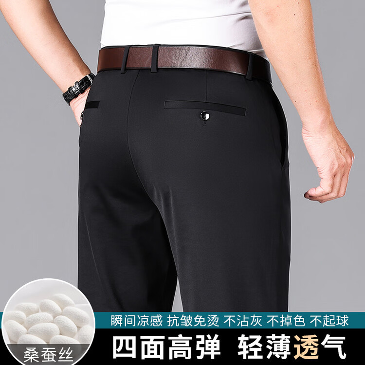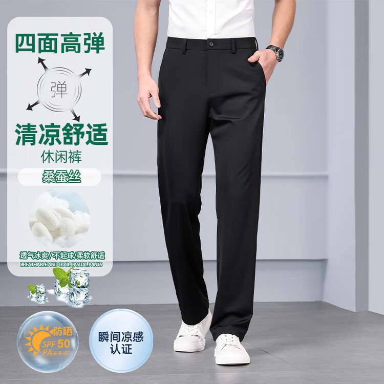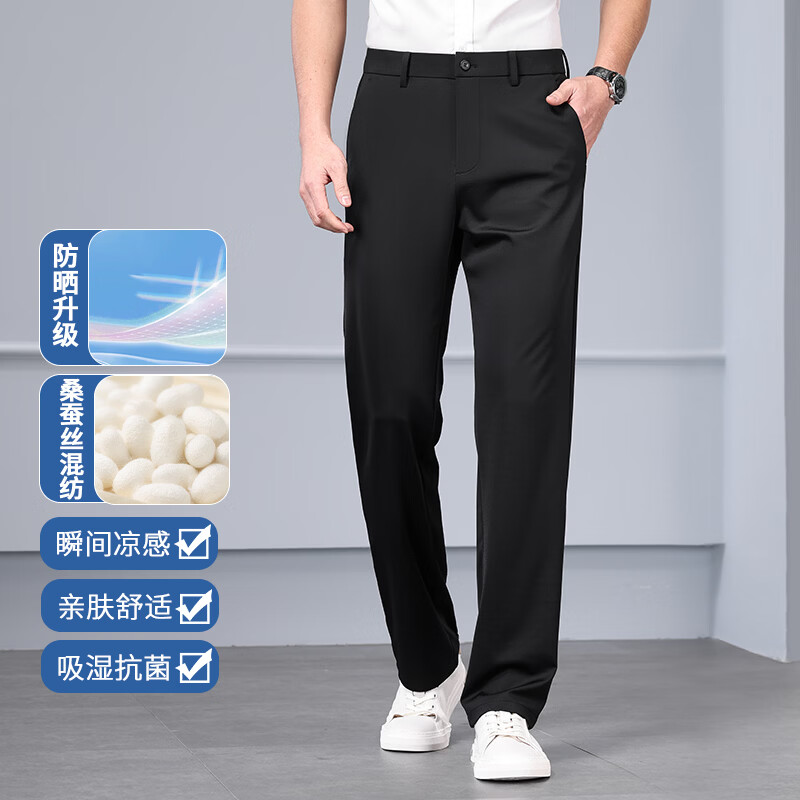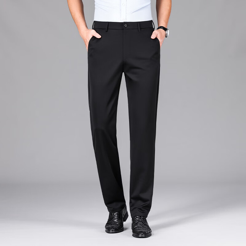 九牧王(JOEONE)2026年春夏新款男士高弹冰丝商务休闲西裤舒适透气百搭长裤 黑色 40