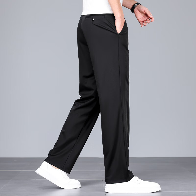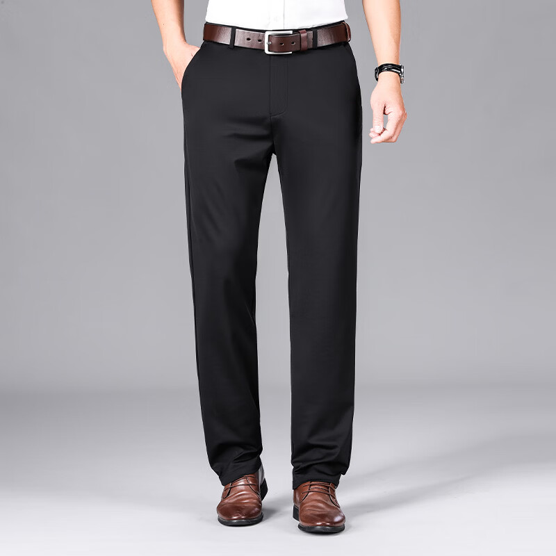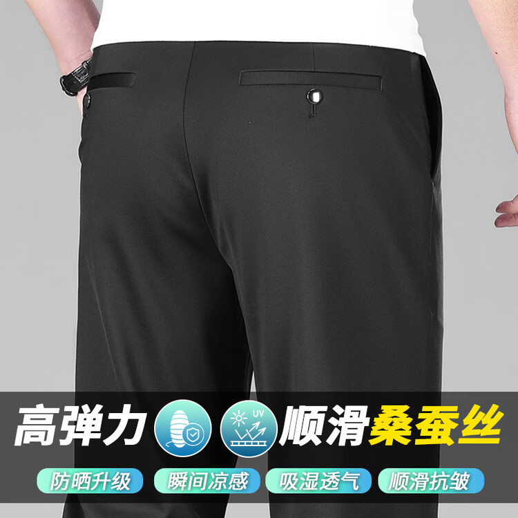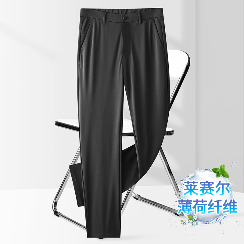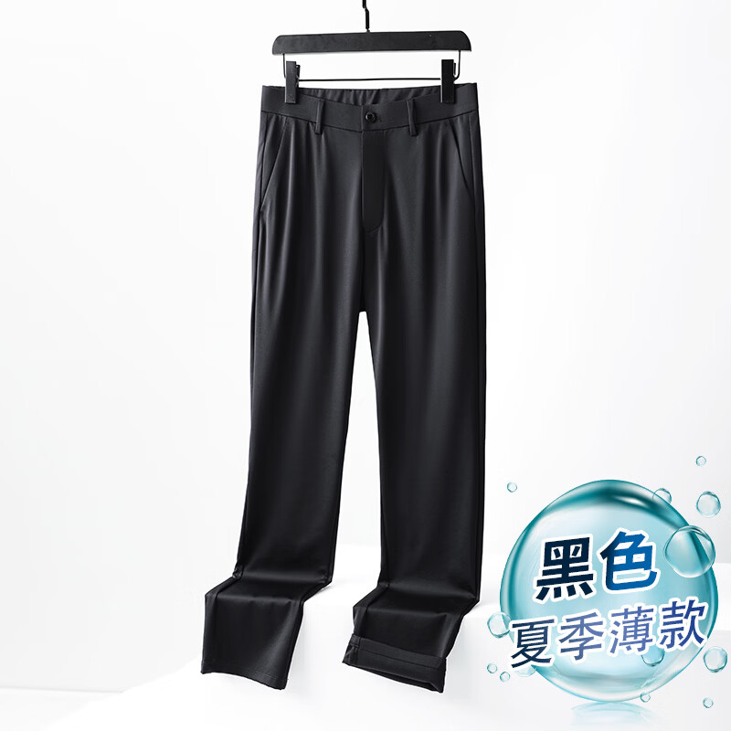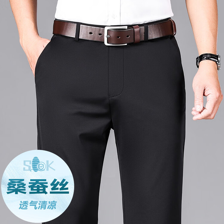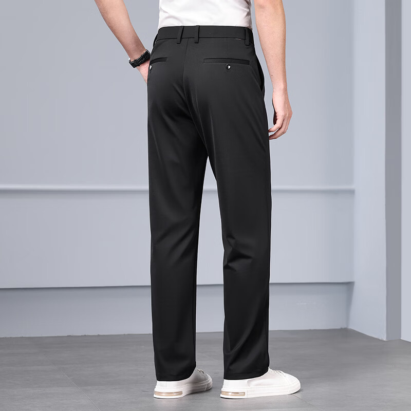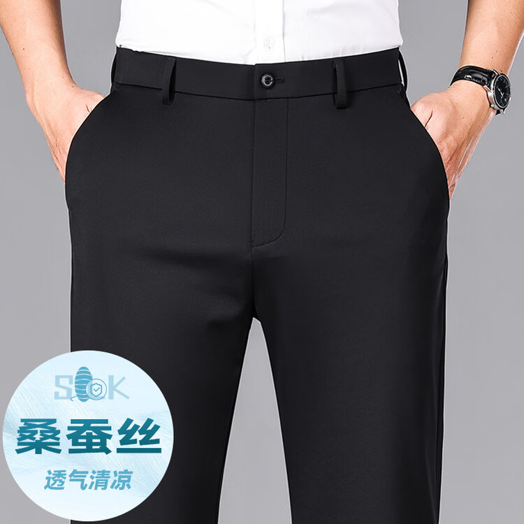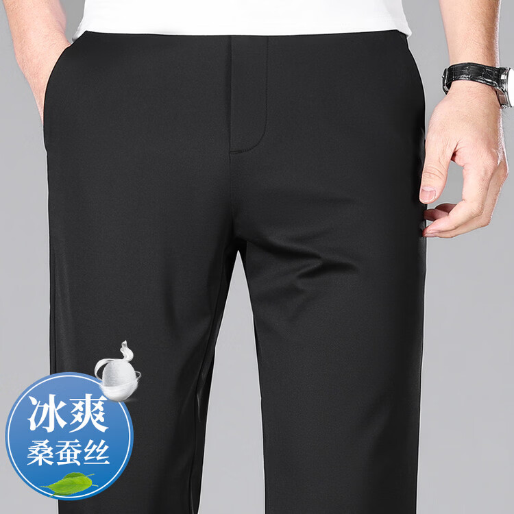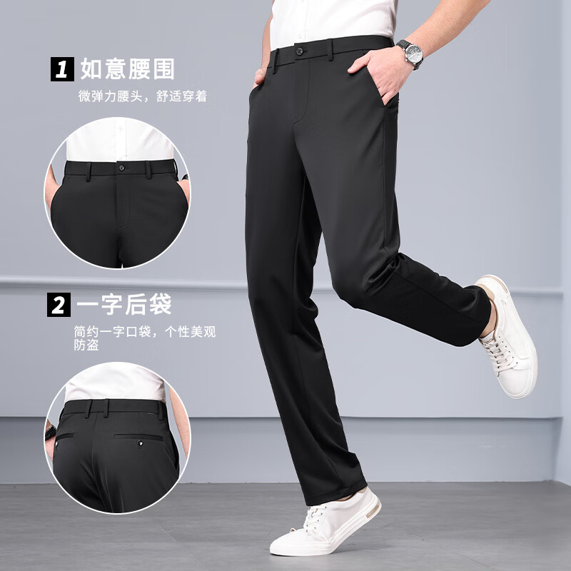 九牧王(JOEONE)2026年春夏新款男士高弹冰丝商务休闲西裤舒适透气百搭长裤 黑色 40