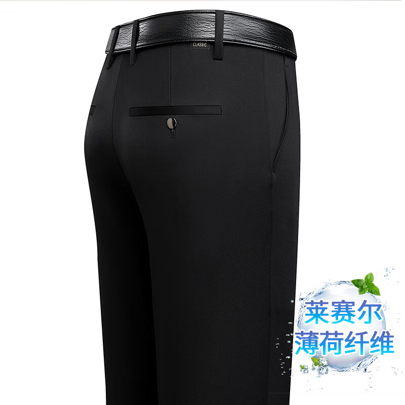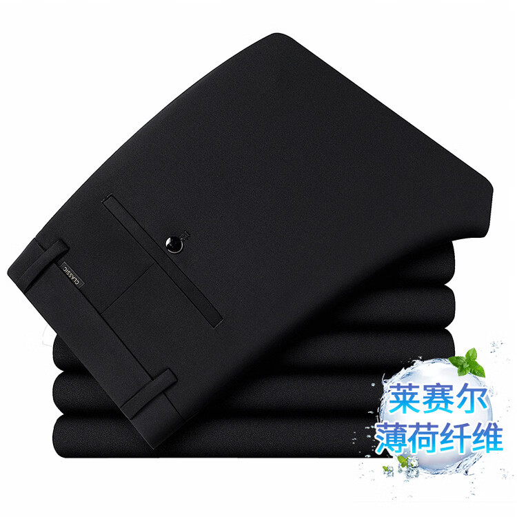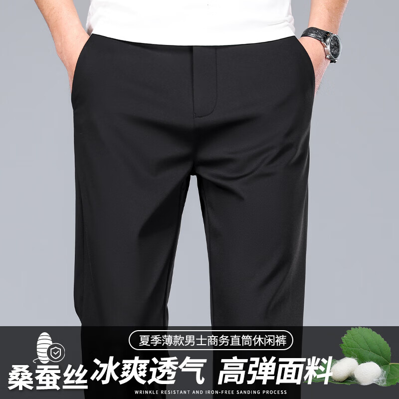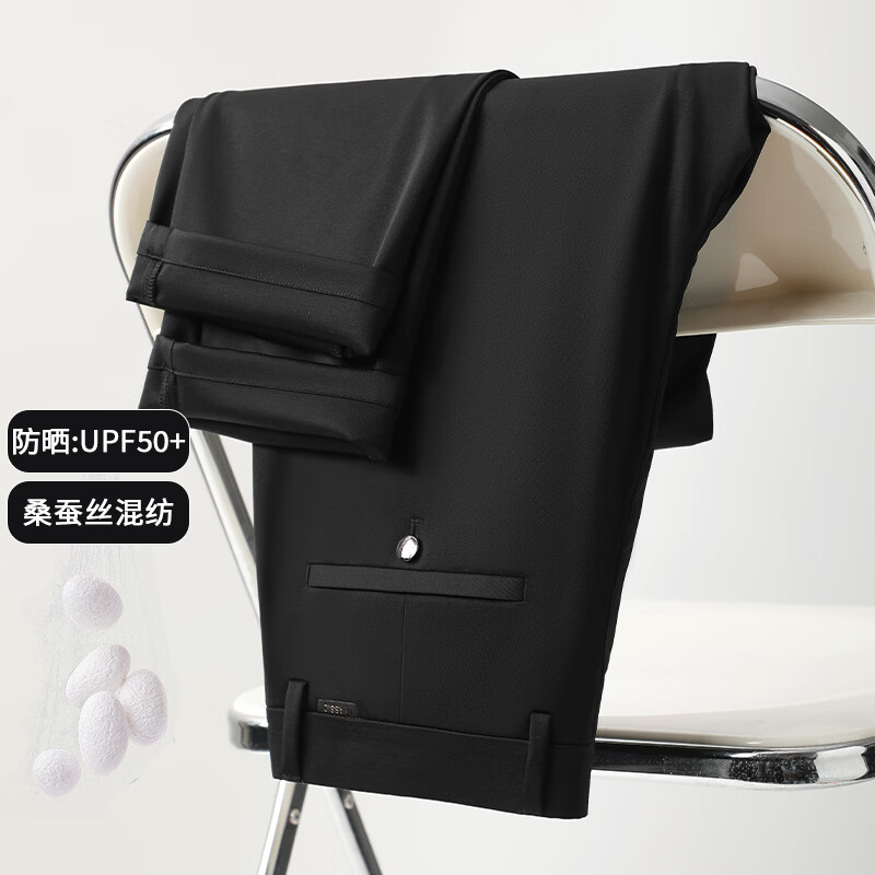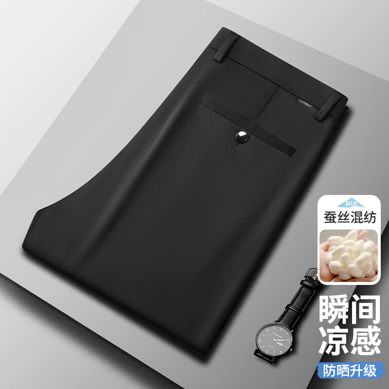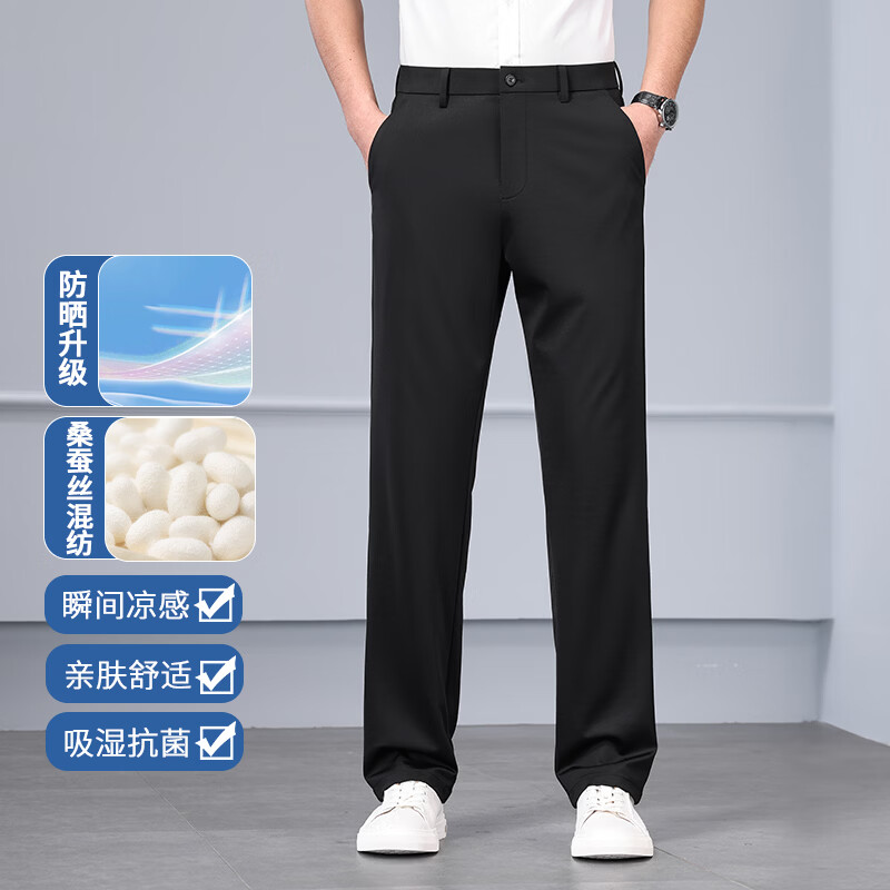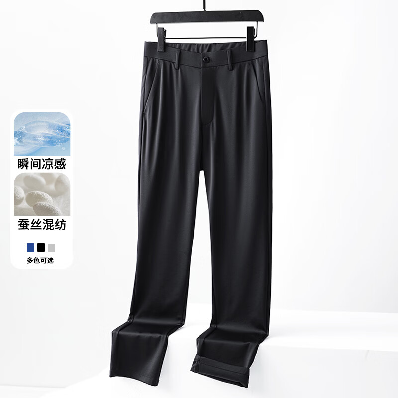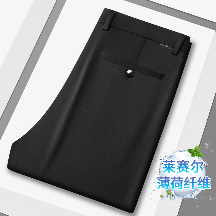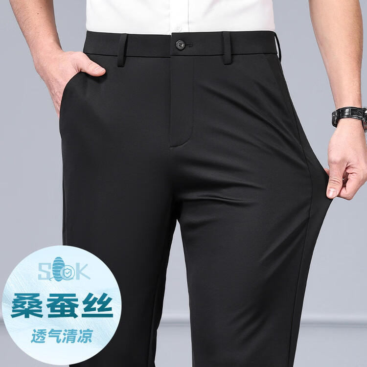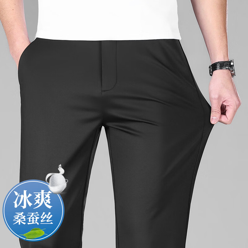 九牧王(JOEONE)2026年春夏新款男士高弹冰丝商务休闲西裤舒适透气百搭长裤 黑色 40