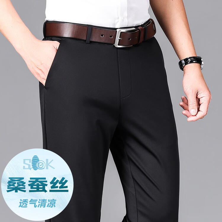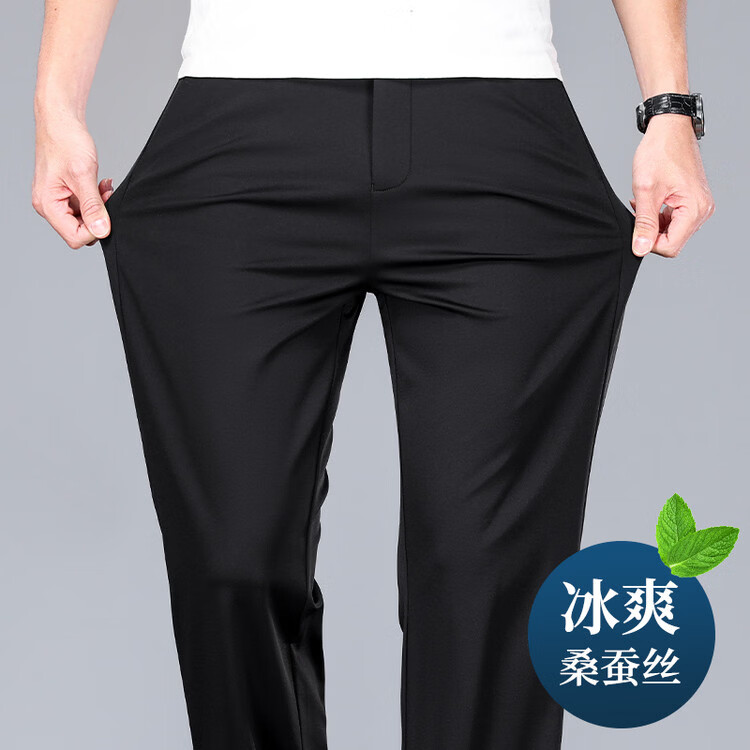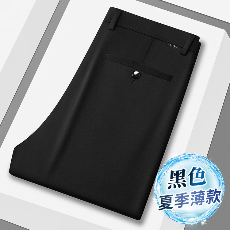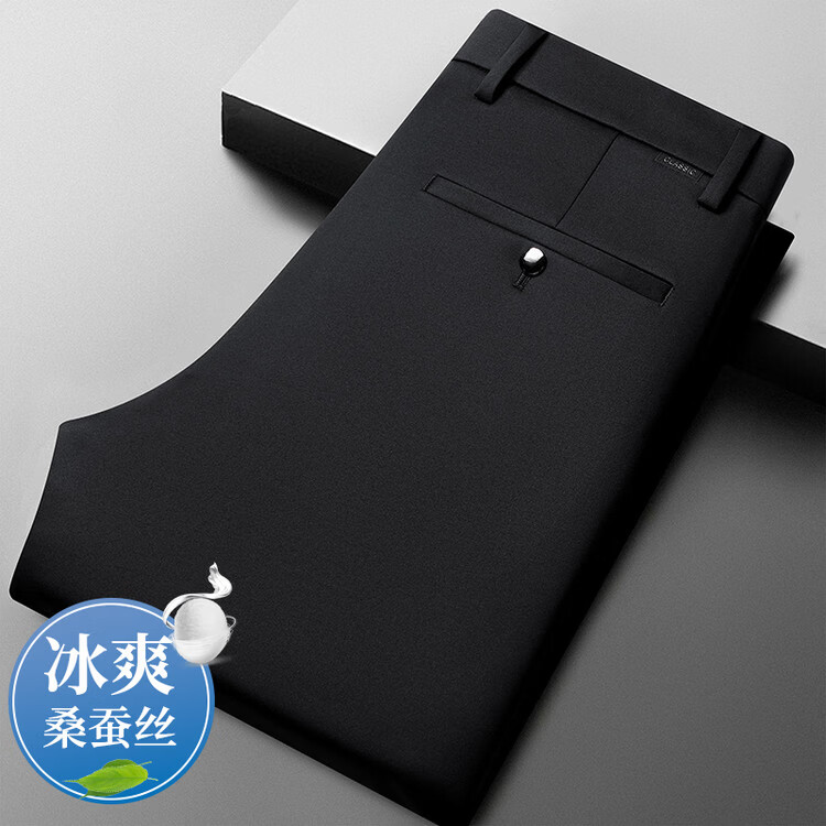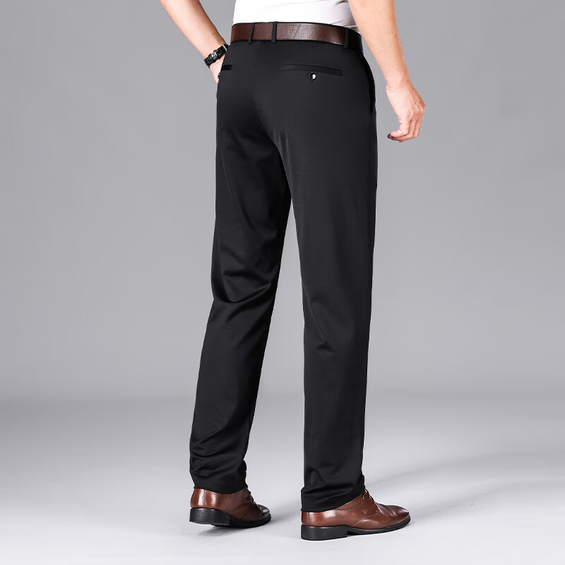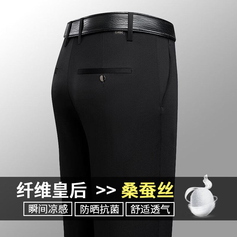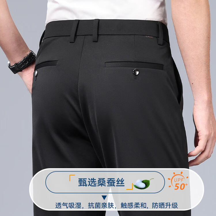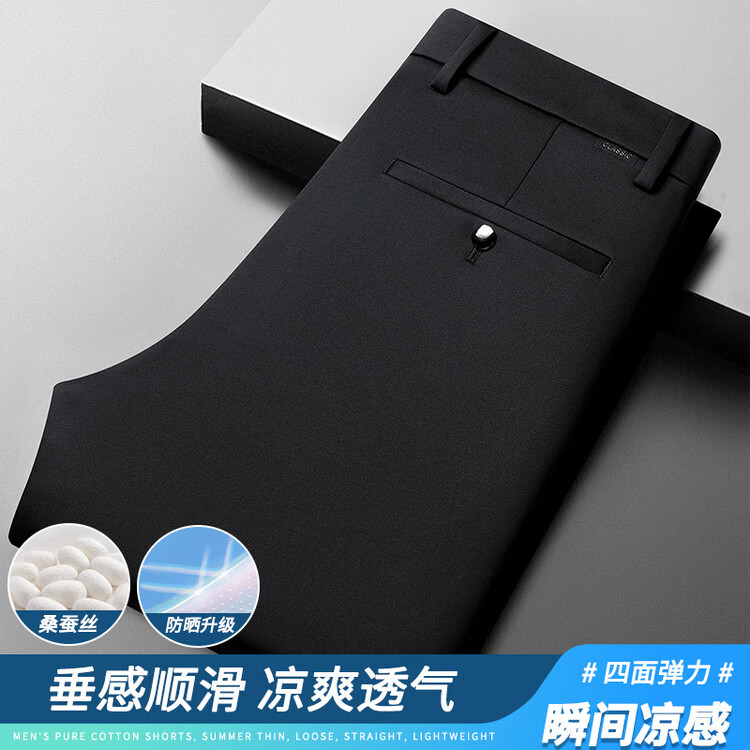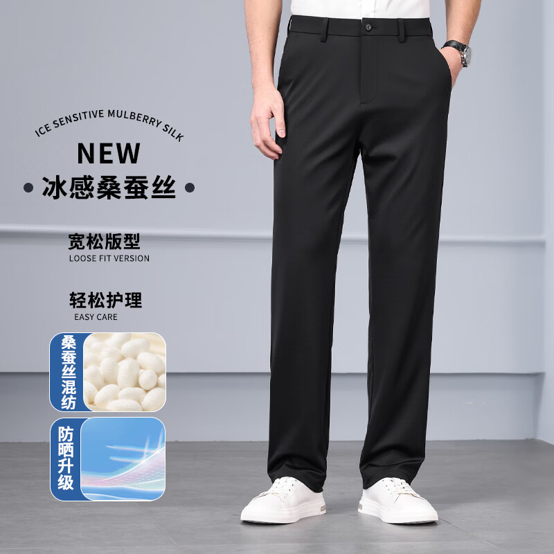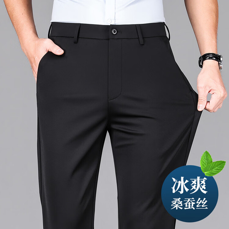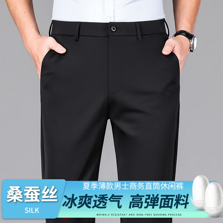 九牧王(JOEONE)2026年春夏新款男士高弹冰丝商务休闲西裤舒适透气百搭长裤 黑色 40